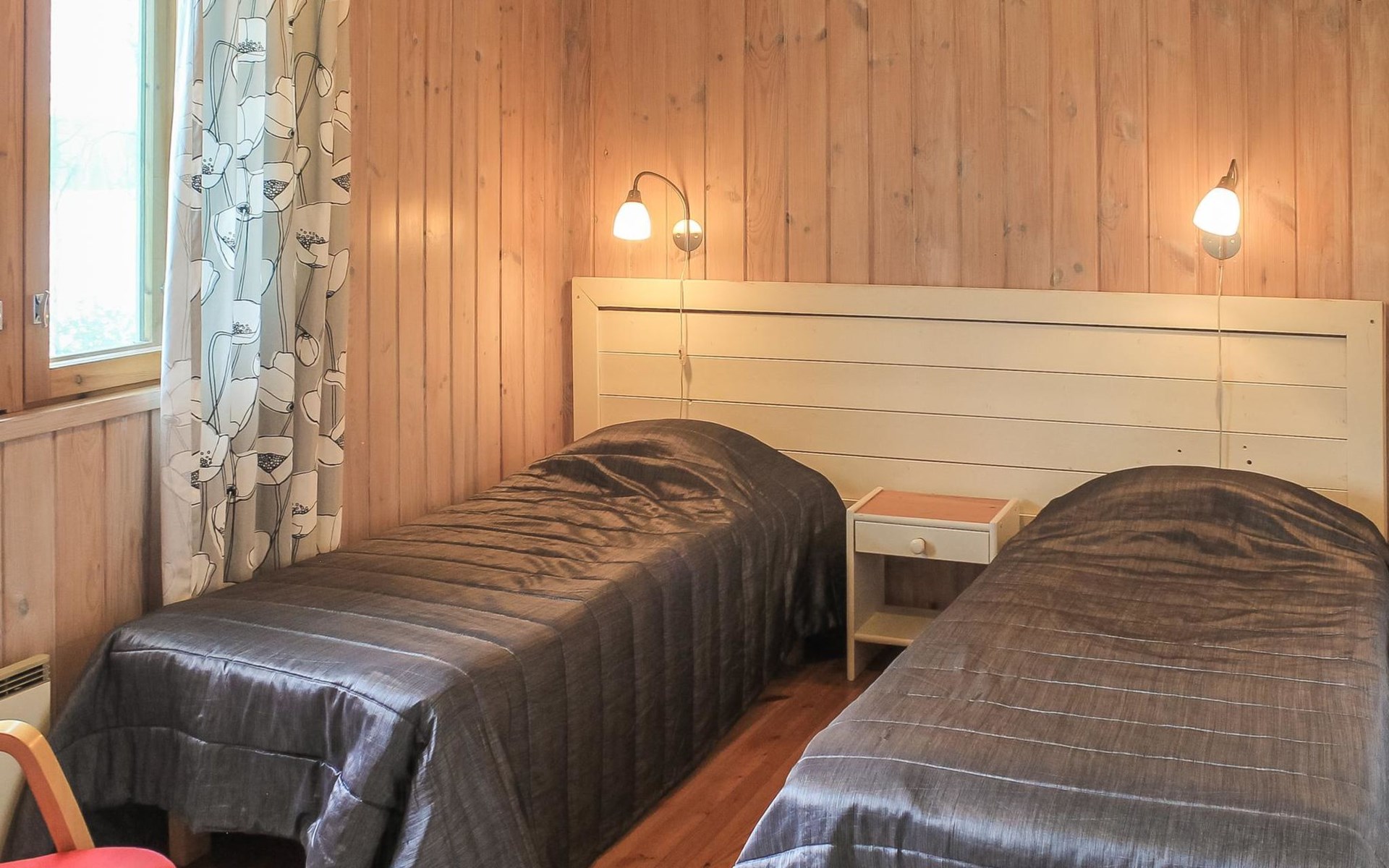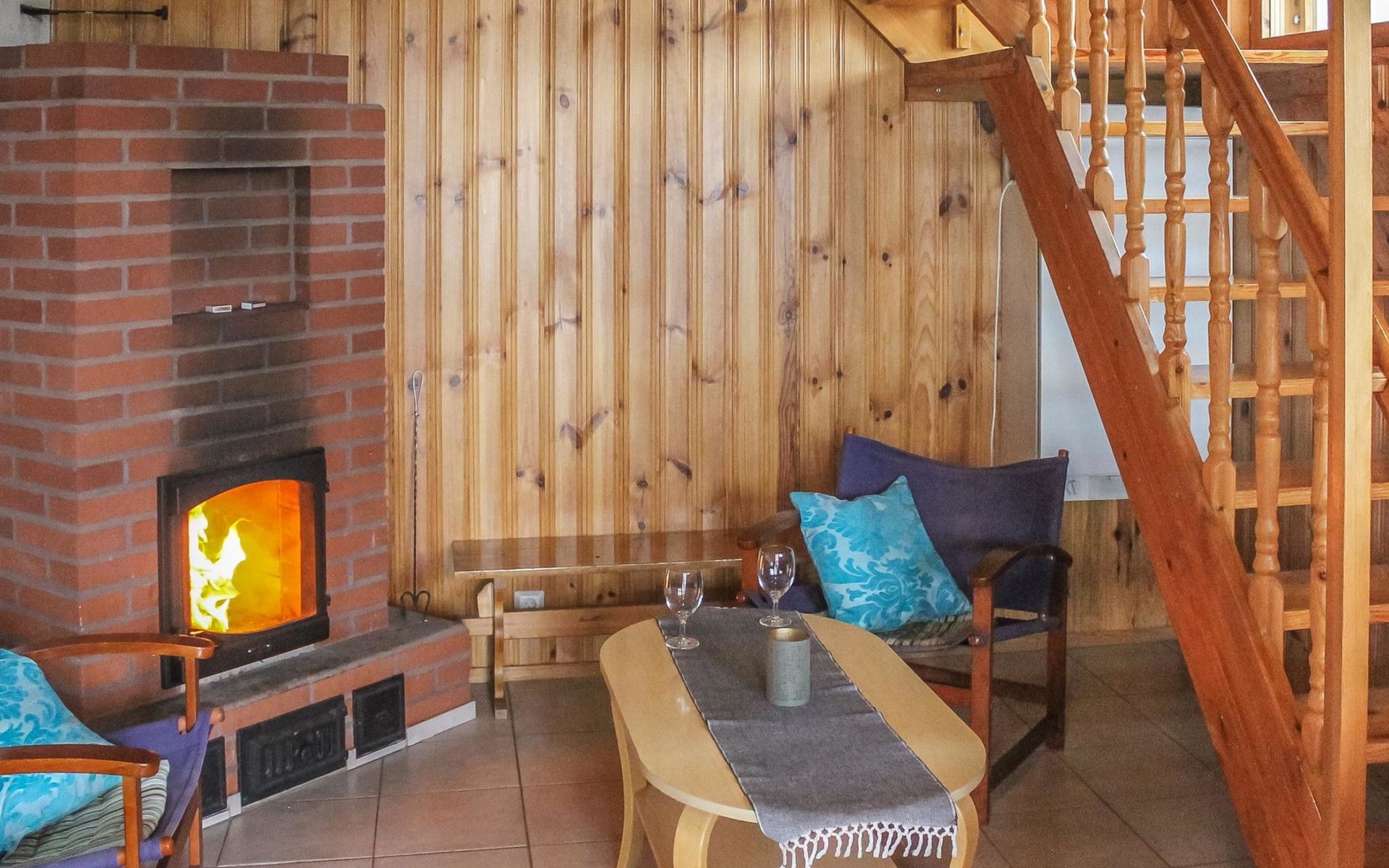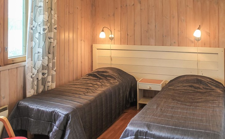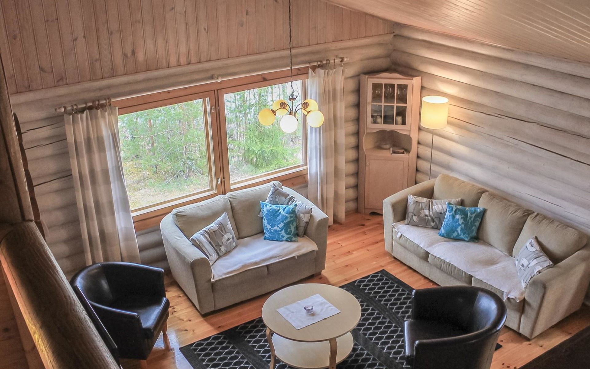 Log cabin 1995, (renovated 01/2010). Downstairs: hearth room, bedroom with 2 beds, washroom, sauna, veranda; upstairs: living room, bedroom with double bed, kitchen, sleeping loft (10 m², low room height) with 3 beds, veranda.