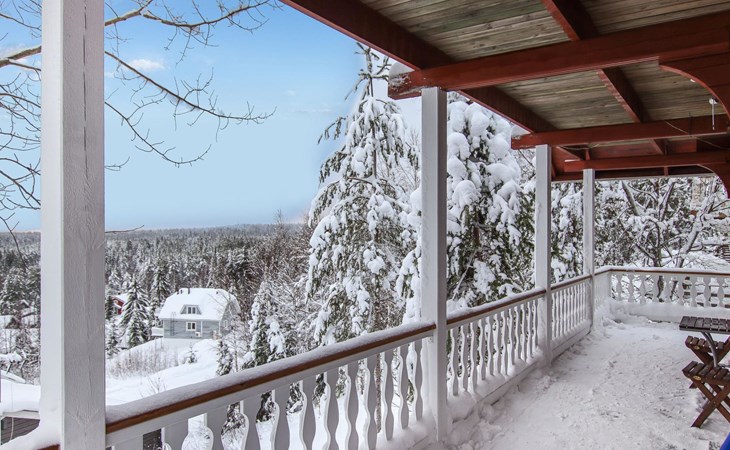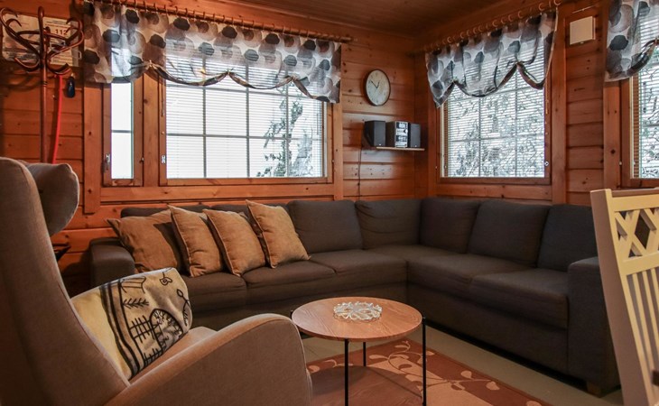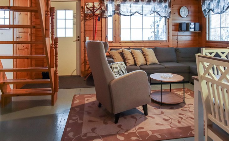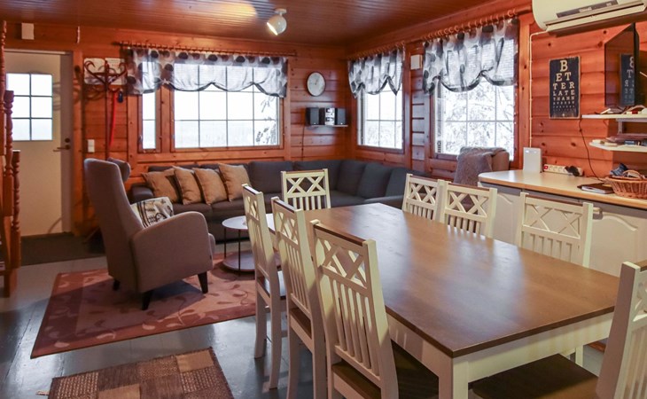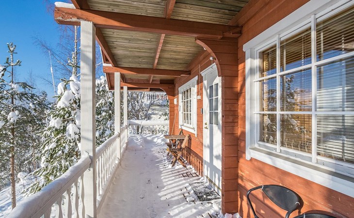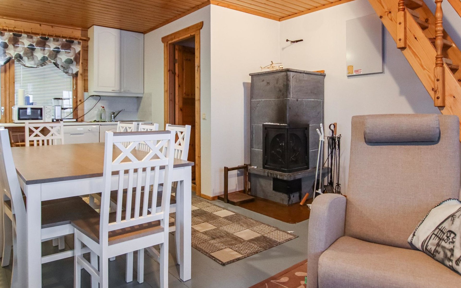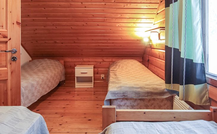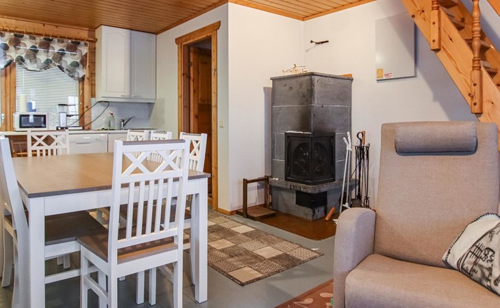 Kitchen, 3 bedrooms, sauna, shower room/toilet, separate toilet upstairs, balcony, terrace, fireplace, double bed in the bedroom downstairs, 4 beds upstairs bedroom number one and another bedroom doublebed.