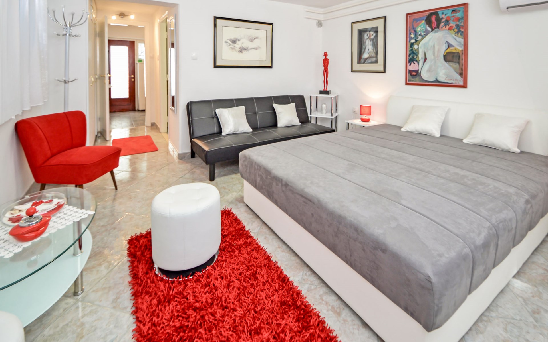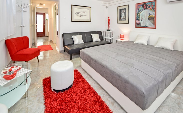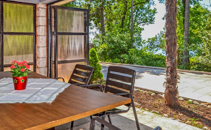 2-family house "Dado", surrounded by trees. In the district of Costabella 5.5 km from the centre of Opatija, 6 km from the centre of Rijeka, in a quiet position, 30 m from the sea, 30 m from the beach, in the countryside. For shared use: property 600 m2 (fenced). Terrace (17 m2), garden furniture. In the house: internet access. Parking at the house on the premises. Shop 1.2 km, supermarket 2.5 km, restaurant 1.8 km, café 30 m, bus stop 50 m, pebble beach 1.8 km, rocky beach 30 m, outdoor swimming pool 1.6 km, indoor swimming pool 1.6 km, public bathing area 1.8 km.