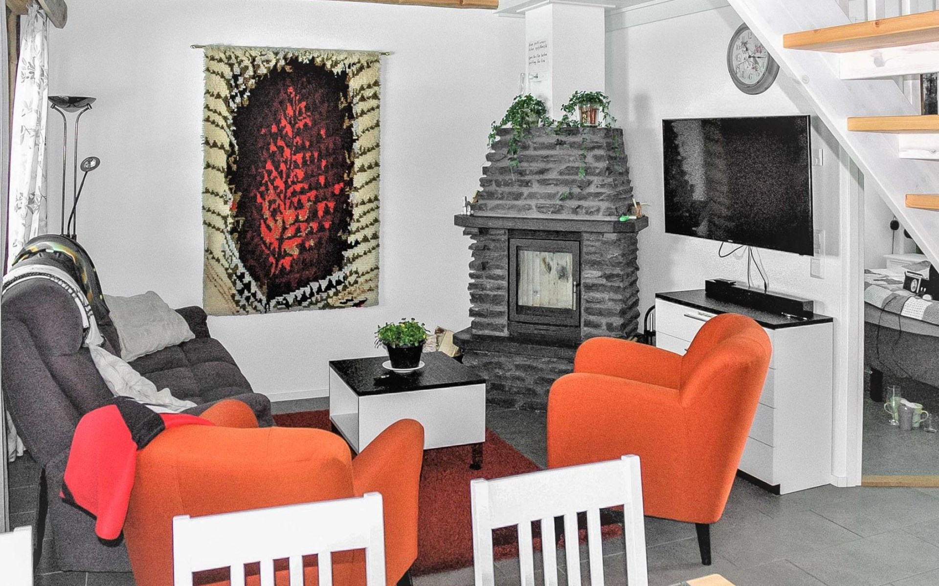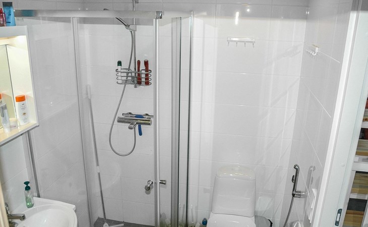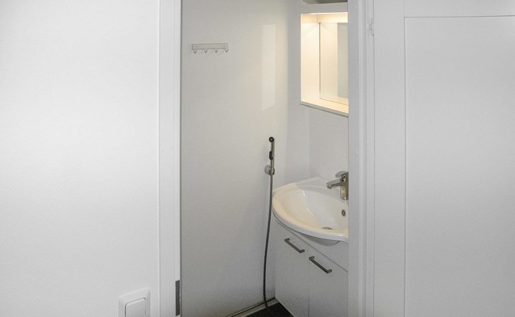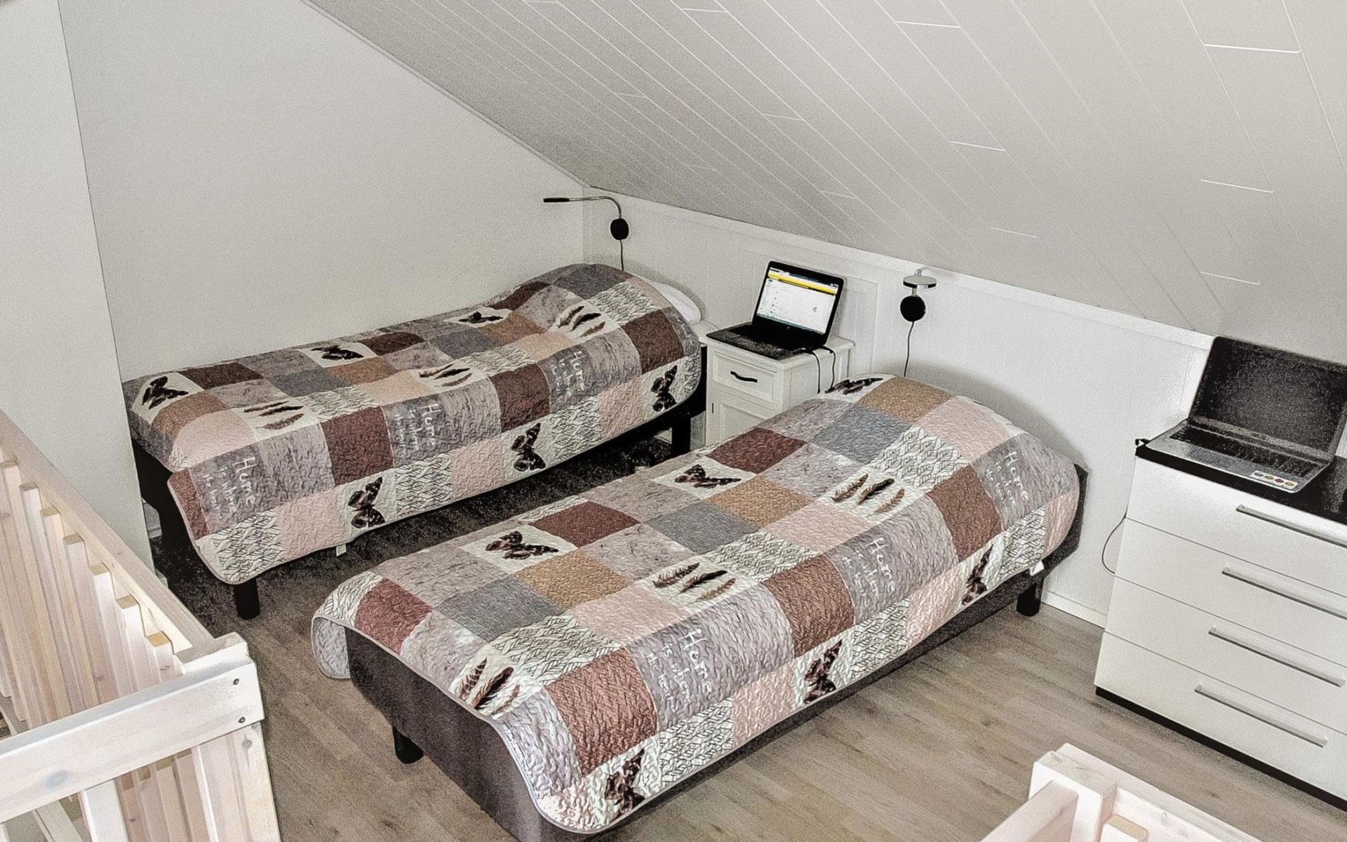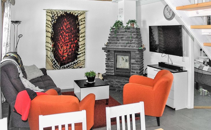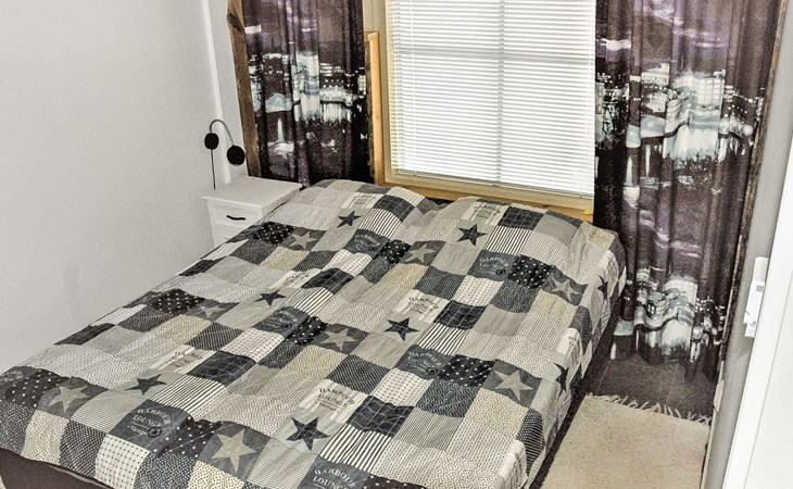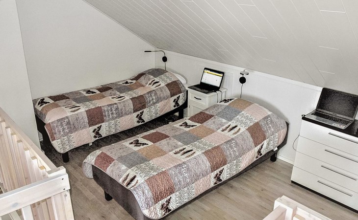 Living room/kitchen, one bedroom with two single beds, 3 single beds in the loft, sauna (electric sauna stove), washroom, 2 x WC (one in the loft and the another in the washroom). The housing company's shared ski maintenance and storage facilities are located in the basement. Entrance from the outside.