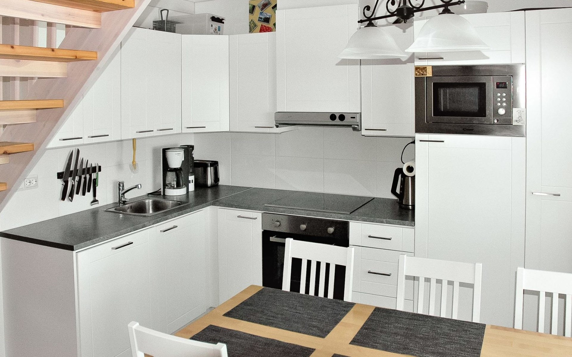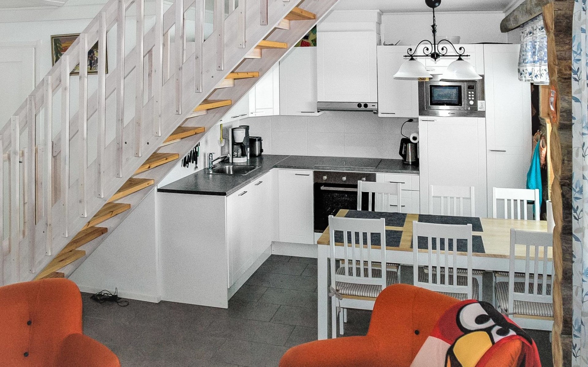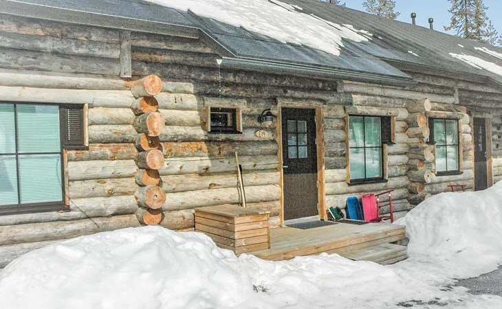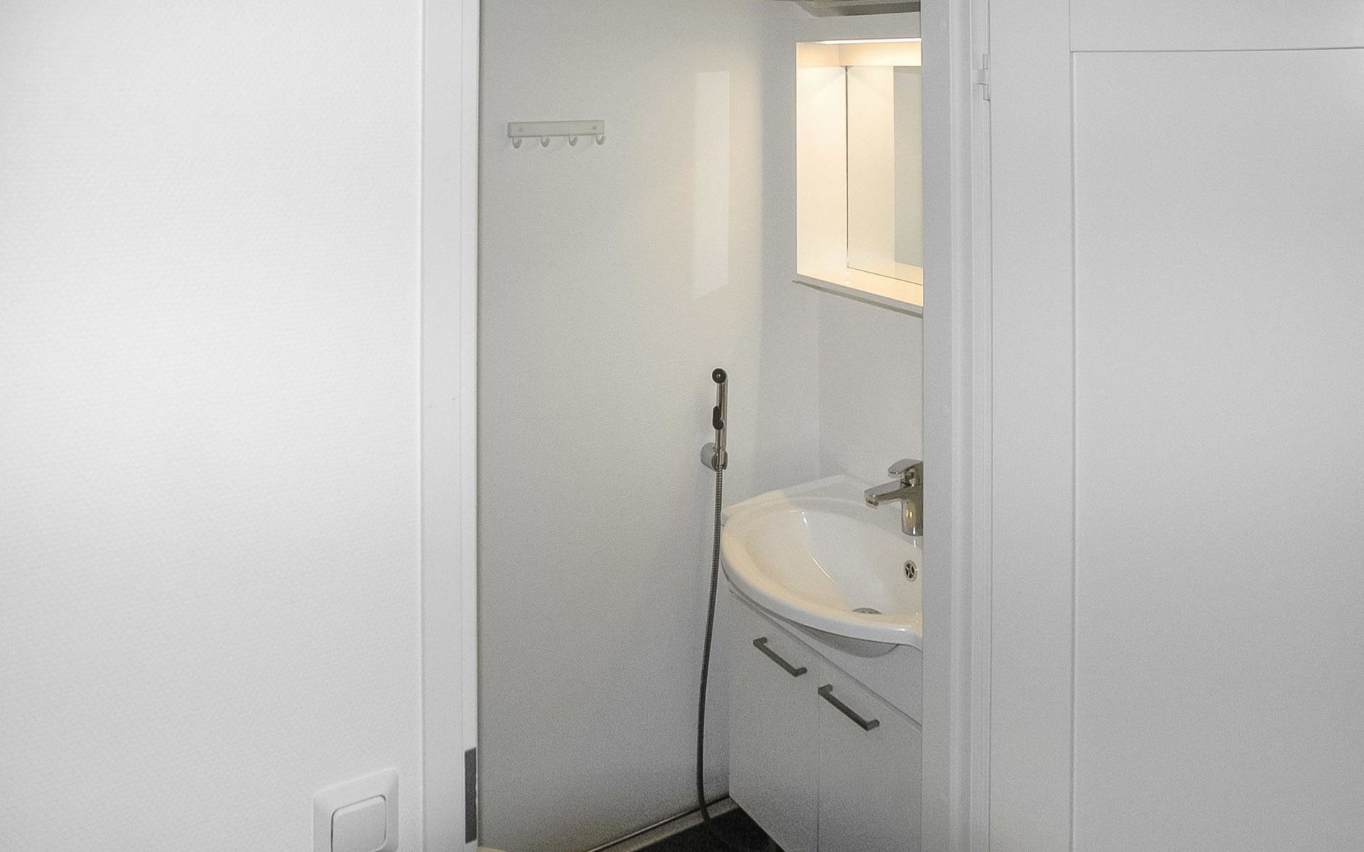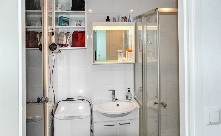 Living room/kitchen, one bedroom with two single beds, 3 single beds in the loft, sauna (electric sauna stove), washroom, 2 x WC (one in the loft and the another in the washroom). The housing company's shared ski maintenance and storage facilities are located in the basement. Entrance from the outside.