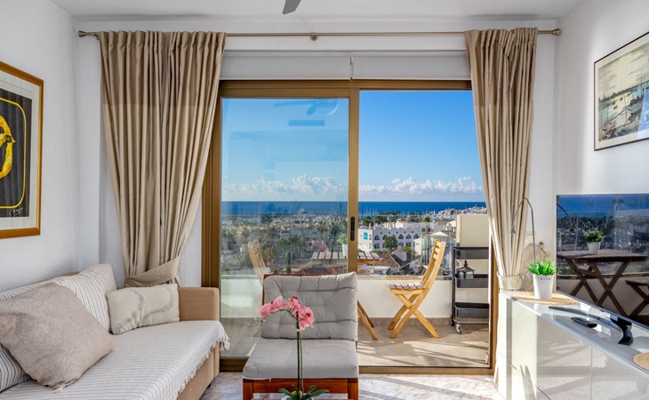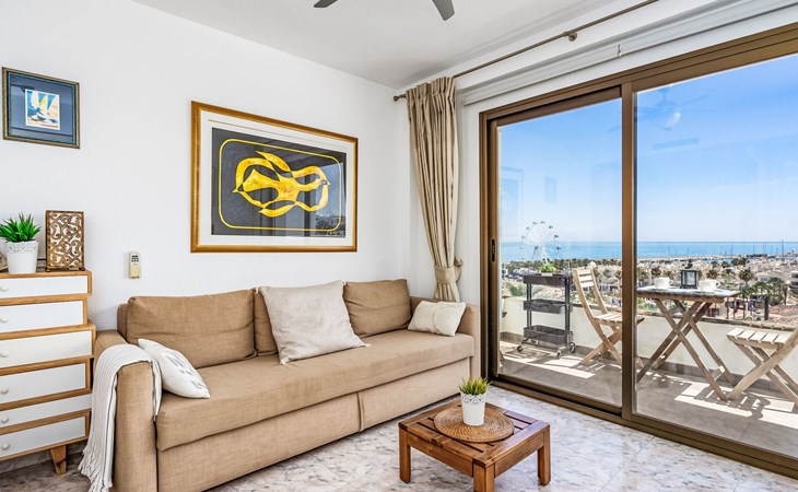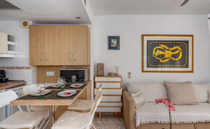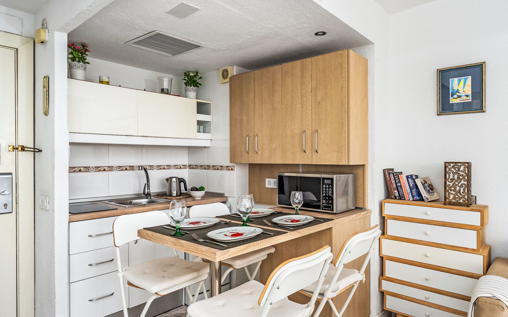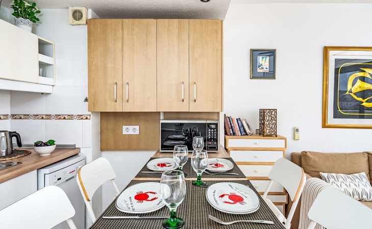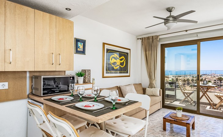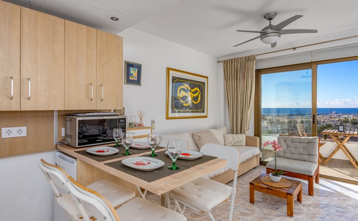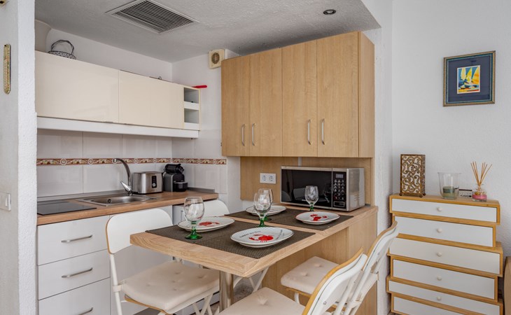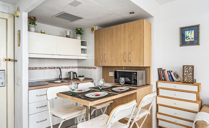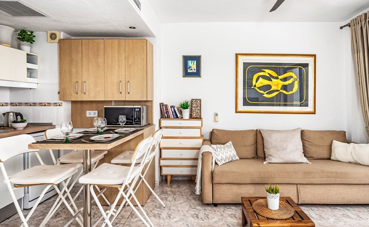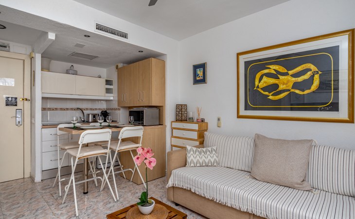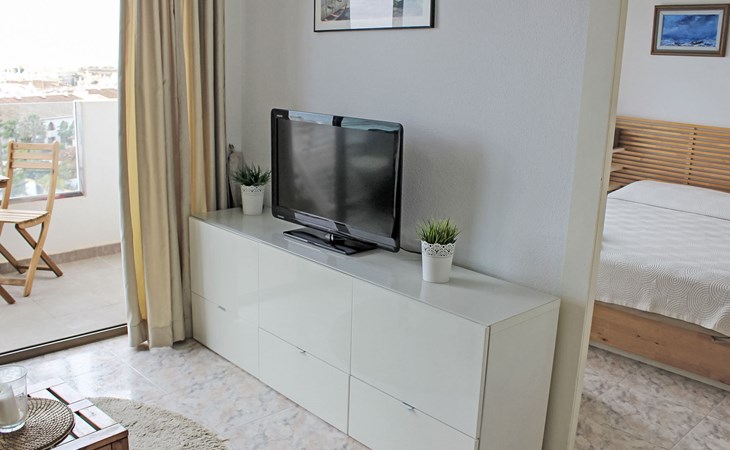 Modern, beautiful holiday development "O.House". In a central, busy, sunny position, 50 m from the sea, 50 m from the beach, direct access to the beach. For shared use: 3 swimming pools angular (seasonal availability: 01.Jan. - 31.Dec.). Children's pool. In the house: restaurant, bar, internet access, WiFi (extra). Shopping facilities, lift. Room cleaning on request (extra). Airport transfer (extra). Shop, supermarket 100 m, bus stop 250 m, ferry 300 m. Sports harbour, marina 300 m. Nearby attractions: Puerto Marina 300 m. Please note: suitable for families, suitable for seniors. Object suitable for 2 adults + 1 child. The owner does not accept any youth groups. Neighbourhood highly sensitive to noise. Quietness and good behaviour expected. Facilities closed from 1/11 until 01/02 (restaurant, bar, swimming pool...).