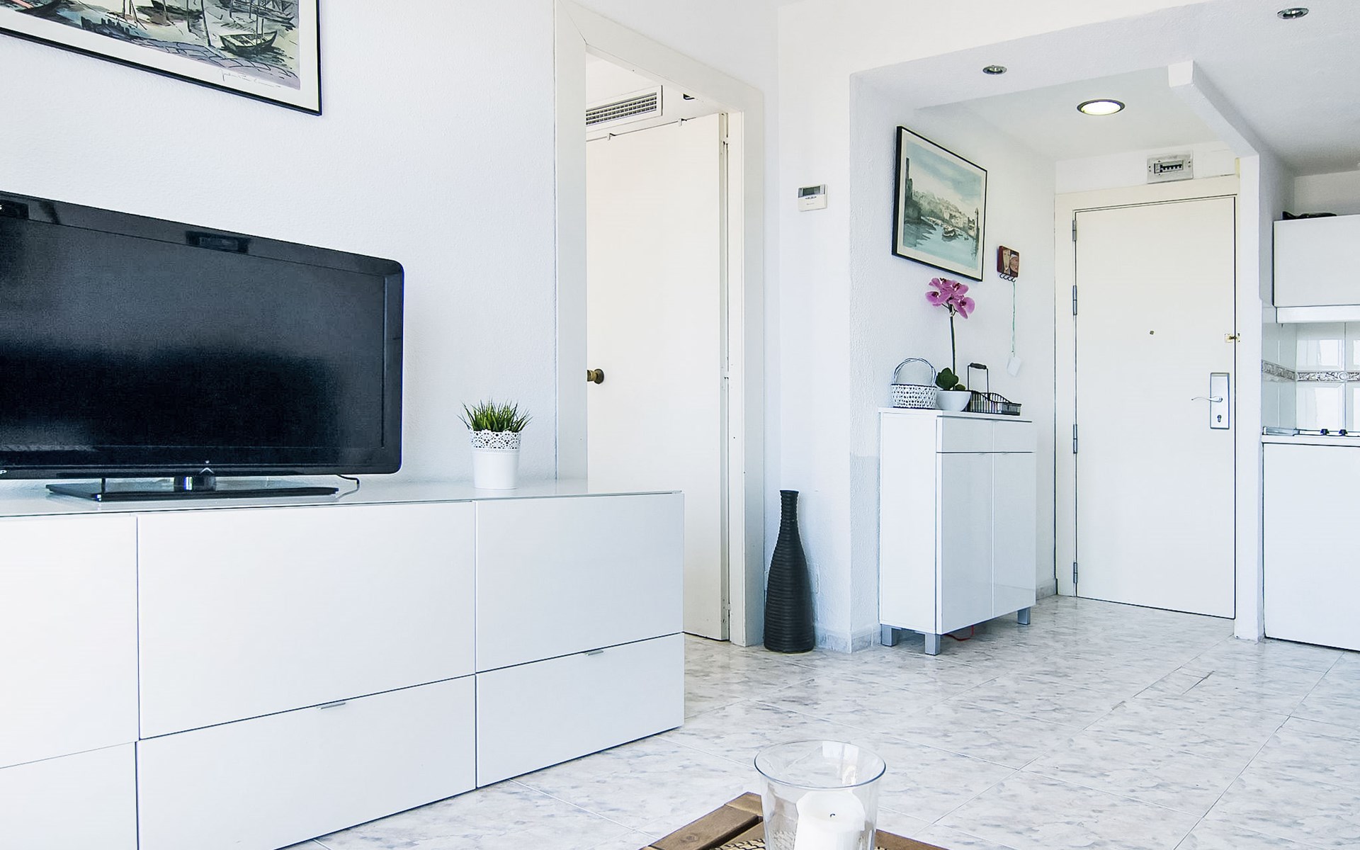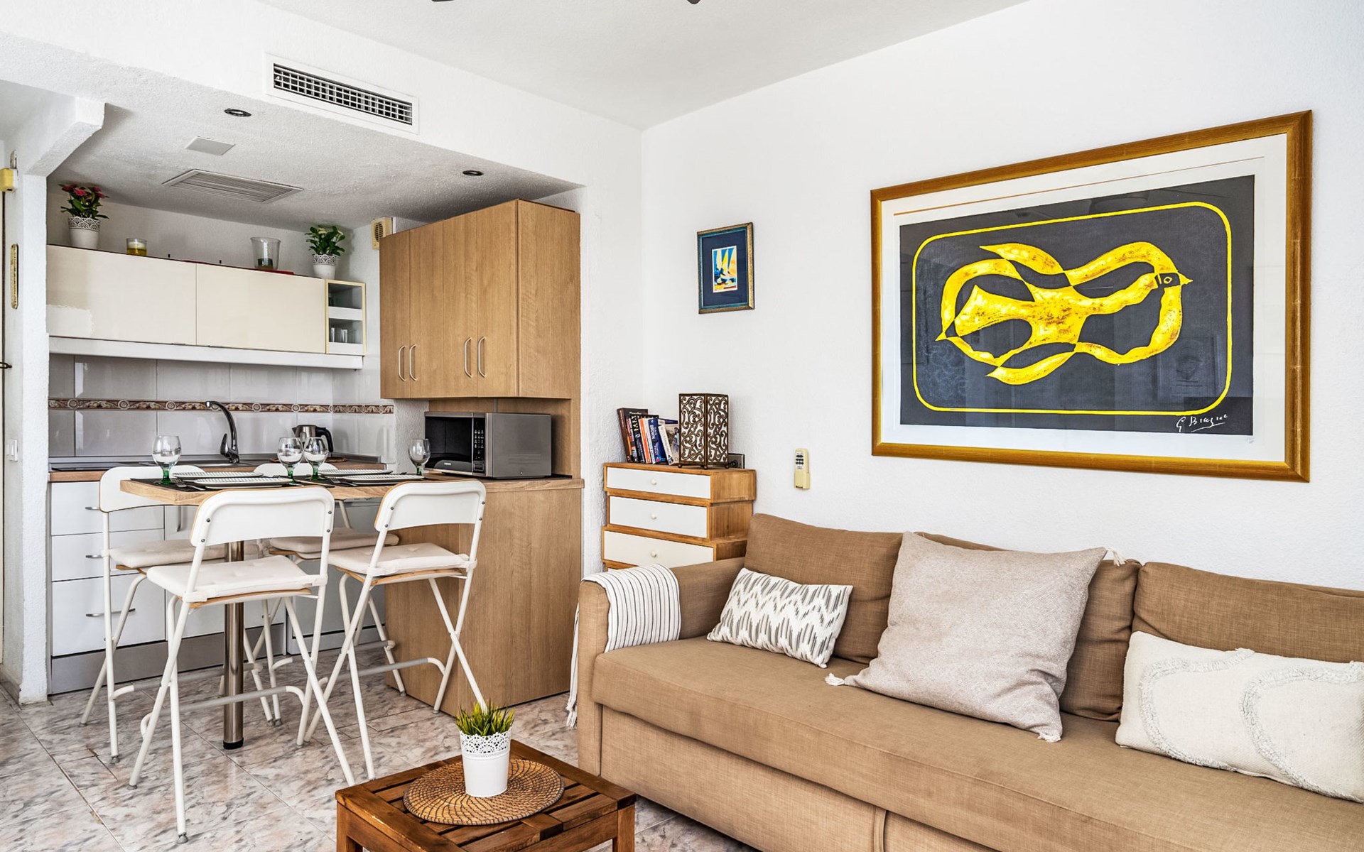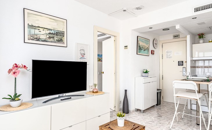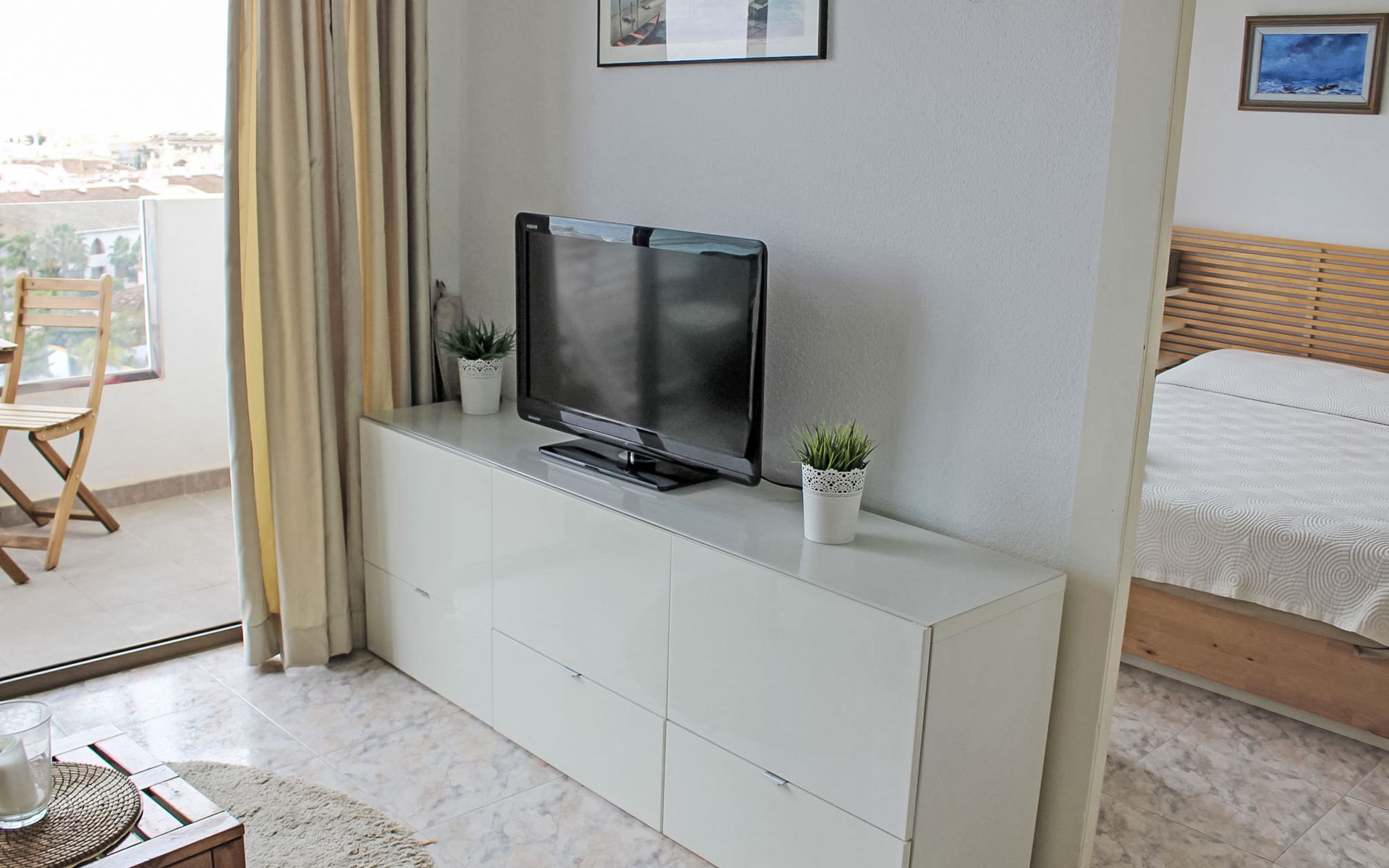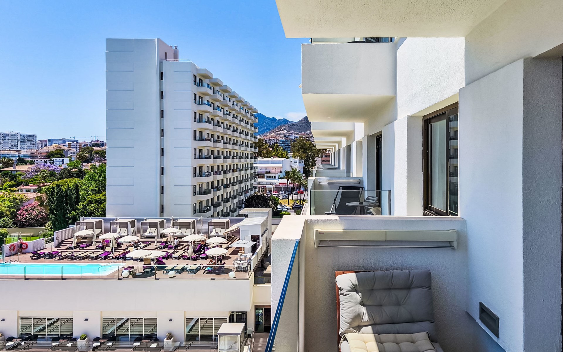 Modern, beautiful holiday development "O.House". In a central, busy, sunny position, 50 m from the sea, 50 m from the beach, direct access to the beach. For shared use: 3 swimming pools angular (seasonal availability: 01.Jan. - 31.Dec.). Children's pool. In the house: restaurant, bar, internet access, WiFi (extra). Shopping facilities, lift. Room cleaning on request (extra). Airport transfer (extra). Shop, supermarket 100 m, bus stop 250 m, ferry 300 m. Sports harbour, marina 300 m. Nearby attractions: Puerto Marina 300 m. Please note: suitable for families, suitable for seniors. Object suitable for 2 adults + 1 child. The owner does not accept any youth groups. Neighbourhood highly sensitive to noise. Quietness and good behaviour expected. Facilities closed from 1/11 until 01/02 (restaurant, bar, swimming pool...).
