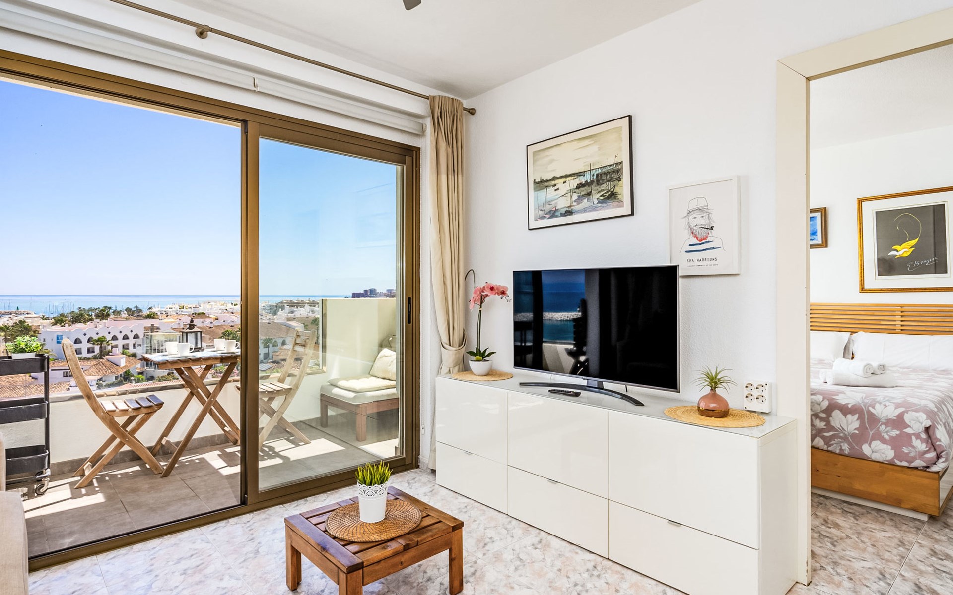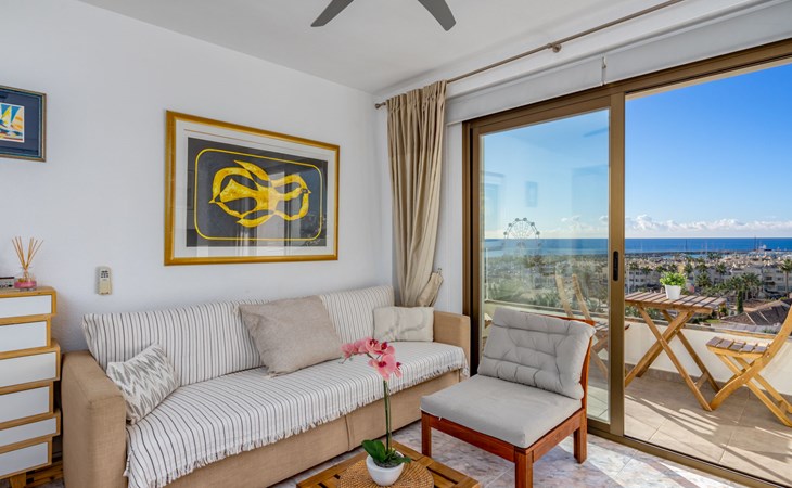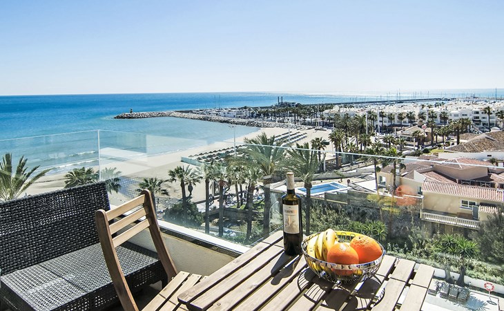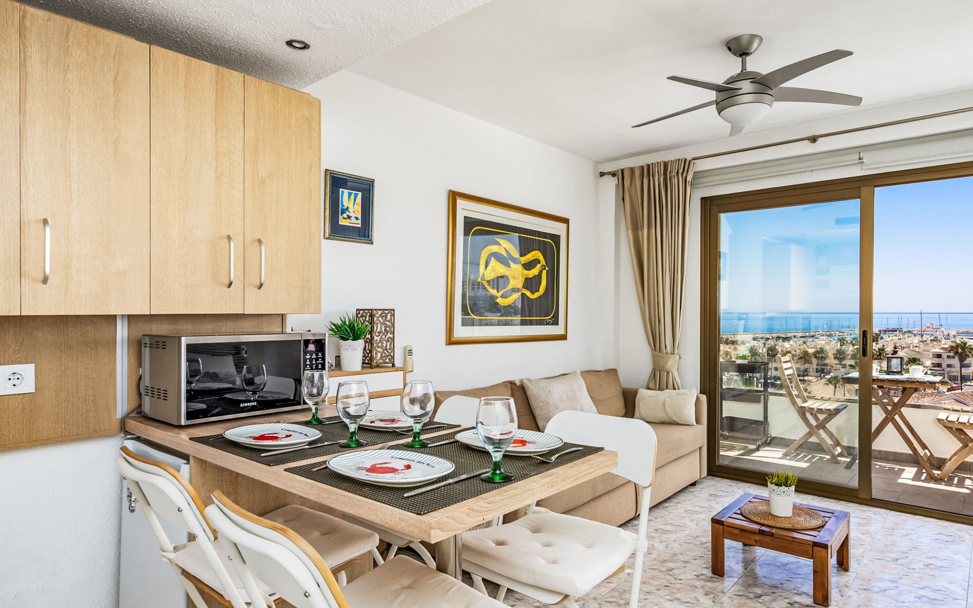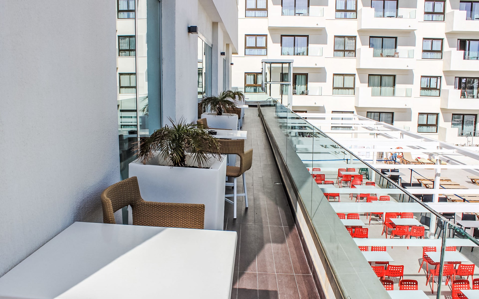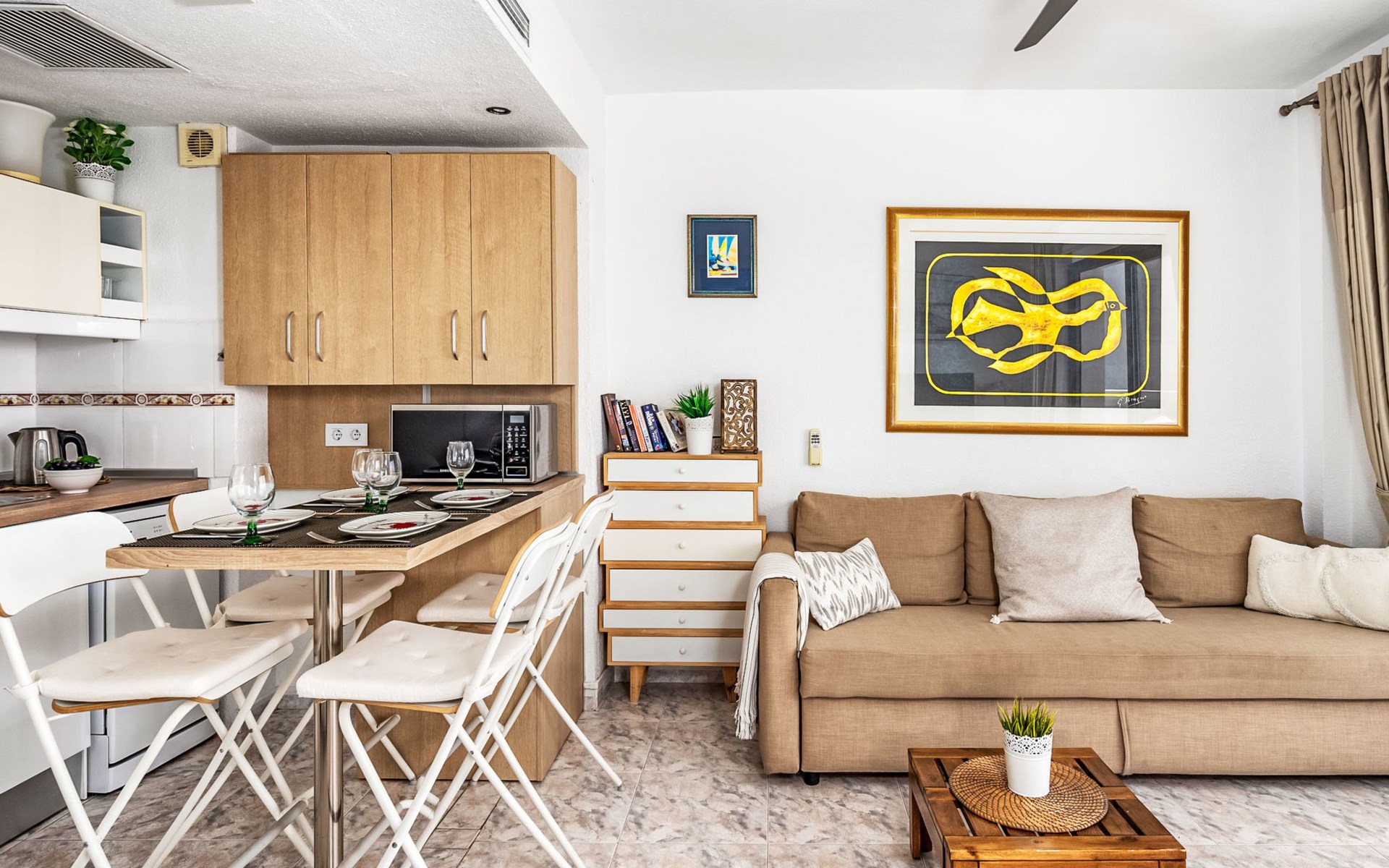 Modern, beautiful holiday development "O.House". In a central, busy, sunny position, 50 m from the sea, 50 m from the beach, direct access to the beach. For shared use: 3 swimming pools angular (seasonal availability: 01.Jan. - 31.Dec.). Children's pool. In the house: restaurant, bar, internet access, WiFi (extra). Shopping facilities, lift. Room cleaning on request (extra). Airport transfer (extra). Shop, supermarket 100 m, bus stop 250 m, ferry 300 m. Sports harbour, marina 300 m. Nearby attractions: Puerto Marina 300 m. Please note: suitable for families, suitable for seniors. Object suitable for 2 adults + 1 child. The owner does not accept any youth groups. Neighbourhood highly sensitive to noise. Quietness and good behaviour expected. Facilities closed from 1/11 until 01/02 (restaurant, bar, swimming pool...).