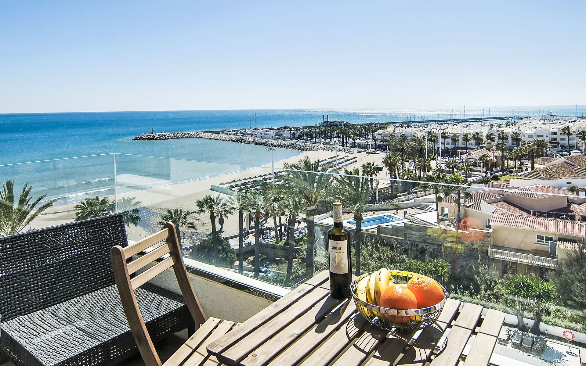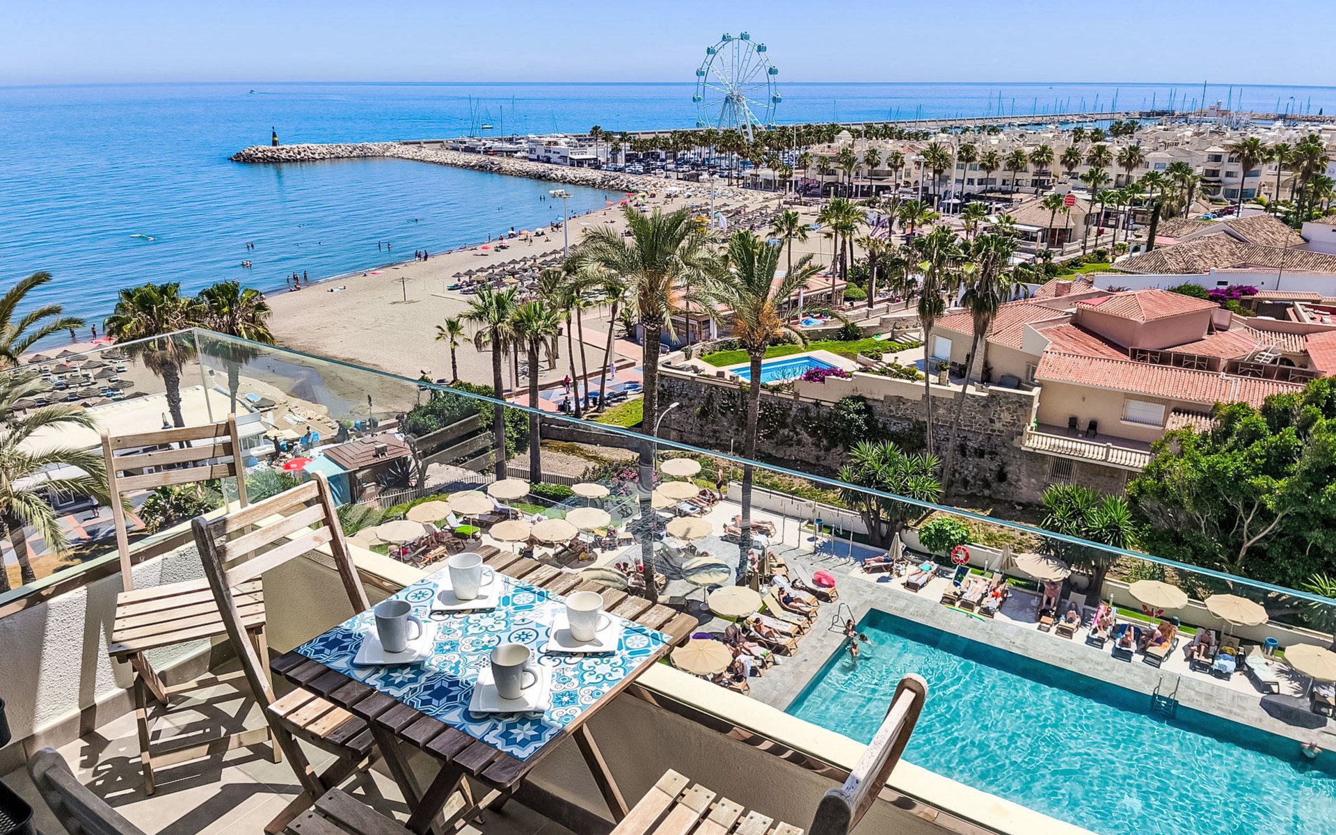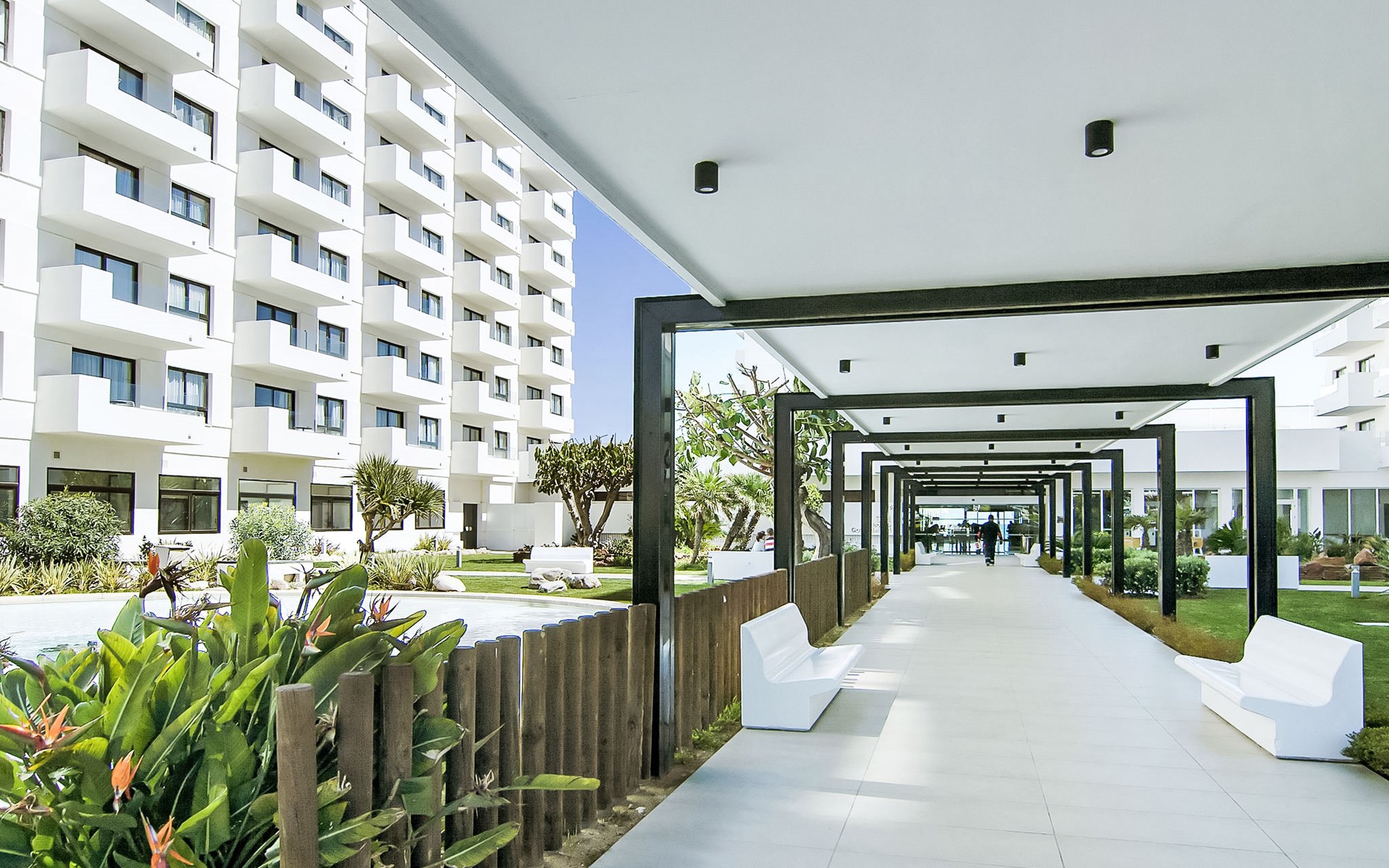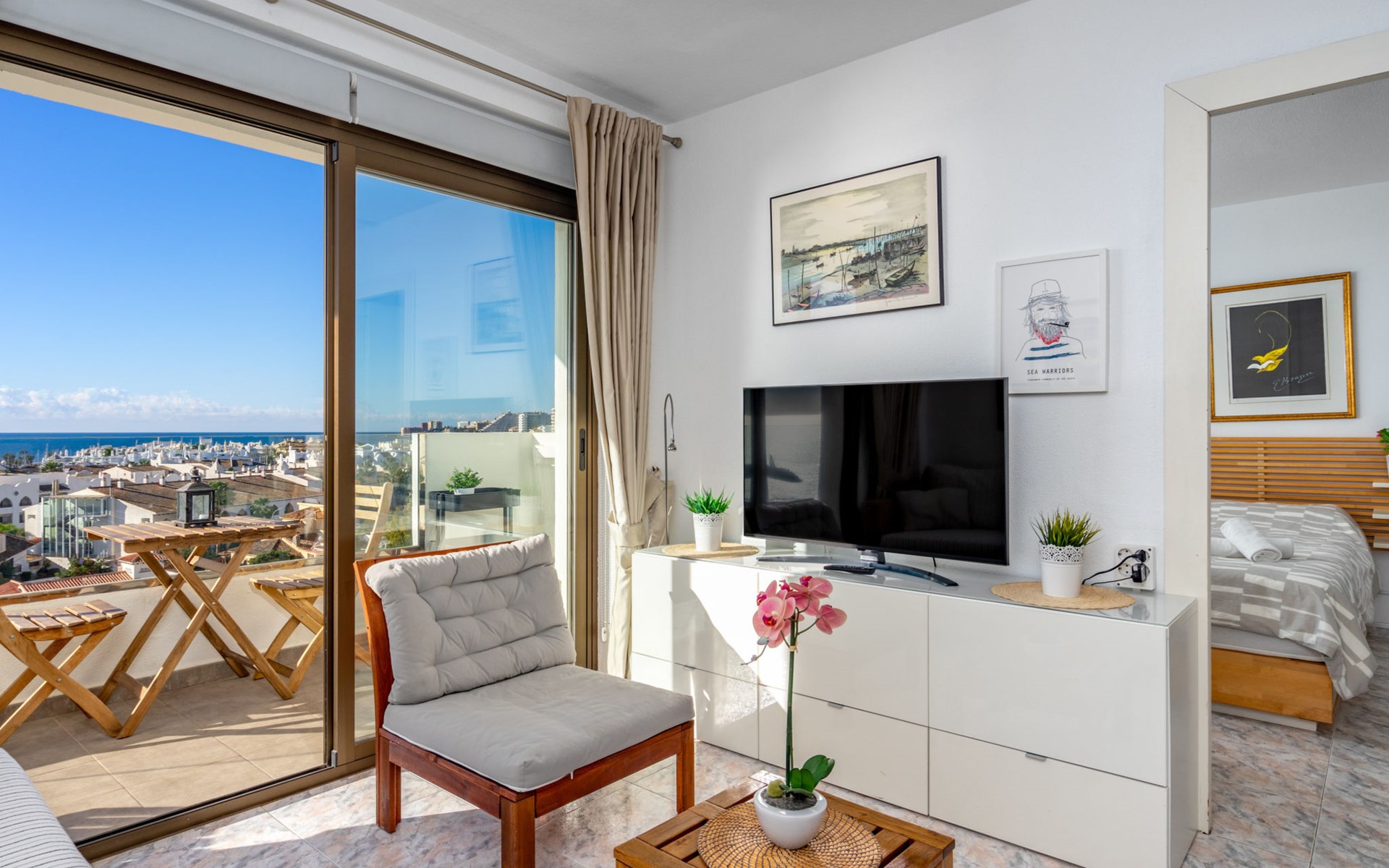 Modern, beautiful holiday development "O.House". In a central, busy, sunny position, 50 m from the sea, 50 m from the beach, direct access to the beach. For shared use: 3 swimming pools angular (seasonal availability: 01.Jan. - 31.Dec.). Children's pool. In the house: restaurant, bar, internet access, WiFi (extra). Shopping facilities, lift. Room cleaning on request (extra). Airport transfer (extra). Shop, supermarket 100 m, bus stop 250 m, ferry 300 m. Sports harbour, marina 300 m. Nearby attractions: Puerto Marina 300 m. Please note: suitable for families, suitable for seniors. Object suitable for 2 adults + 1 child. The owner does not accept any youth groups. Neighbourhood highly sensitive to noise. Quietness and good behaviour expected. Facilities closed from 1/11 until 01/02 (restaurant, bar, swimming pool...).