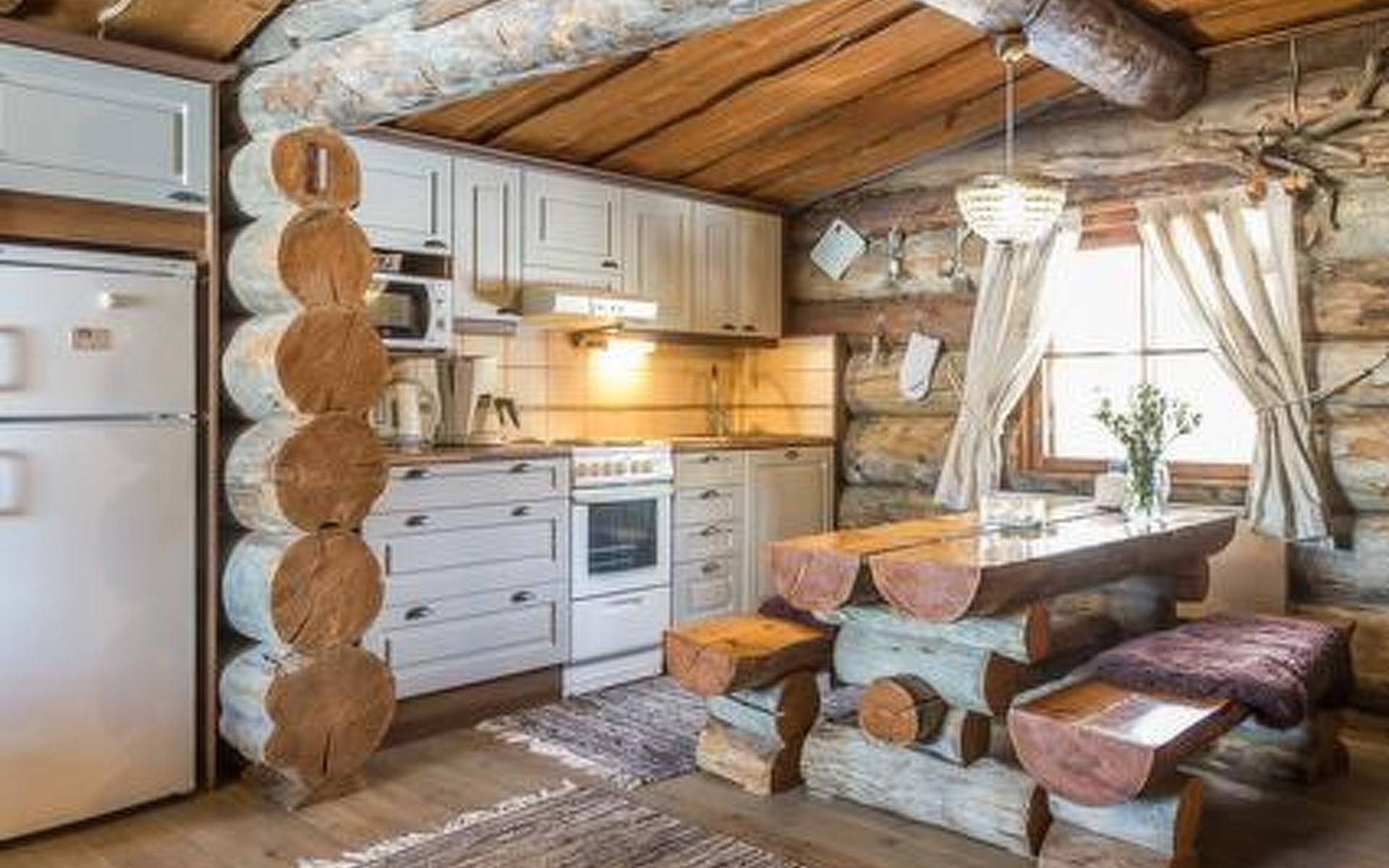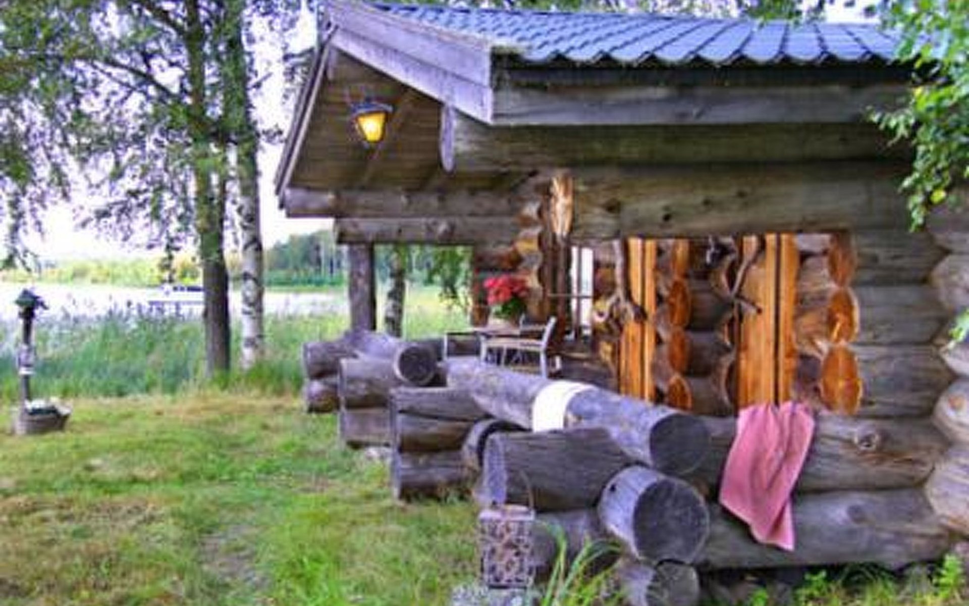 Log cabin 1983, renovated 2012, living room/kitchen, bedroom doublebed, sauna, open veranda.