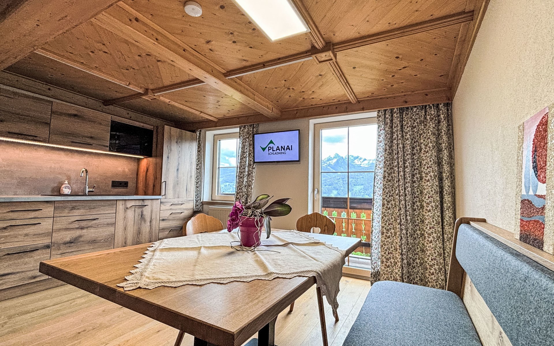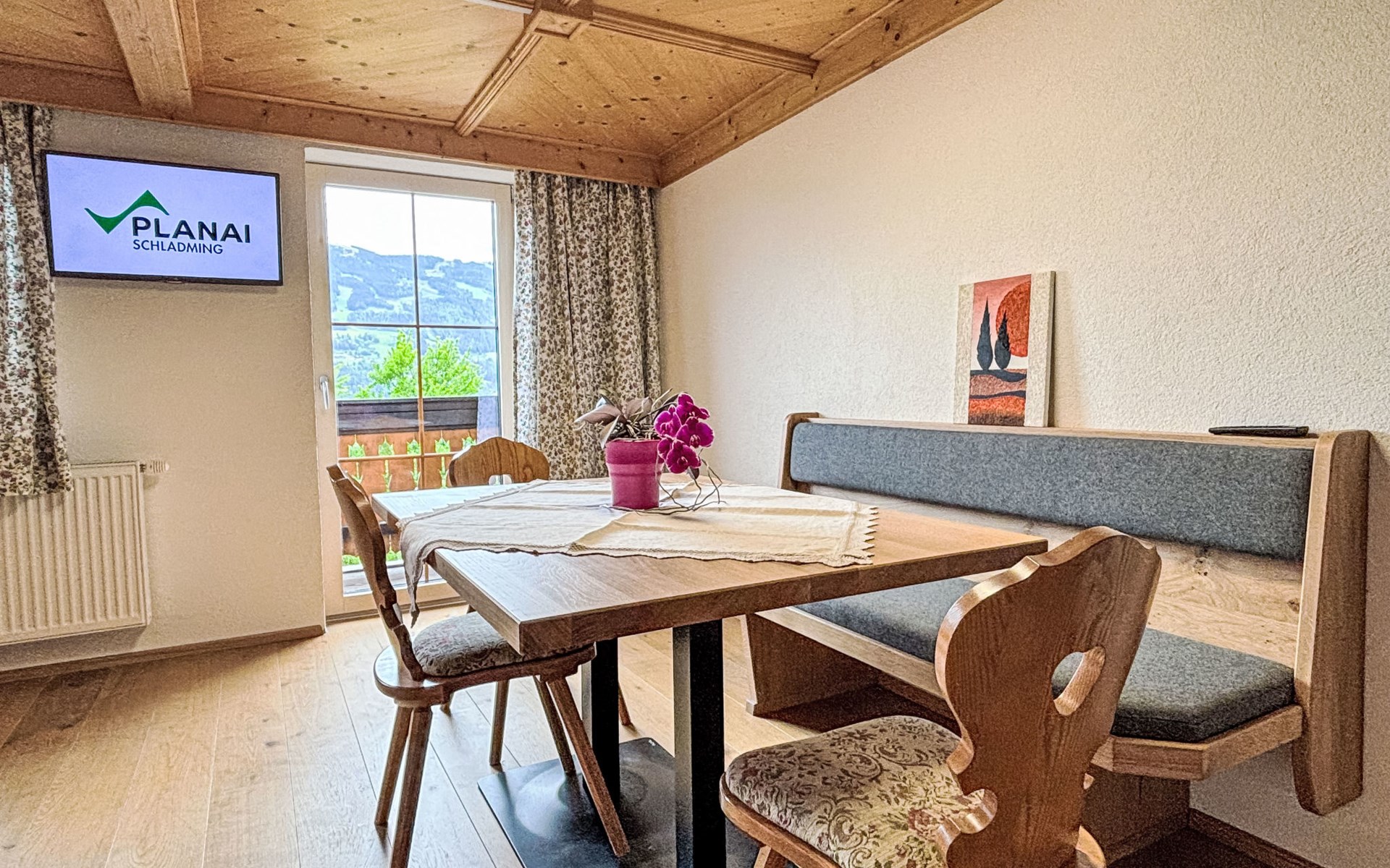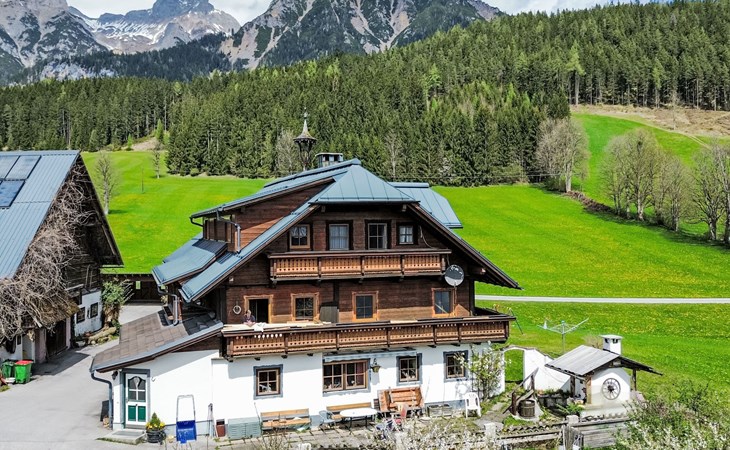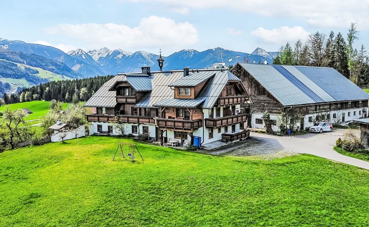 Large, rustic farmhouse "Salzmannhof", 1'020 m a.s.l., 3 storeys. In the district of Leiten 3 km from the centre of Ramsau, 4 km from the centre of Schladming, in the residential district, 9.5 km from the lake, 5 km from the skiing area. In the house: storage room for skis, ski boot dryer. Roofed, parking on the premises. Shop 2 km, restaurant 1 km, bus stop "Ramsau Leiten Sonnenhügel" 1 km, railway station "Schladming" 4.5 km, outdoor swimming pool 4 km, indoor swimming pool 4 km, bathing lake "Pichl" 9.5 km. Ski lift 5 km, ski bus stop 300 m, cross country ski track 50 m. Well-known ski regions can easily be reached: Planai 6 km. Please note: the owner lives in the same residence.