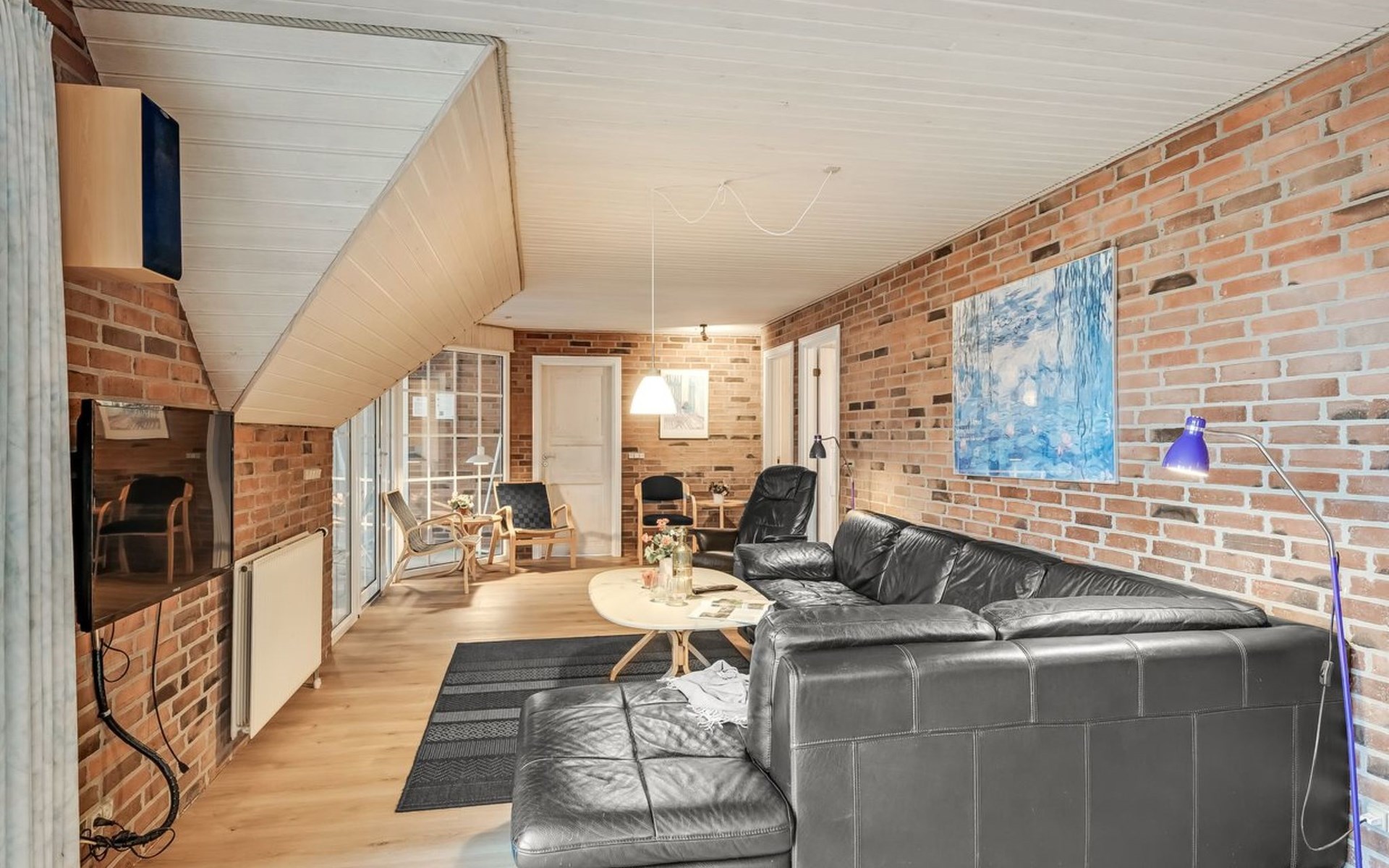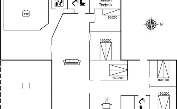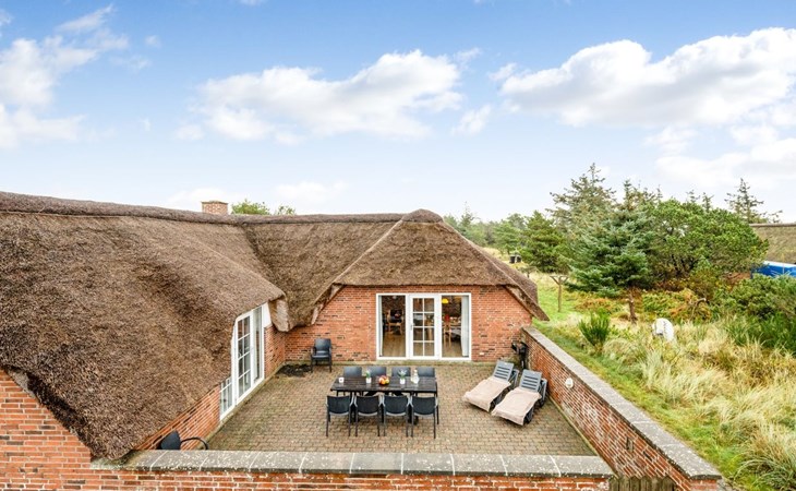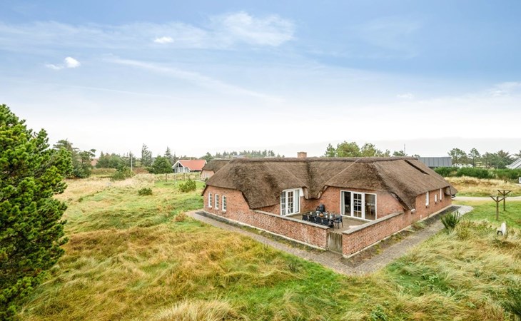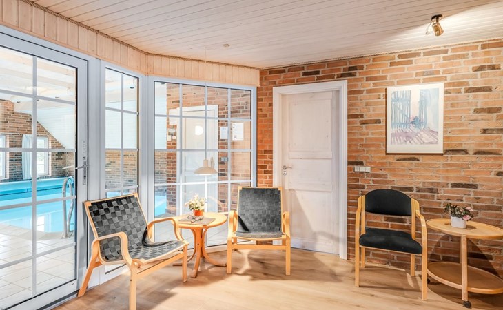 Single-family house, built in 1992. 700 m from the sea. Private: natural state property 2'001 m2, indoor pool (3 x 5 m, 1'8.5 m2, depth 140 - 140 cm). Children's playground (swing). In the house: sauna, washing machine, tumble dryer. Parking at the house. Grocery 6 km. Golf course 7 km. The owner does not accept any youth groups.