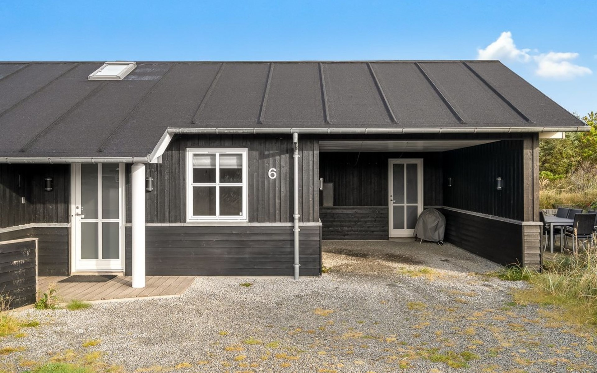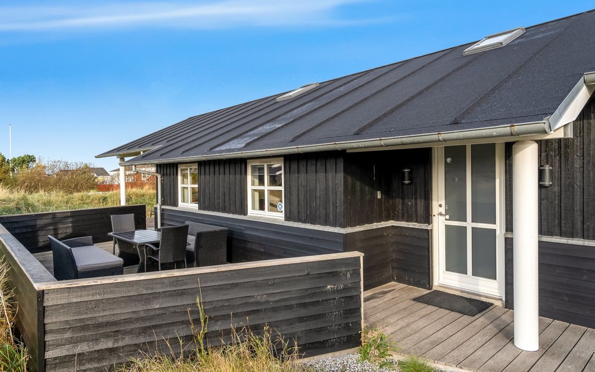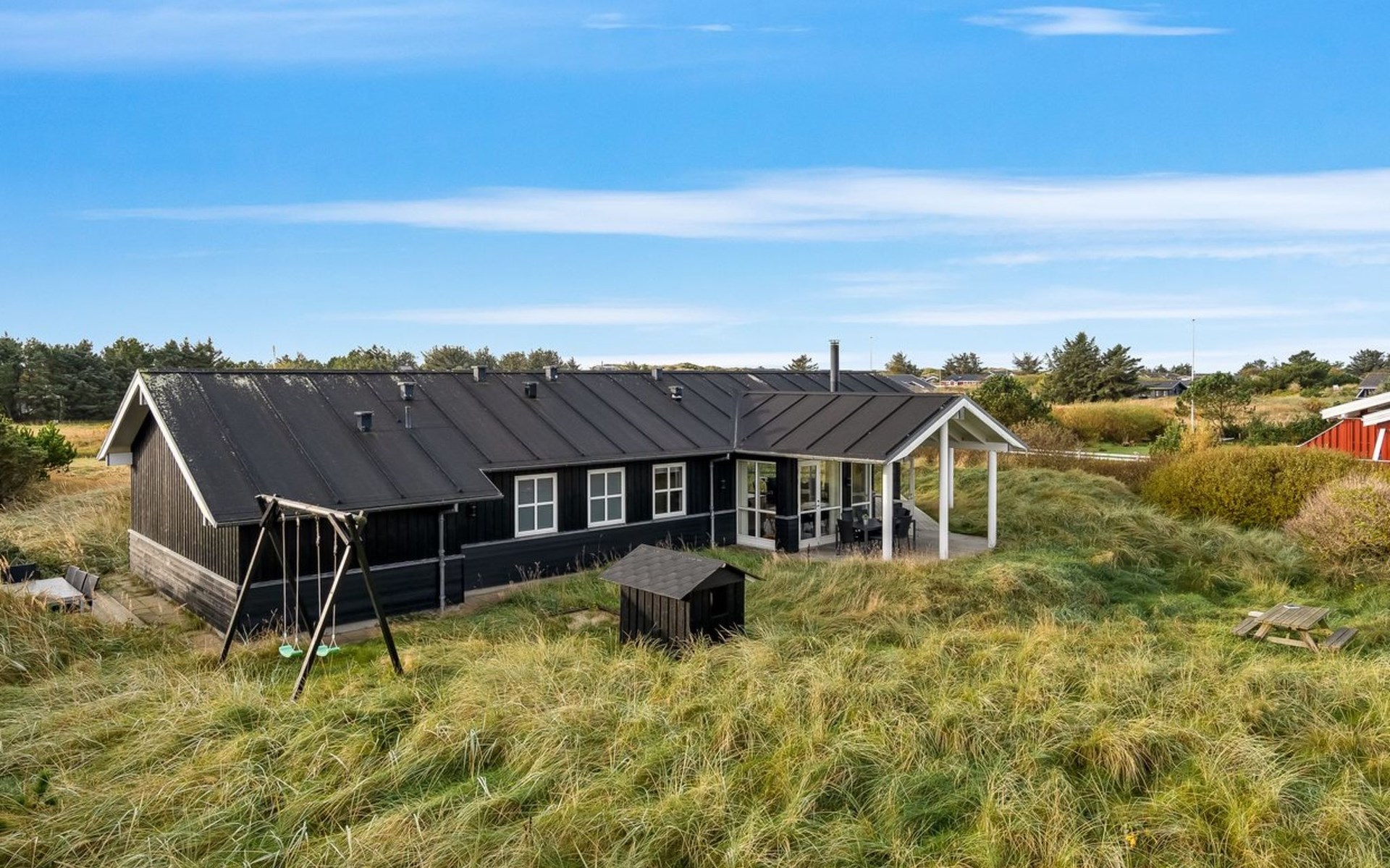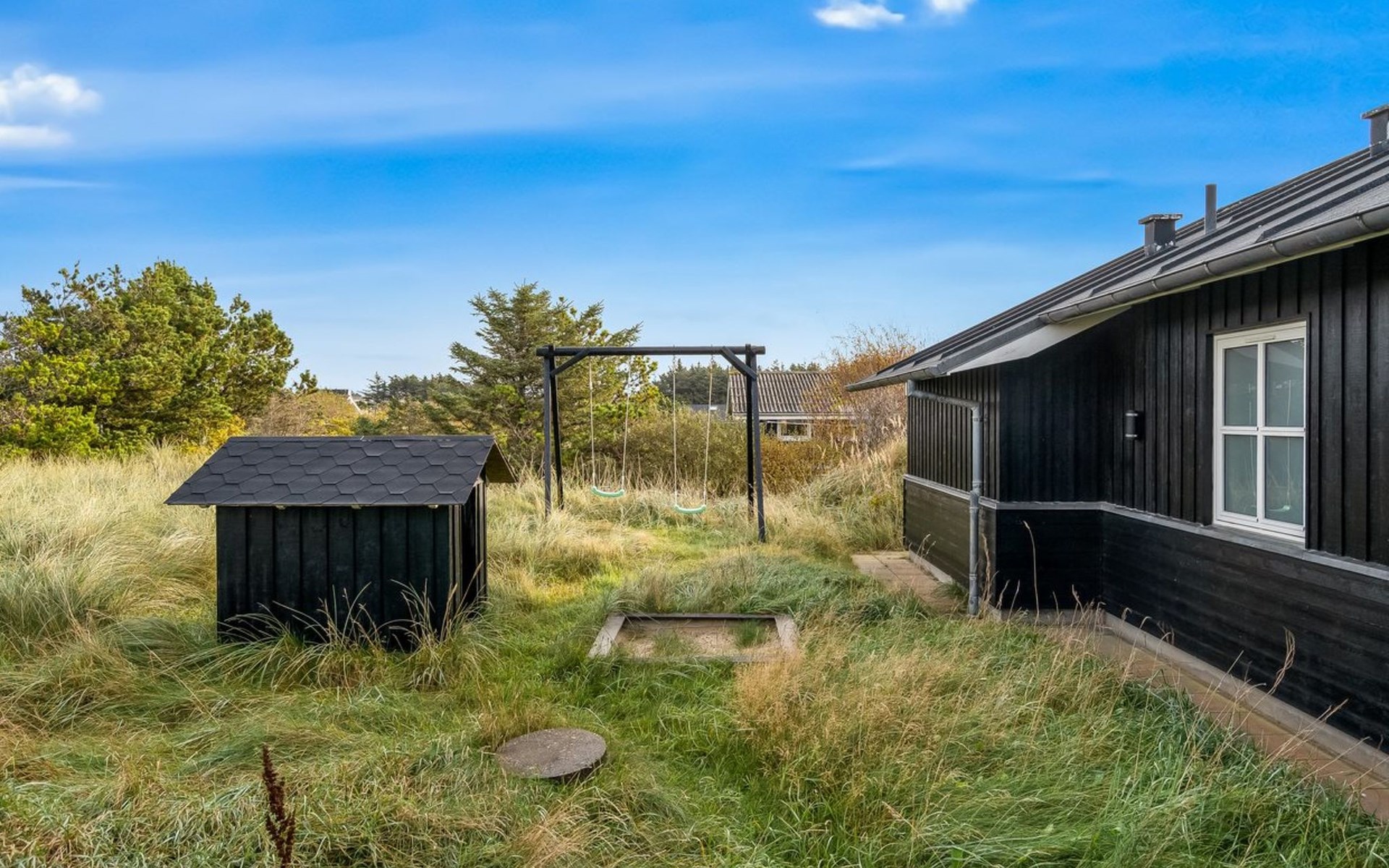 Single-family house, built in 2010. 500 m from the sea. Private: natural state property 2'100 m2. Terrace (12 m2), children's playground (swing). In the house: sauna, washing machine, tumble dryer. Parking at the house. Carport. E-charging station. Grocery 600 m. The owner does not accept any youth groups.