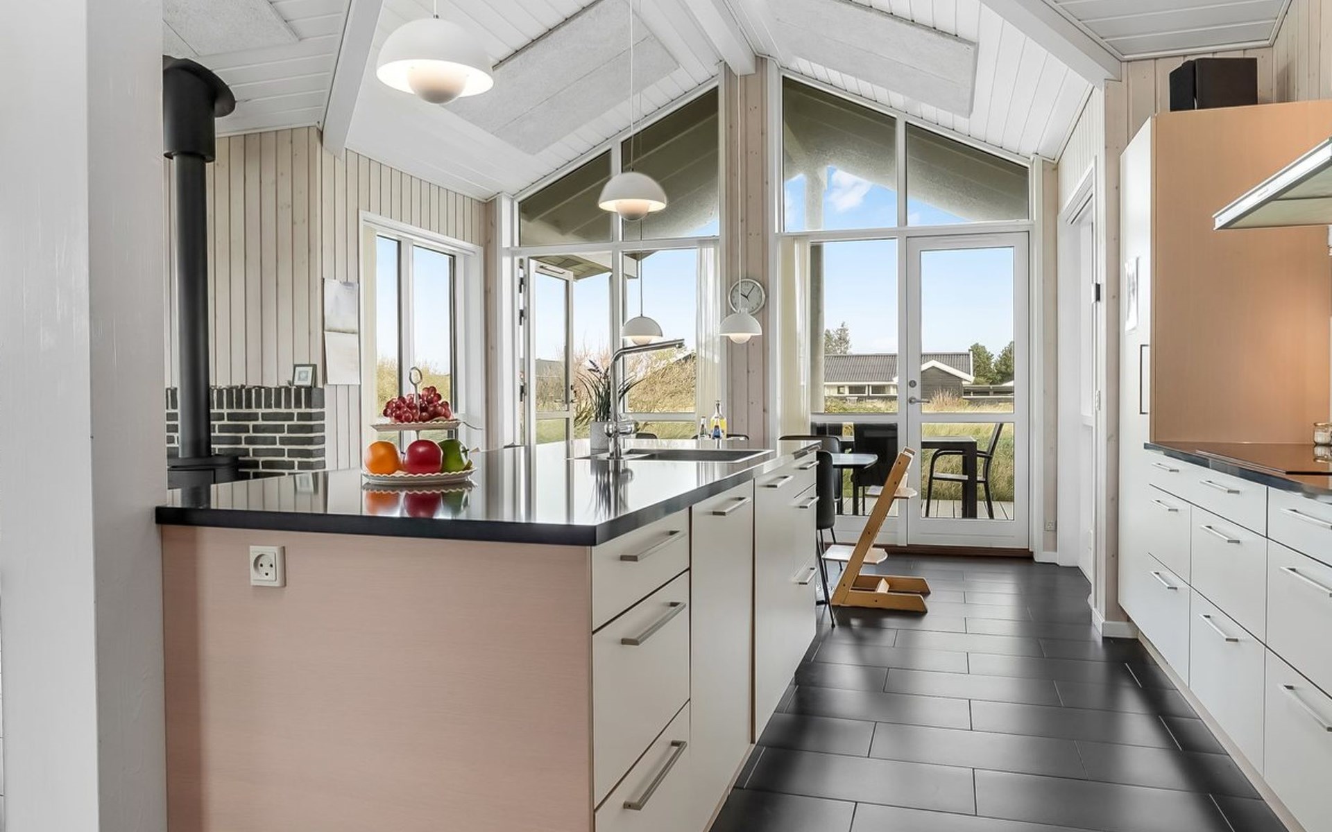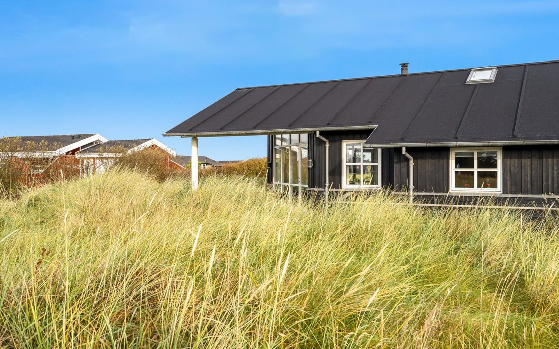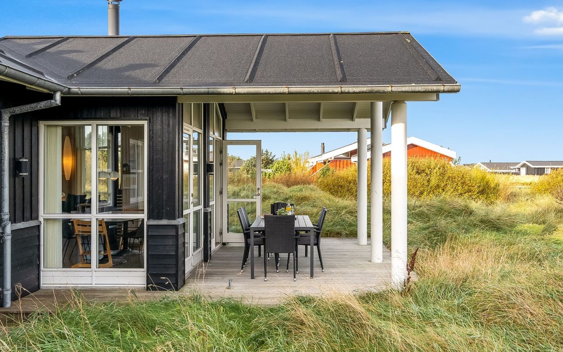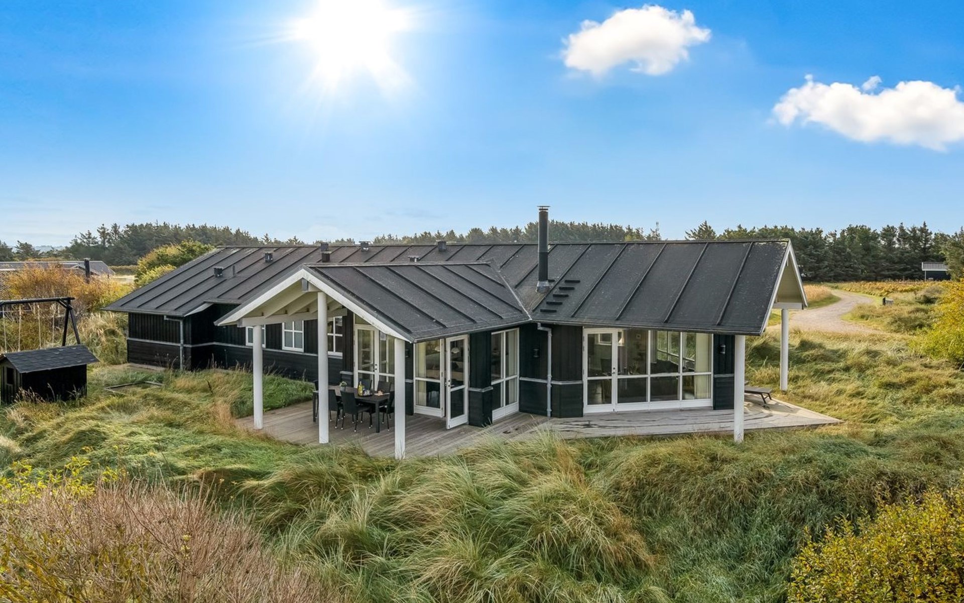 Single-family house, built in 2010. 500 m from the sea. Private: natural state property 2'100 m2. Terrace (12 m2), children's playground (swing). In the house: sauna, washing machine, tumble dryer. Parking at the house. Carport. E-charging station. Grocery 600 m. The owner does not accept any youth groups.