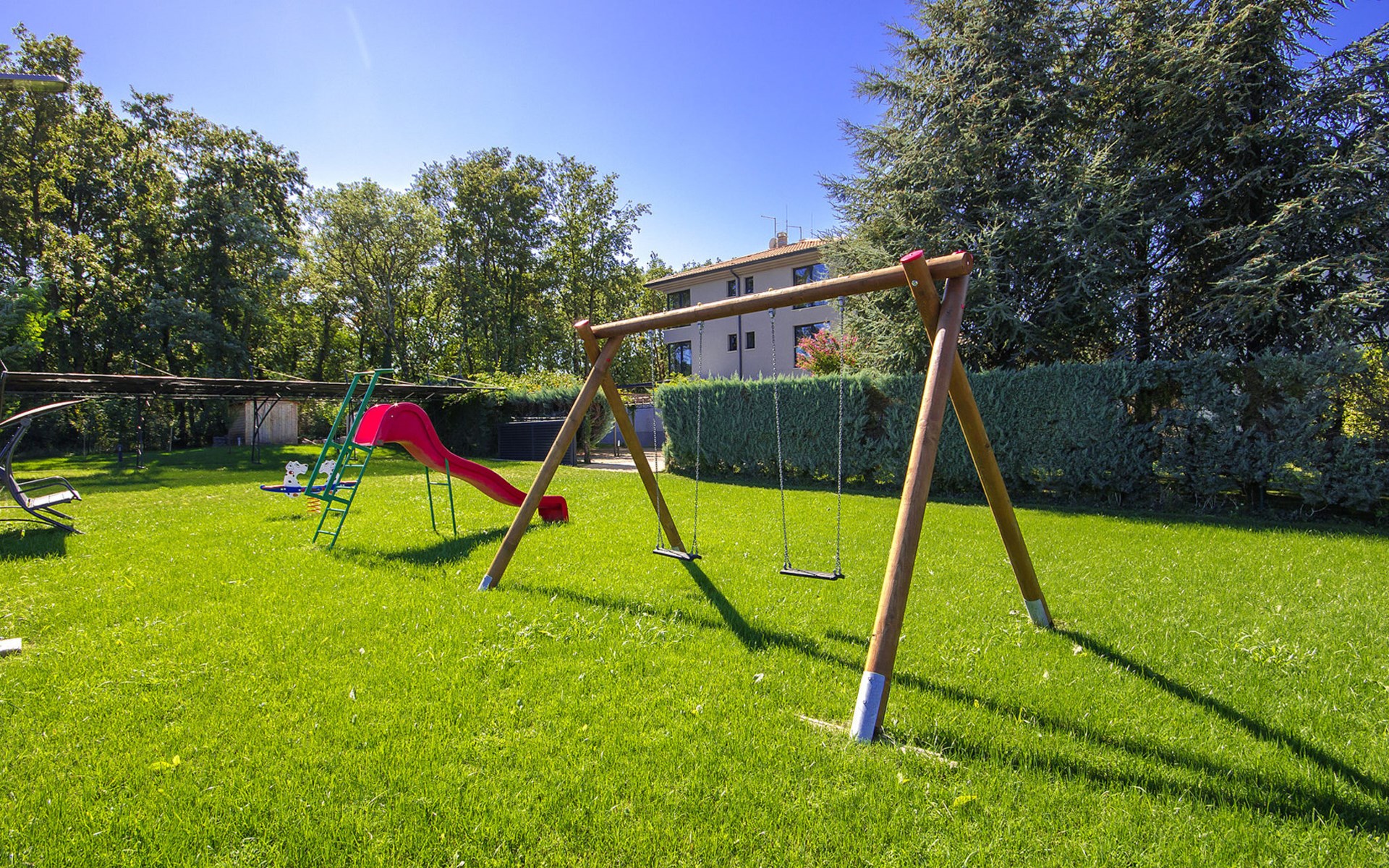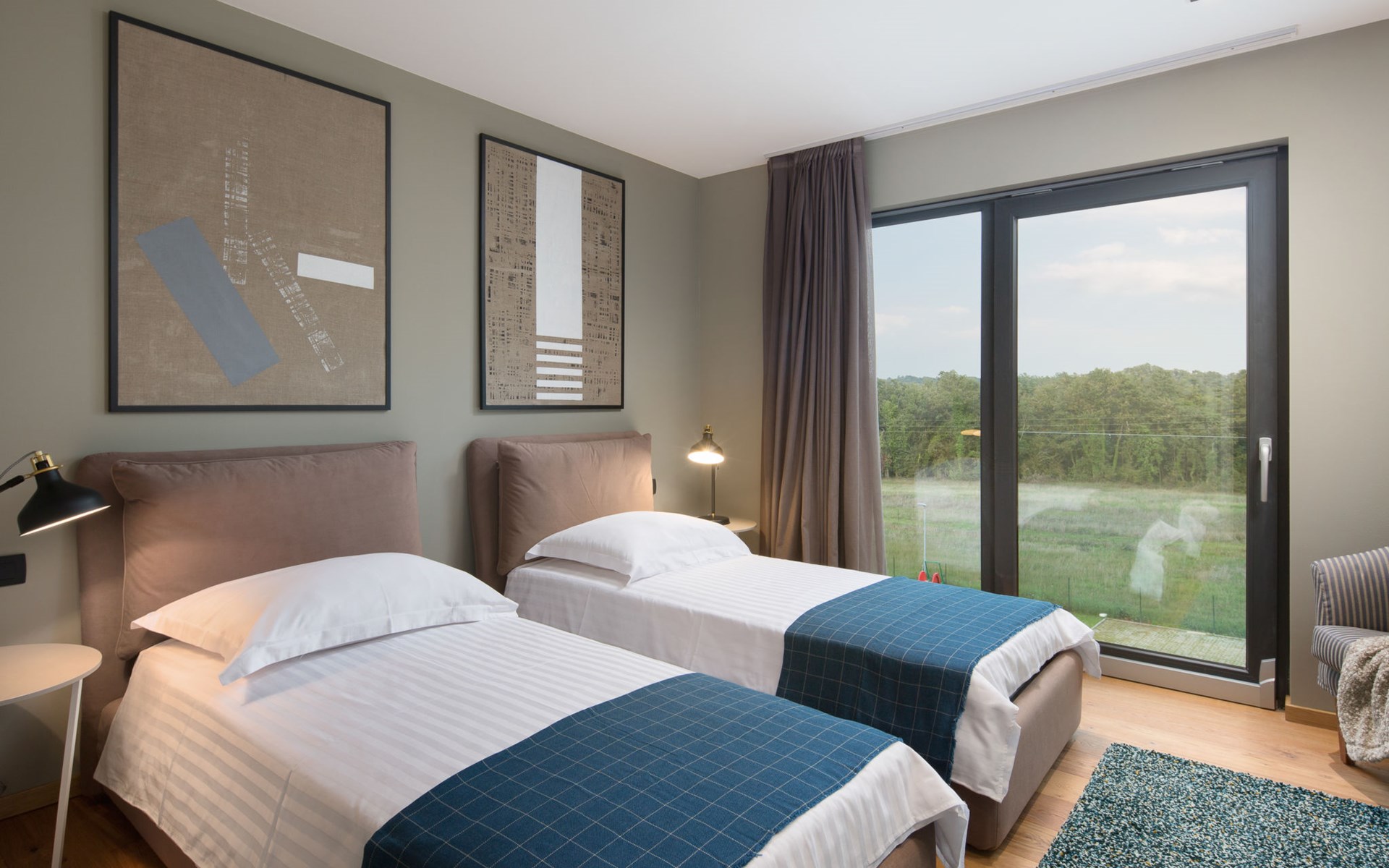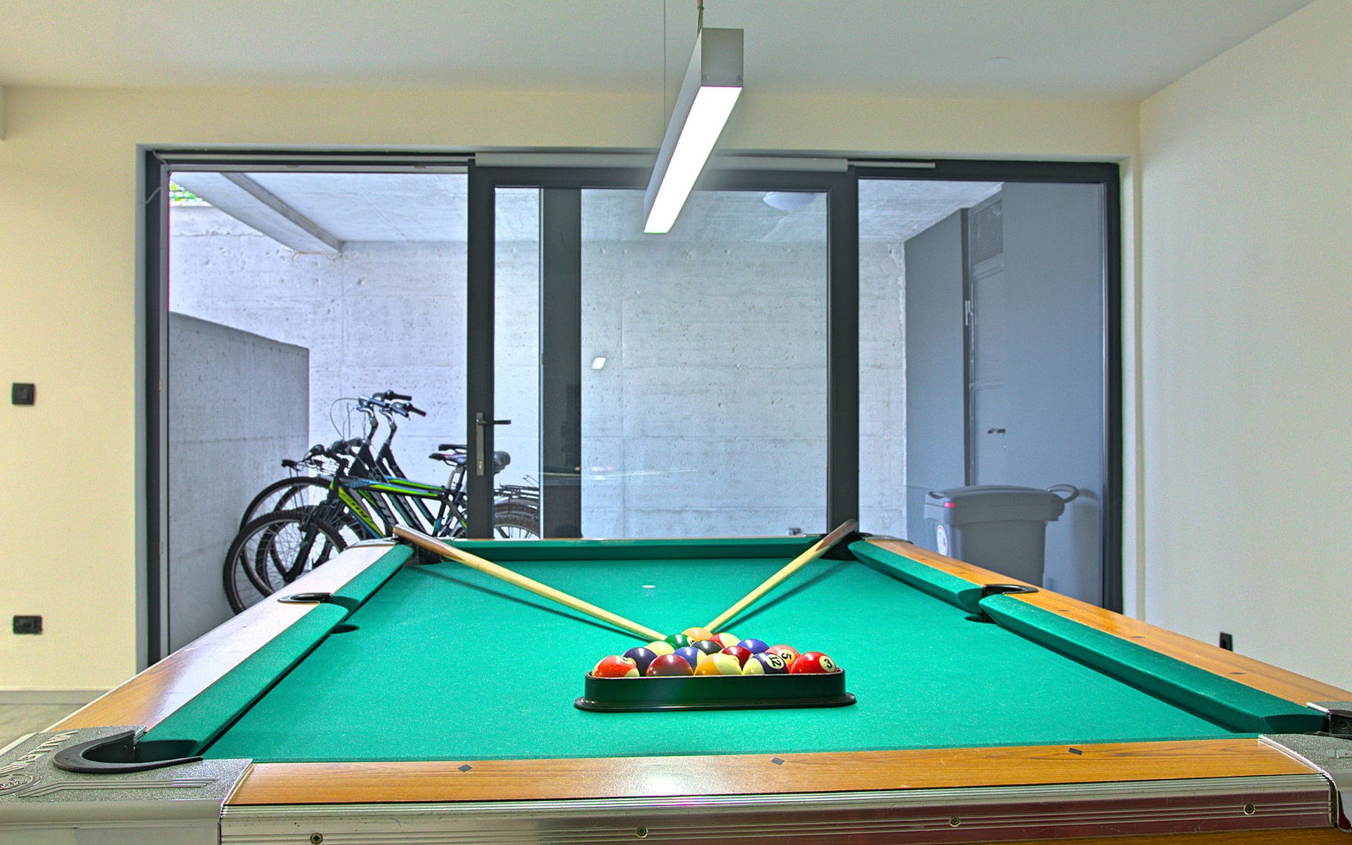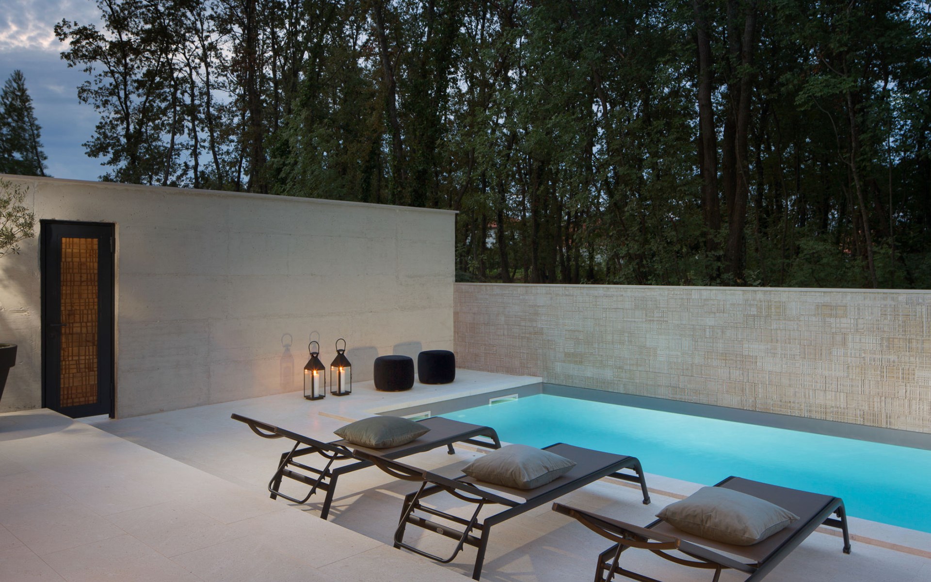 Modern semi-detached house "Oliva 1", 4 storeys, built in 2017. In the hamlet Križine 4 km from the centre of Umag, in a quiet, sunny position, from the sea, 200 m from the beach. For shared use: property 2'000 m2 (fenced), beautiful garden with lawn and plants. Children's playground (slide, swing). Private: property 100 m2 (fenced), swimming pool angular, heated (8 x 4 m, depth 140 cm, seasonal availability: 01.Jan. - 31.Dec.) with internal staircase. Outdoor shower. In the house: internet access, billiard table, table football, central heating system, washing machine, tumble dryer. Parking (for 2 cars) at the house on the premises. E-charging station. Shop 300 m, supermarket 3 km, restaurant 300 m, bus stop 400 m, pebble beach, rocky beach 200 m. Golf course (18 hole) 12 km, tennis 4 km, riding stable 5 km, walking paths from the house 100 m, cycle lane 150 m. Youth groups are not allowed. Swimming pool heated (extra).