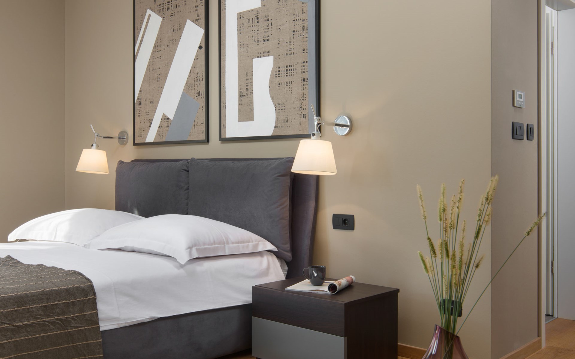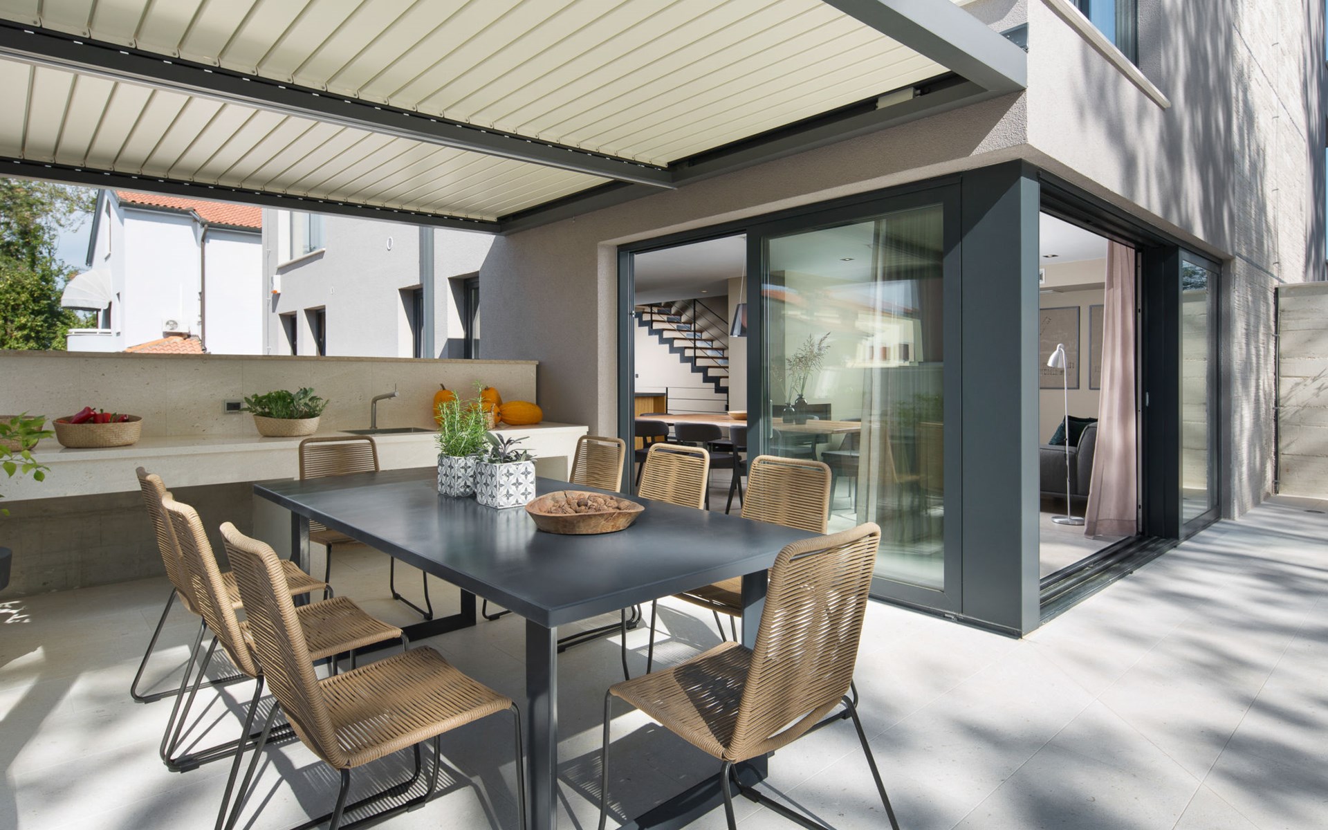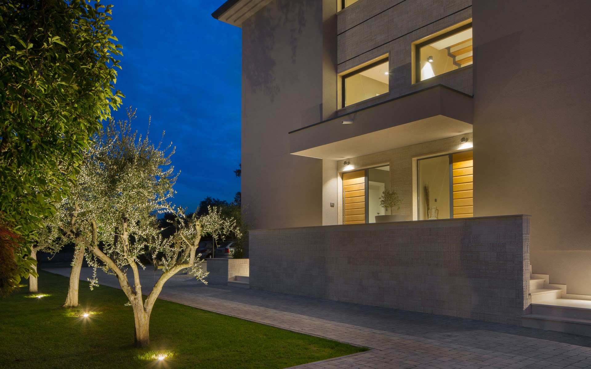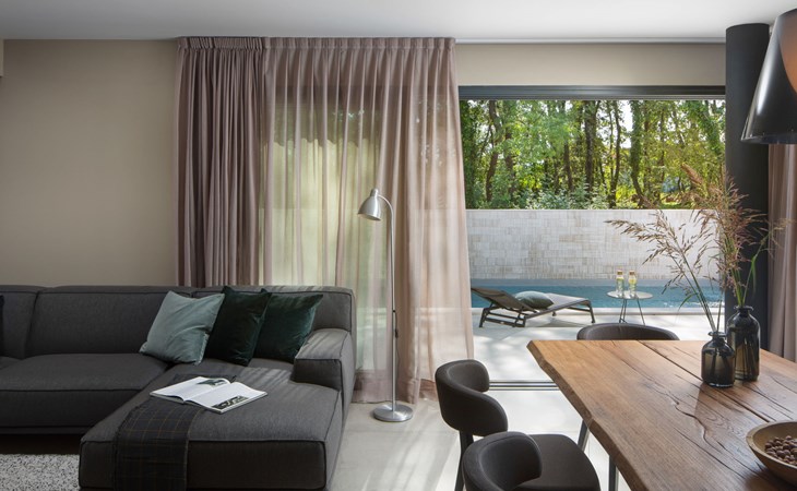 Modern semi-detached house "Oliva 1", 4 storeys, built in 2017. In the hamlet Križine 4 km from the centre of Umag, in a quiet, sunny position, from the sea, 200 m from the beach. For shared use: property 2'000 m2 (fenced), beautiful garden with lawn and plants. Children's playground (slide, swing). Private: property 100 m2 (fenced), swimming pool angular, heated (8 x 4 m, depth 140 cm, seasonal availability: 01.Jan. - 31.Dec.) with internal staircase. Outdoor shower. In the house: internet access, billiard table, table football, central heating system, washing machine, tumble dryer. Parking (for 2 cars) at the house on the premises. E-charging station. Shop 300 m, supermarket 3 km, restaurant 300 m, bus stop 400 m, pebble beach, rocky beach 200 m. Golf course (18 hole) 12 km, tennis 4 km, riding stable 5 km, walking paths from the house 100 m, cycle lane 150 m. Youth groups are not allowed. Swimming pool heated (extra).