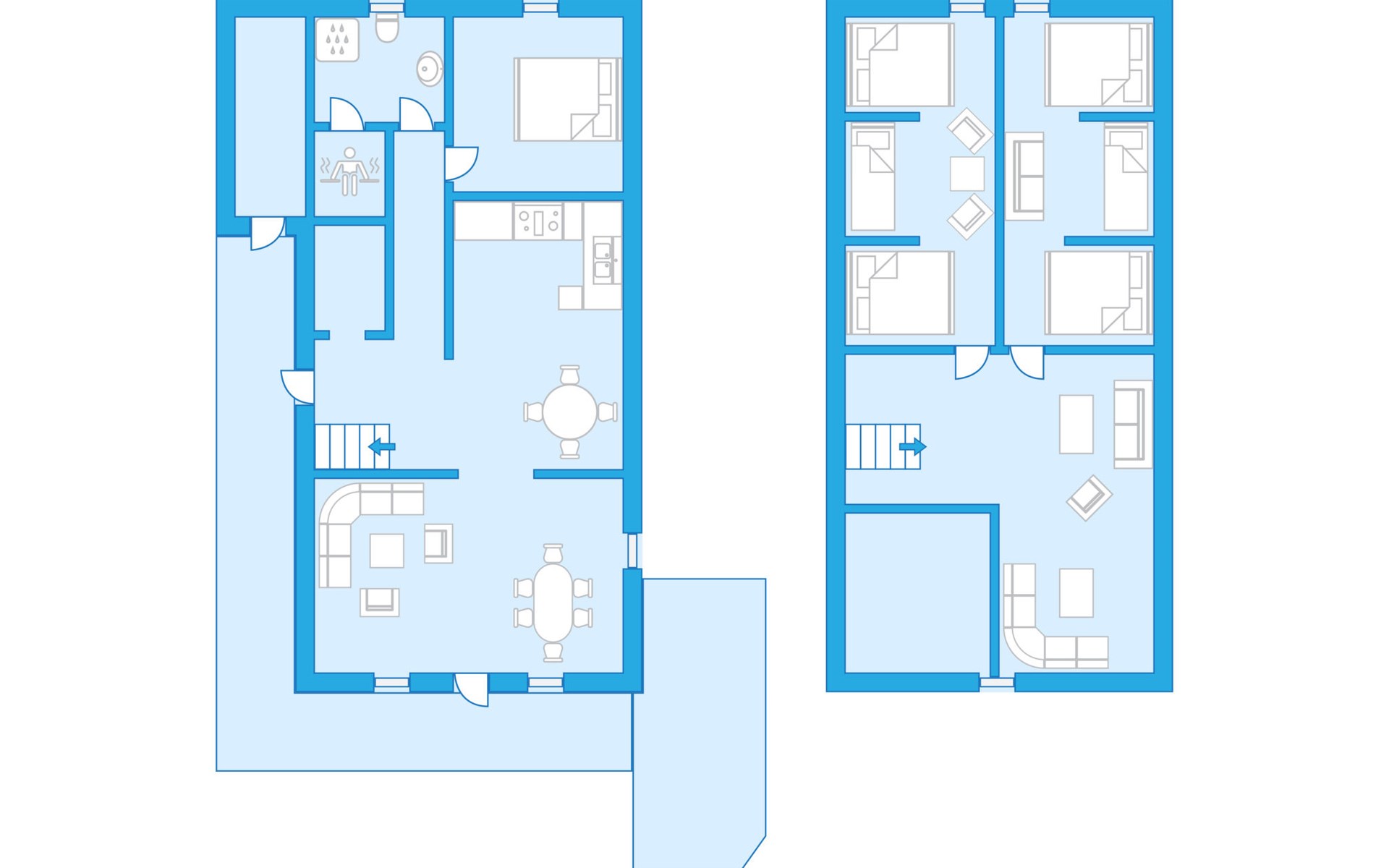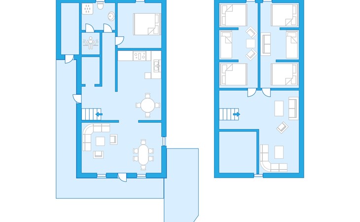 "Kvila", 5-room house 120 m2 on 2 levels. Cosy furnishings: living/dining room with Scandinavian wood stove, dining table, satellite TV, international TV channels, CD-player and DVD. Exit to the terrace. 1 room with 1 double bed (160 cm, length 200 cm). Open kitchen (4 hot plates, oven, dishwasher, microwave, freezer, electric coffee machine) with dining table. Shower/WC, Sauna. Electric heating. Upper floor: living room with sloping ceilings, ceiling height 100 - 220 cm with satellite TV, international TV channels and DVD. 1 room with sloping ceilings, ceiling height 100 - 220 cm with 2 beds (120 cm, length 200 cm), 1 double bed (150 cm, length 200 cm). 1 room, ceiling height 100 - 220 cm with 1 bed (120 cm, length 200 cm), 1 sofabed (150 cm, length 200 cm), 1 double bed (160 cm, length 200 cm). Box-room. View of the river. Facilities: washing machine, dryer, sauna, iron. Internet (WiFi, extra). Please note: non-smoking house. Maximum 2 pets/ dogs allowed. Smoke alarm, fire extinguisher. Bed layout is flexible. There are more sleeping options available than the maximum number of people allowed which may, however, not be exceeded. 924531169
