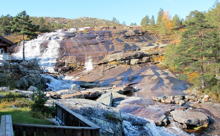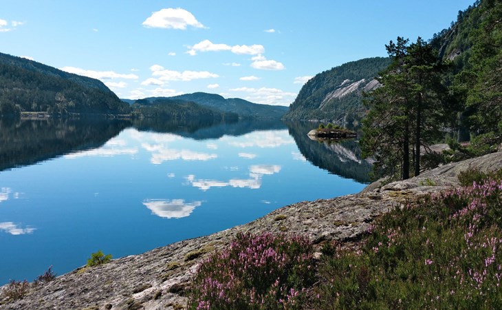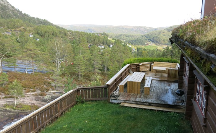 Holiday development "Kvila", 396 m a.s.l.. 12 km from the centre of Kyrkjebygda, 79 km from the centre of Mandal, 84 km from the centre of Kristiansand, 800 m from the lake, 20 m from the river. Private: natural state property 500 m2. Terrace, garden furniture, barbecue, parking on the premises. Shop 12 km, bus stop "Eikerapen" 700 m, railway station "Snartemo" 43 km, ferry "Kristiansand" 84 km. Residence with electric gates.