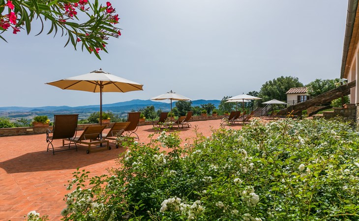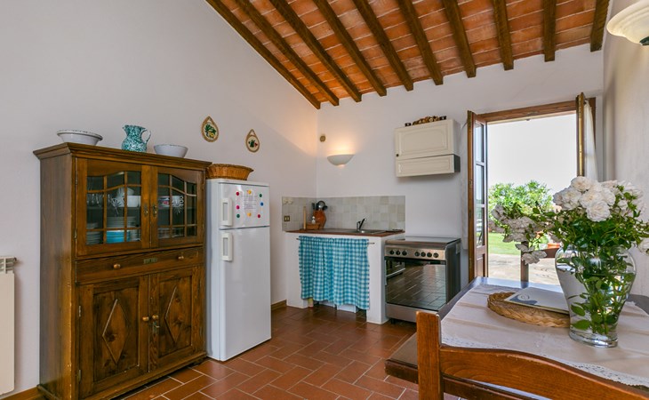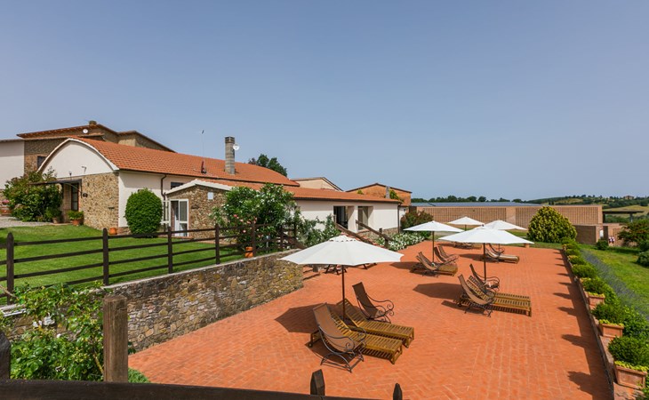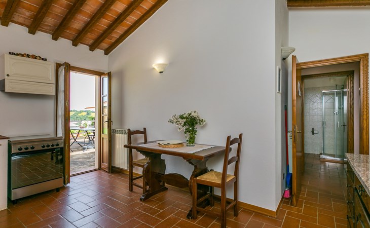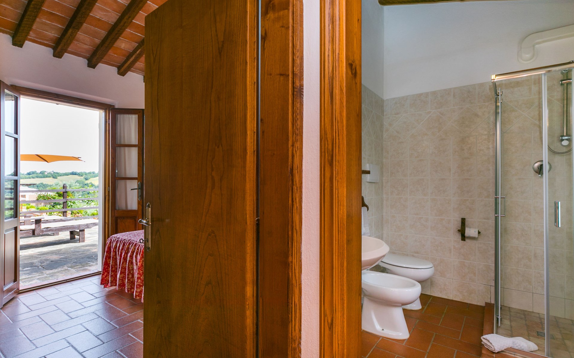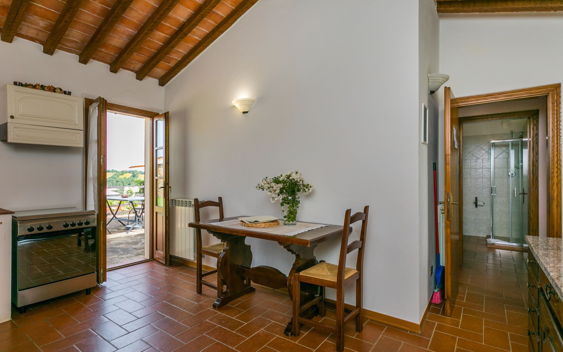 The property is located within the organic farm, where high quality wine and oil are produced. Beautiful large working farm "Salustri", surrounded by fields. 5 houses in the resort. 10 km from the centre of Cinigiano, in a quiet, elevated position, 51 km from the sea, in the countryside. For shared use: beautiful garden to relax, indoor pool heated (6 x 10 m, depth 150 cm, seasonal availability: 01.May. - 01.Nov.). WC in the pool area, shower/WC in the pool area, terrace, garden furniture. In the complex: reception, sun terrace, washing machine (for shared use, extra). Parking on the premises. Supermarket 10 km, restaurant 3 km, sandy beach 50 km. Riding stable 11 km. Nearby attractions: Montalcino 35 km, Val d“Orcia, Monte Amiata, Parco dell'Uccellina 50 km, Castiglione della Pescaia 50 km. Please note: car recommended. Local sale of farm products.