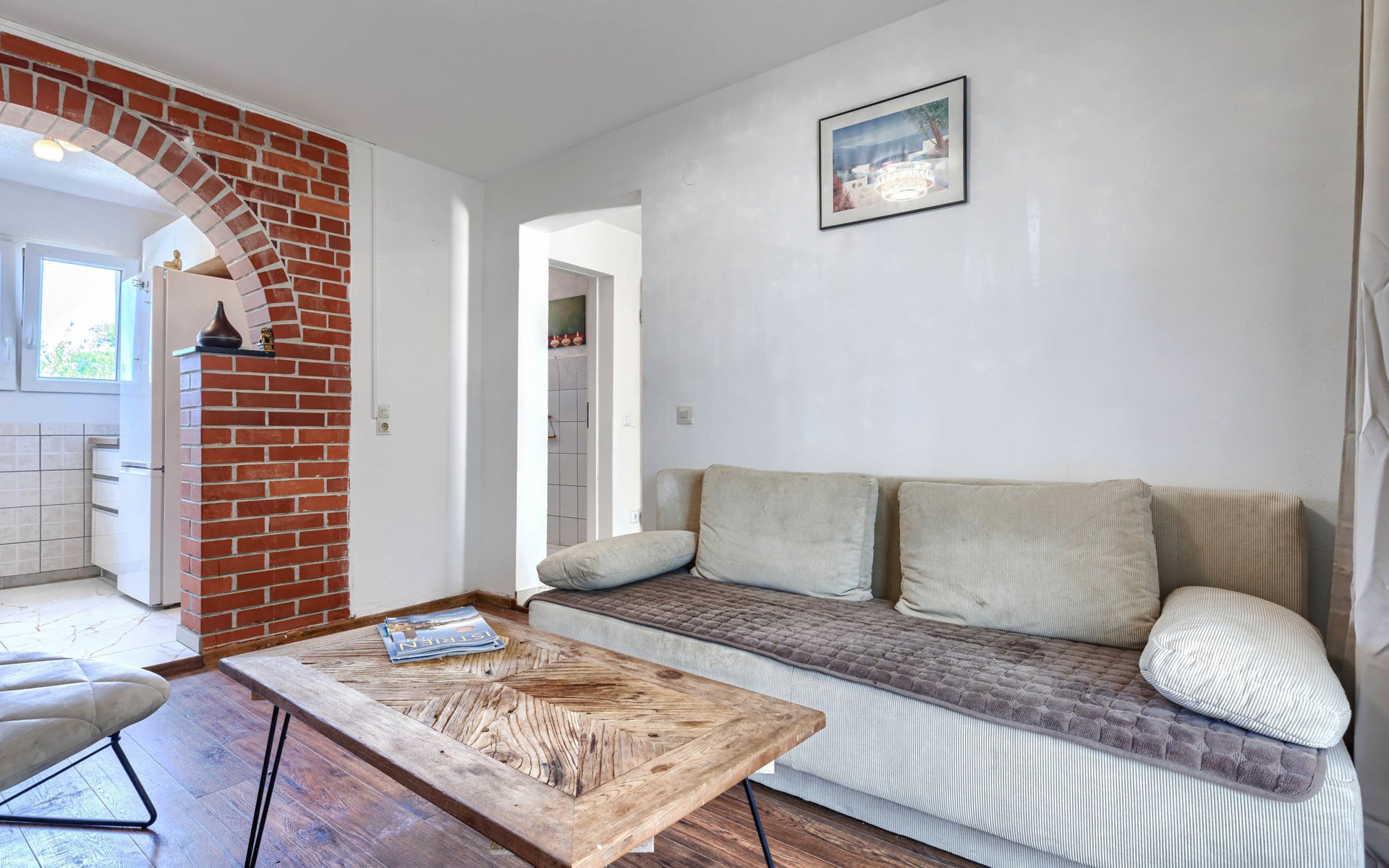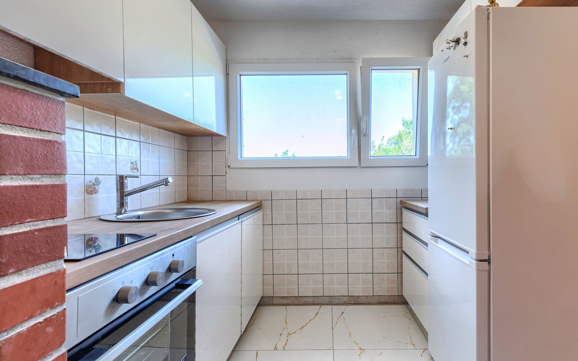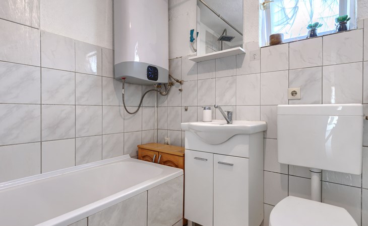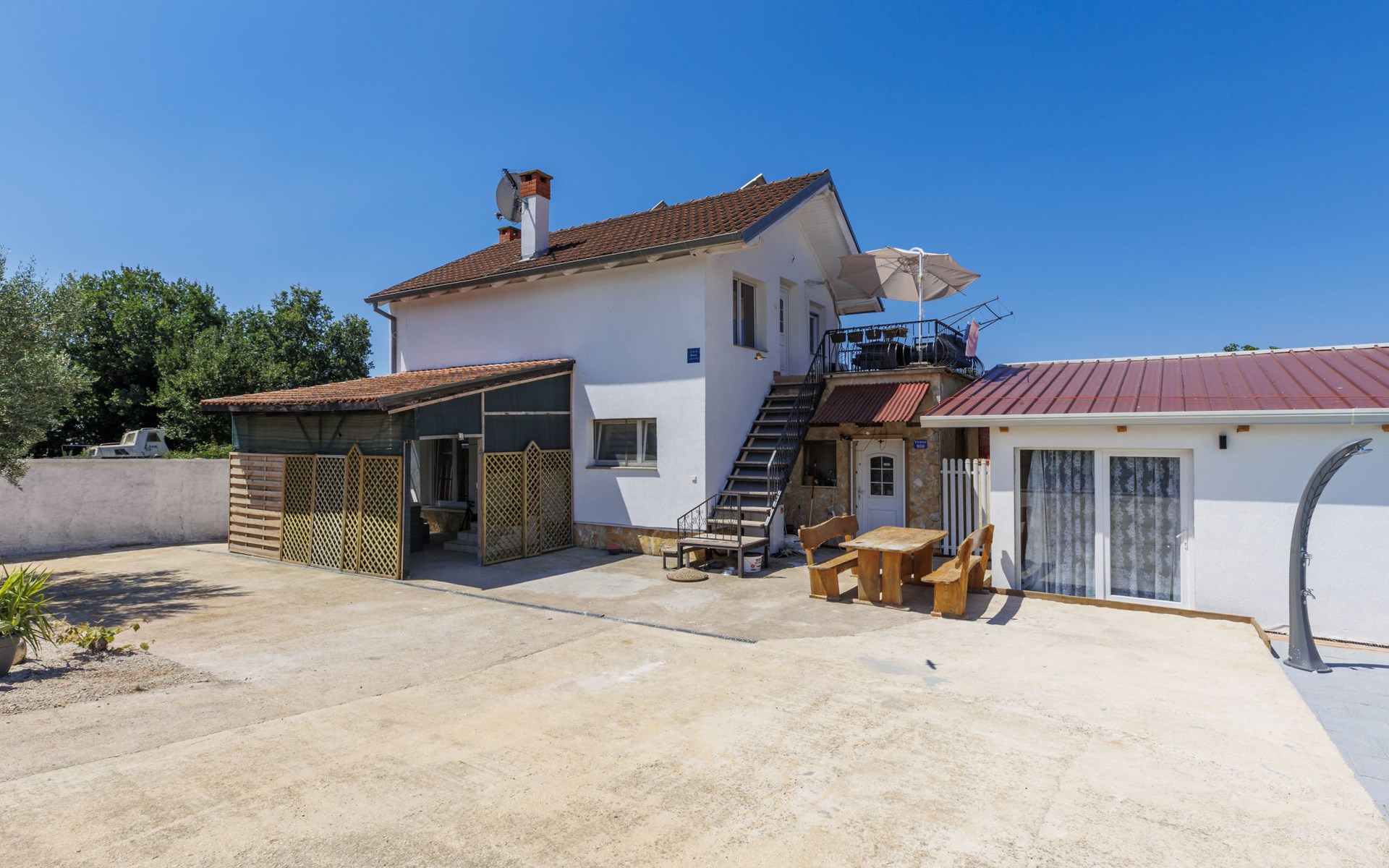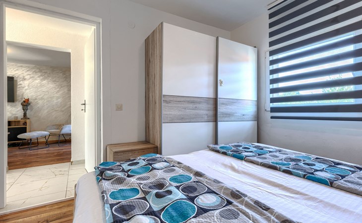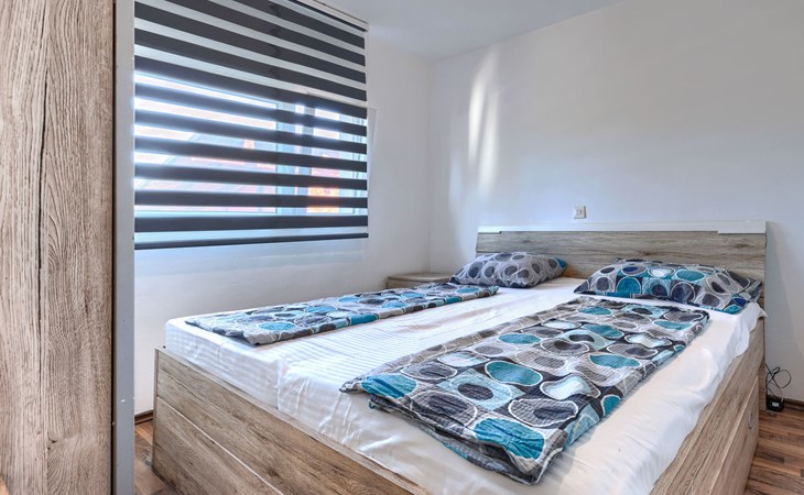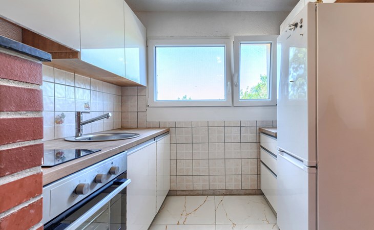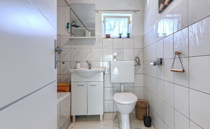 2-family house "Sabo". 1.7 km from the centre of Peroj, 3 km from the centre of Fažana, 8 km from the centre of Vodnjan, in a sunny position, 300 m from the sea, 300 m from the beach. For shared use: property 150 m2 (fenced), swimming pool angular (5 x 3 m, depth 140 cm, seasonal availability: 01.Apr. - 01.Nov.) with internal staircase. Outdoor shower. In the house: internet access. Motor access (500 m via unmade road). Parking at the house on the premises. Shop 1 km, supermarket 3 km, restaurant 1.5 km, bus stop 900 m, pebble beach 1 km, rocky beach 300 m. Please note: the owner lives on the same property. The owner has a dog.