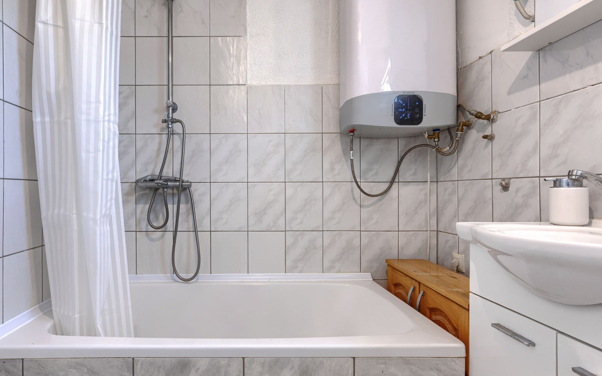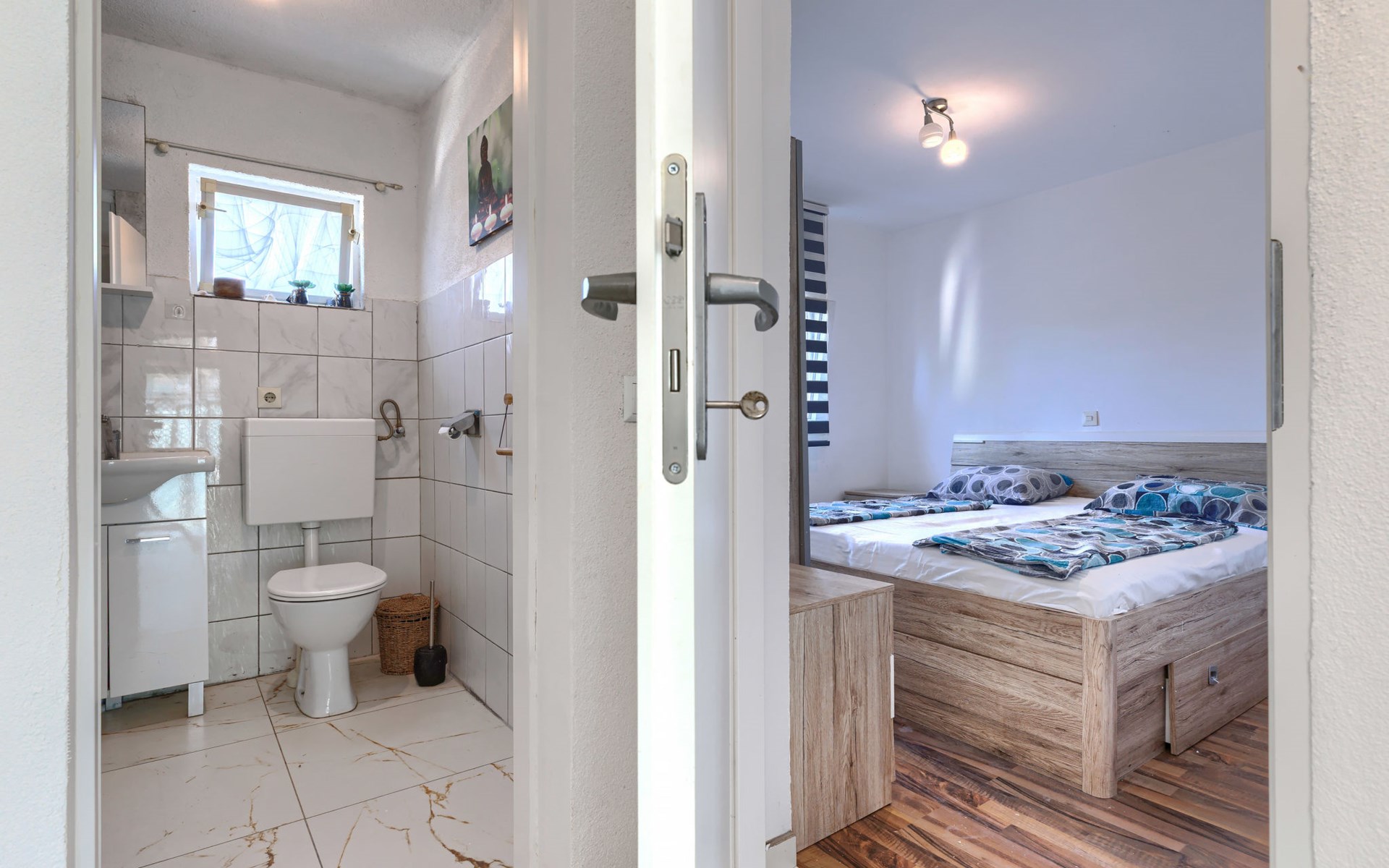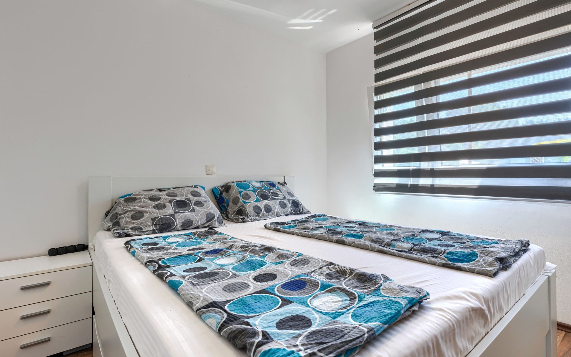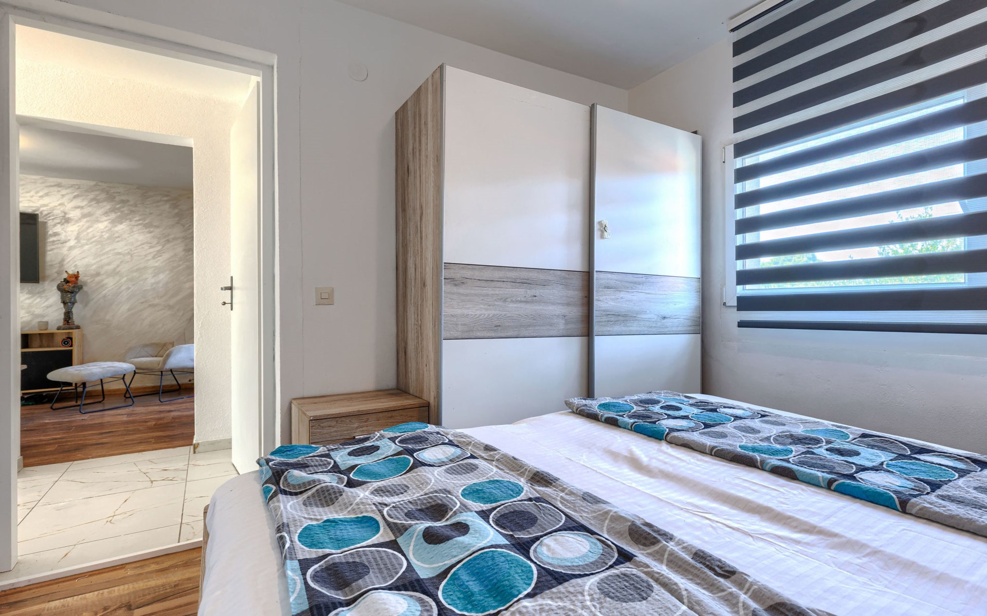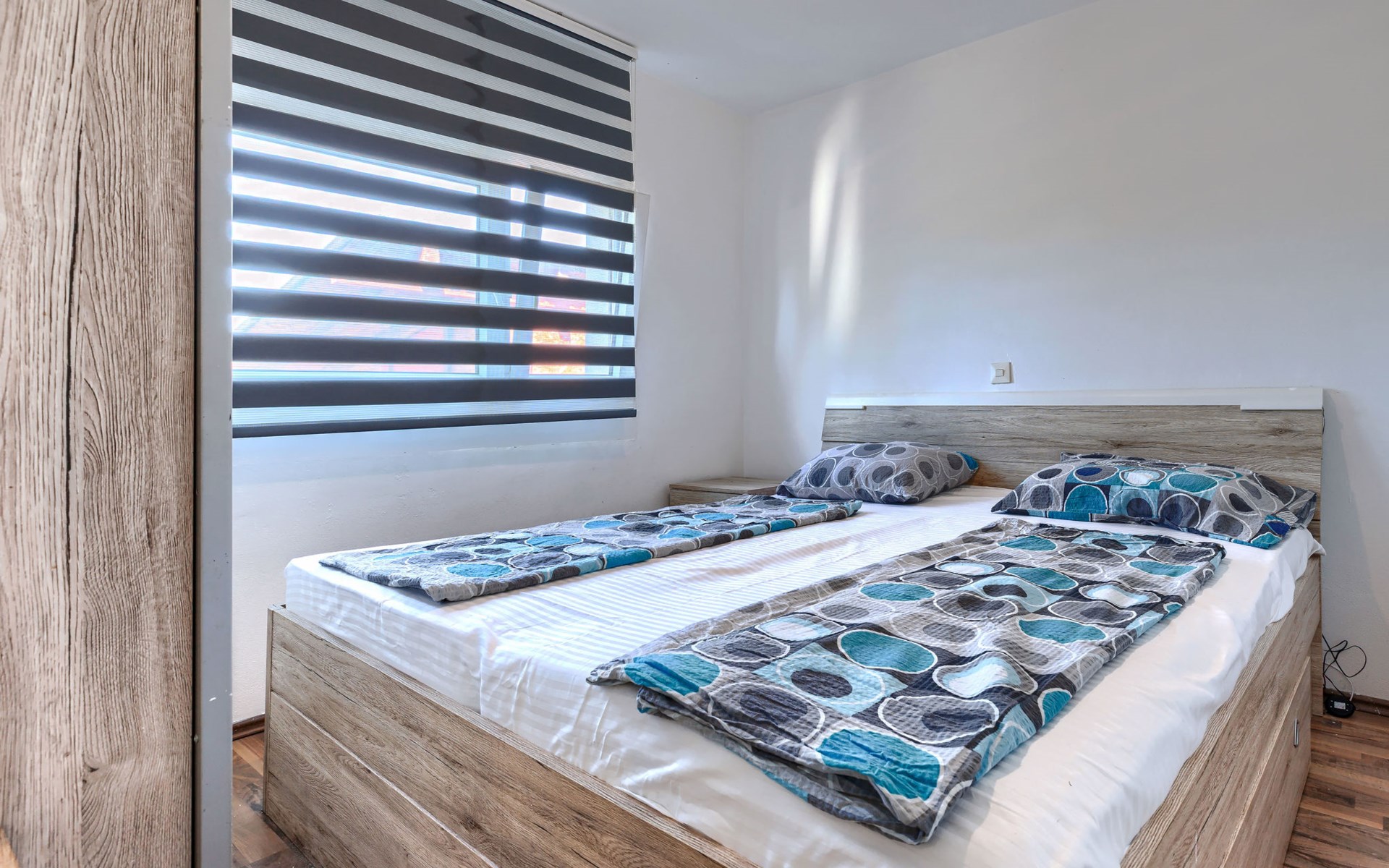 2-family house "Sabo". 1.7 km from the centre of Peroj, 3 km from the centre of Fažana, 8 km from the centre of Vodnjan, in a sunny position, 300 m from the sea, 300 m from the beach. For shared use: property 150 m2 (fenced), swimming pool angular (5 x 3 m, depth 140 cm, seasonal availability: 01.Apr. - 01.Nov.) with internal staircase. Outdoor shower. In the house: internet access. Motor access (500 m via unmade road). Parking at the house on the premises. Shop 1 km, supermarket 3 km, restaurant 1.5 km, bus stop 900 m, pebble beach 1 km, rocky beach 300 m. Please note: the owner lives on the same property. The owner has a dog.