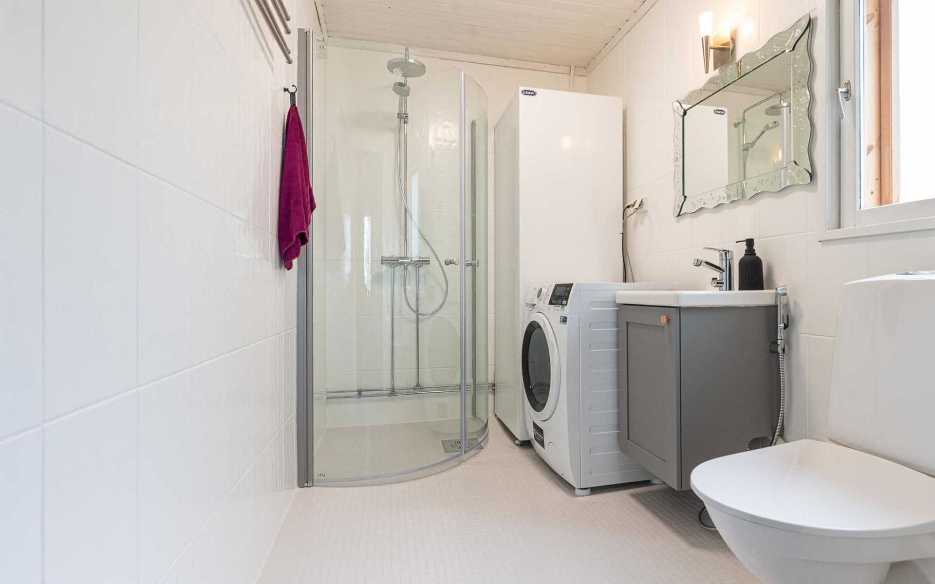 2 bedrooms. First bedroom with a 160 cm wide double bed and second bedroom with a 140 cm wide double bed. Livingroom, where 2 armchairs which can be converted into a bed for 1 person. Kitchenette, bathroom that has been is renovated in 2023. Separate Lakeshore sauna with a electric heater.