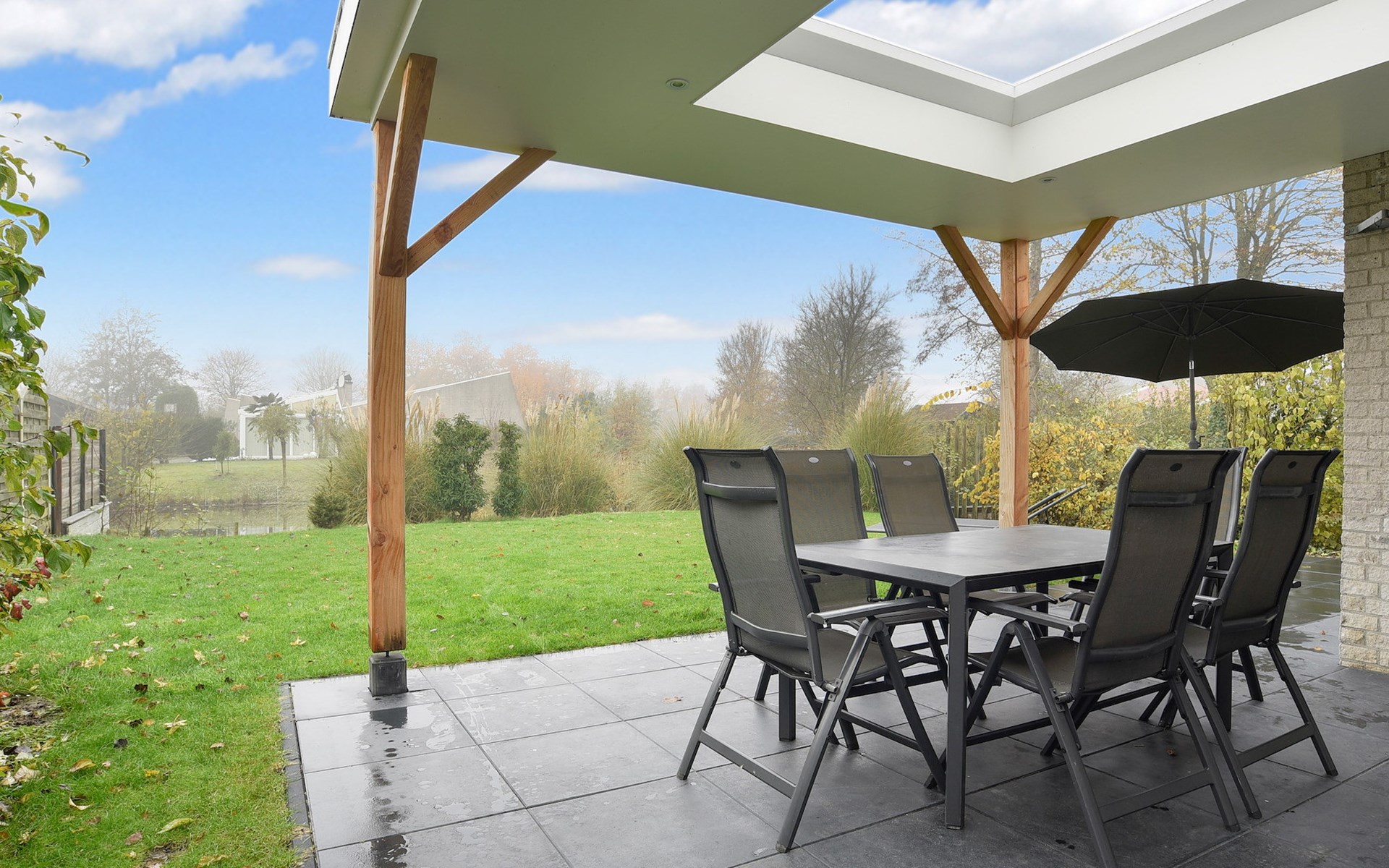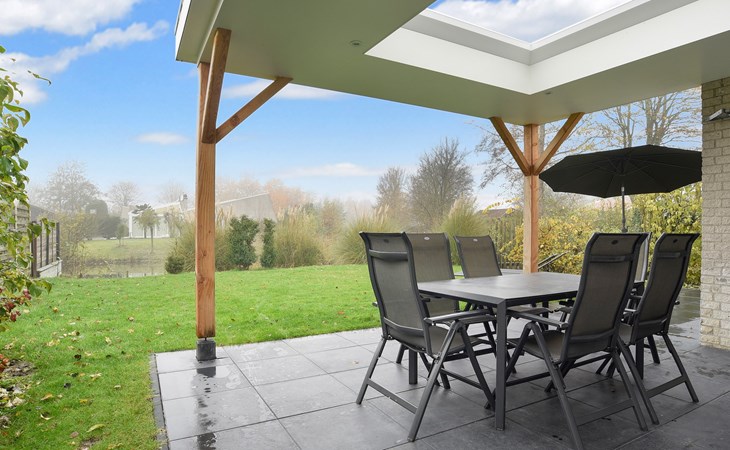 Outside there is a partly covered patio with garden furniture, deck chairs and a parasol. The garden is partially fenced. The bungalow also has an internal storage room, stair gates and childproof sockets. There is also a charging station for electric cars at the bungalow.