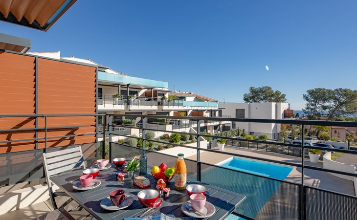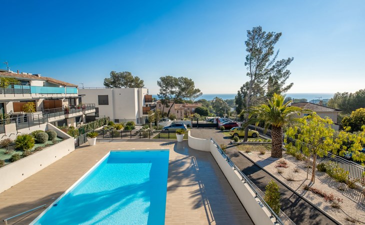 Residence "Le Diamanti", 2 storeys, built in 2021. In the resort 1 km from the centre of Saint Aygulf, in a sunny position in the residential district, 700 m from the sea, 700 m from the beach. For shared use: swimming pool angular fenced (6 x 12 m, depth 100 - 200 cm, seasonal availability: 01.Jun. - 15.Oct. pool opening hours: 09:00-20:00) with internal staircase. Shower/WC in the pool area. In the house: lift, storage room for bicycles. Parking. Shop 700 m, shopping centre 5.5 km, bakery 700 m, 10 minute walk to the centre, bus stop "Saint-Aygulf La Poste" 800 m, railway station "Fréjus" 7 km, sandy beach "Saint Aygulf" 2 km pebble beach "Calanque des Corailleurs" 700 m, park "Areca" 1 km, diving center 7 km, thermal baths "Thalasso de Port Fréjus" 7 km. Sports harbour 2 km, golf course (18 hole) 8 km, sailing school 8 km, riding stable 3 km, sports centre 1 km. Nearby attractions: Aqualand, Lunapark 5 km, Fréjus 6 km, Saint Raphaël 8 km, Saint Tropez 30 km, Cannes 50 km, Nice 71 km. Well-known ski regions can easily be reached: Auron, Isola 2000 150 km. Well-known lakes can easily be reached: Lac de St Cassien 45 km, Lac du Du Verdon 90 km. Hiking paths: Estérel 16 km, Sentier du Littoral 700 m. Please note: car recommended. Residence with electric gates.