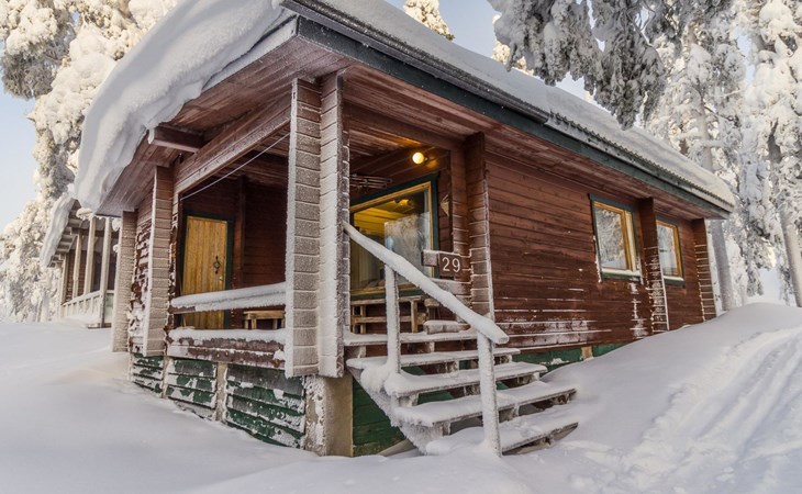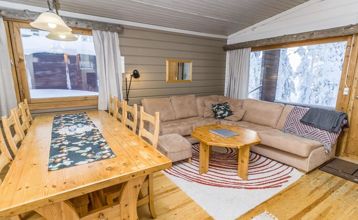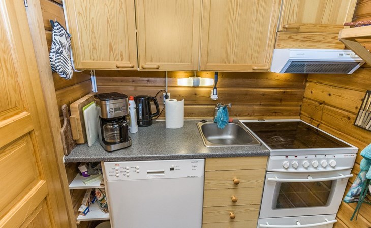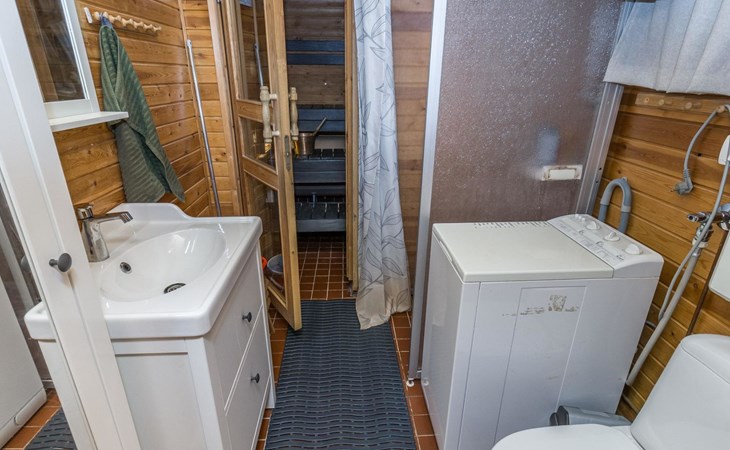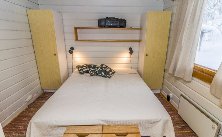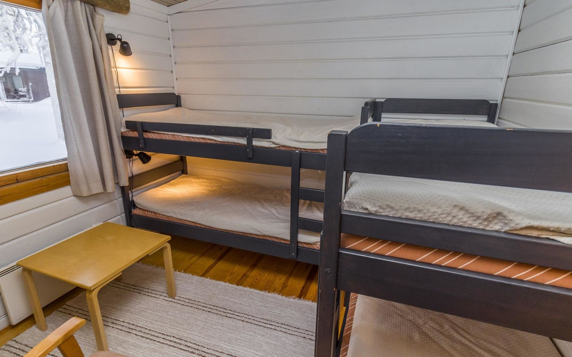 The cabin features two bedrooms, providing comfortable sleeping arrangements for all guests. The first bedroom has two separate beds that can easily be combined into a large double bed when needed. The second bedroom has two bunk beds, making it an excellent choice for families or small groups.