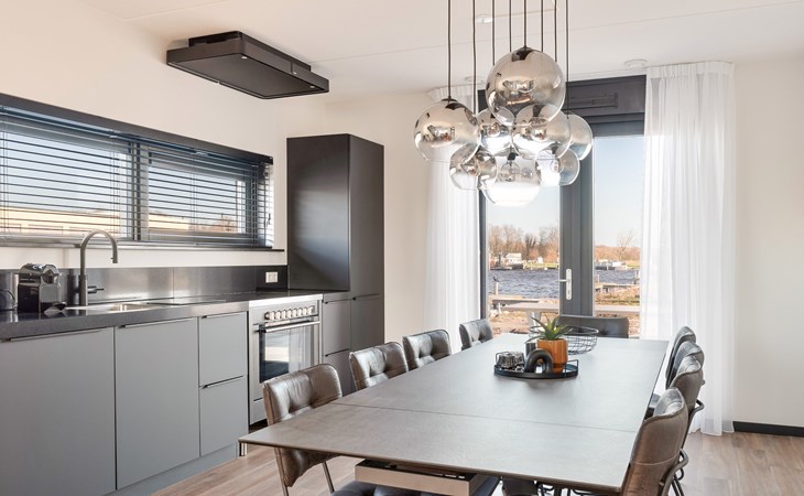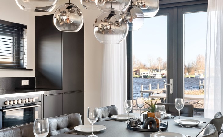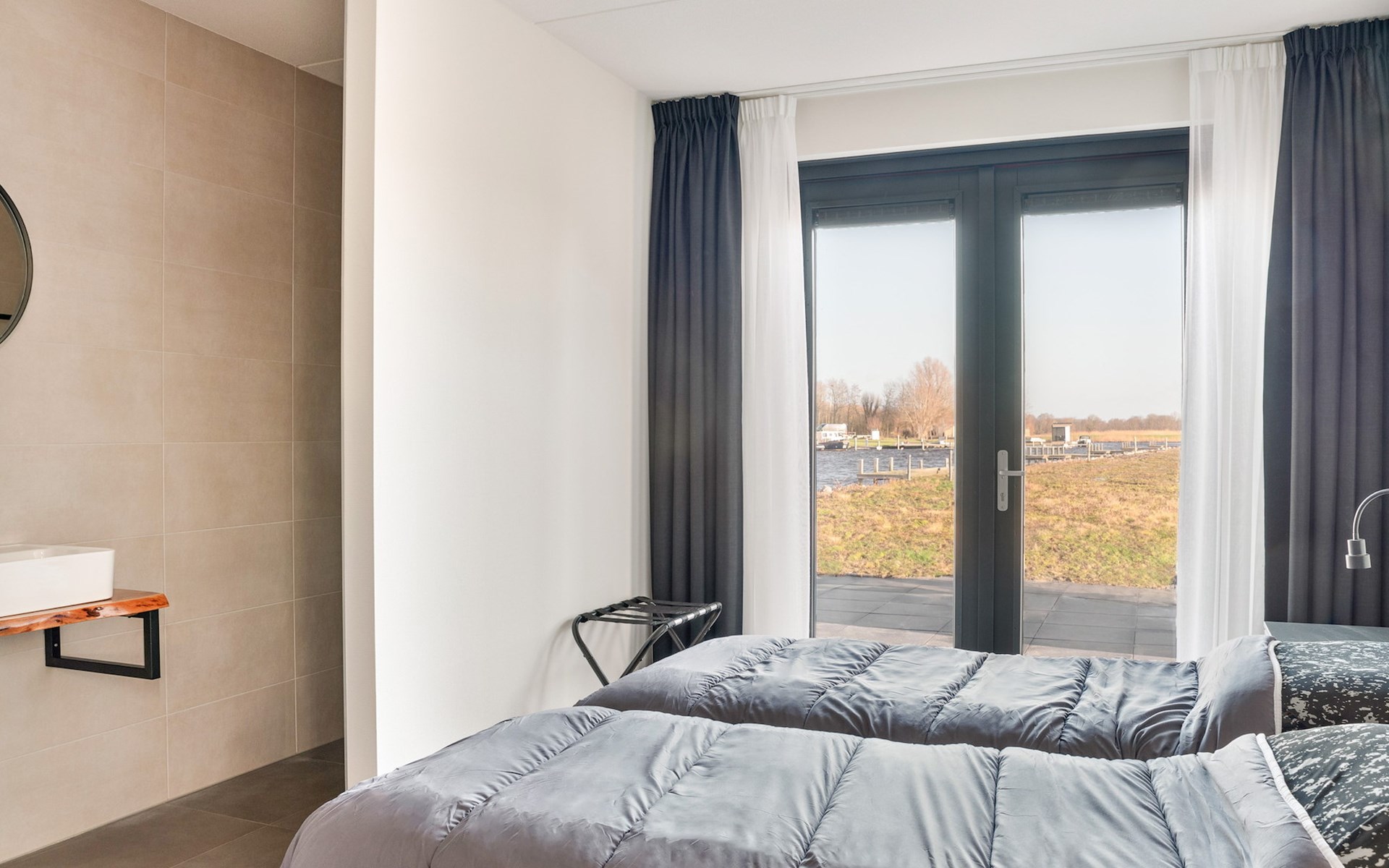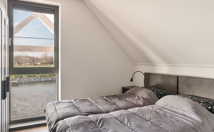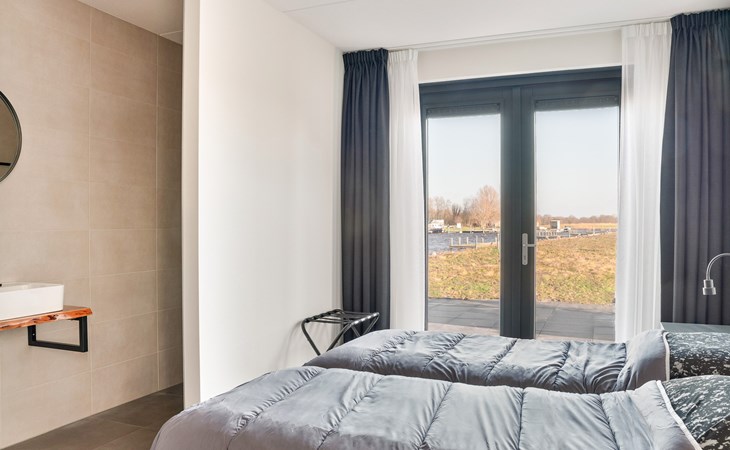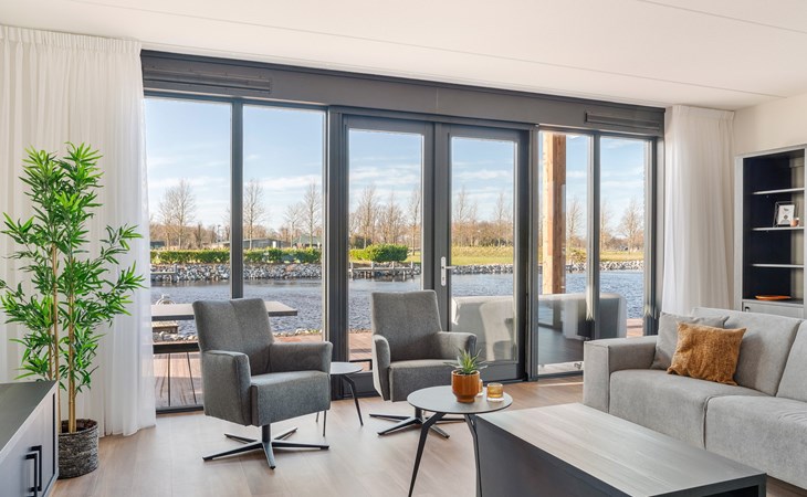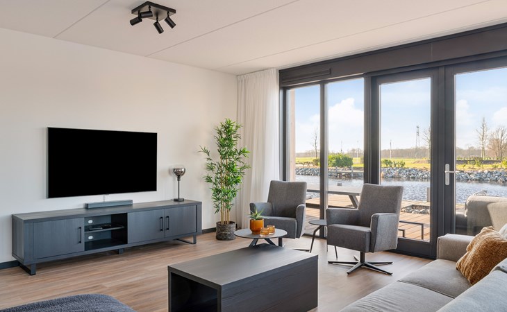 Watervilla Roerdomp Wellness Plus 10 has both a front and a rear furnished patio with a dining area and lounge sofa. In summer, there are 2 sun loungers. At the back, the house borders the inner harbour. Here you will also find your own jetty where you can dock your (rented) boat or go fishing. For even more relaxation, you will find an outdoor hot tub, traditional sauna and an outdoor shower on the patio.