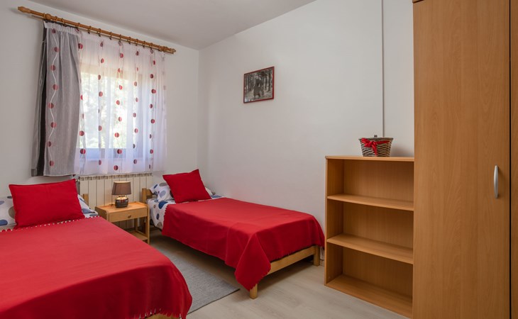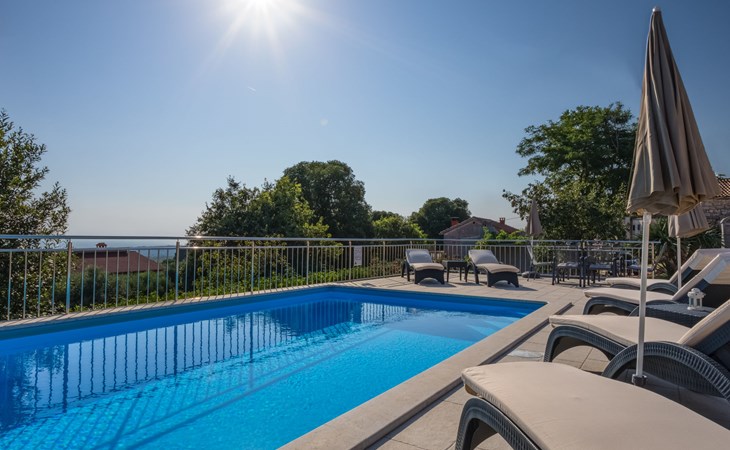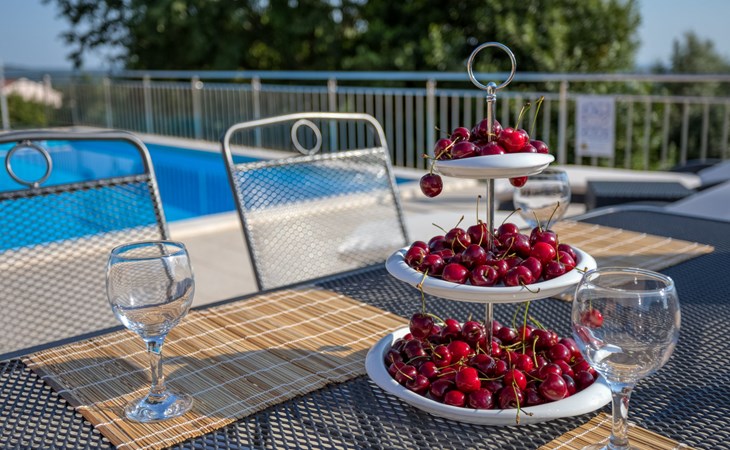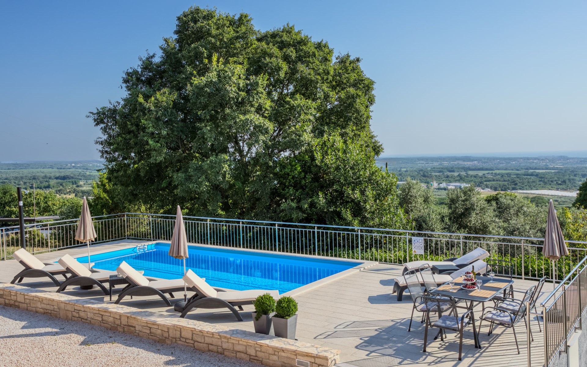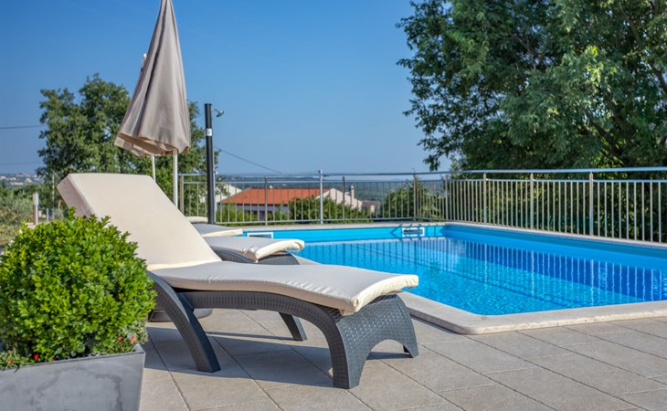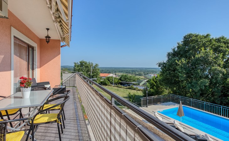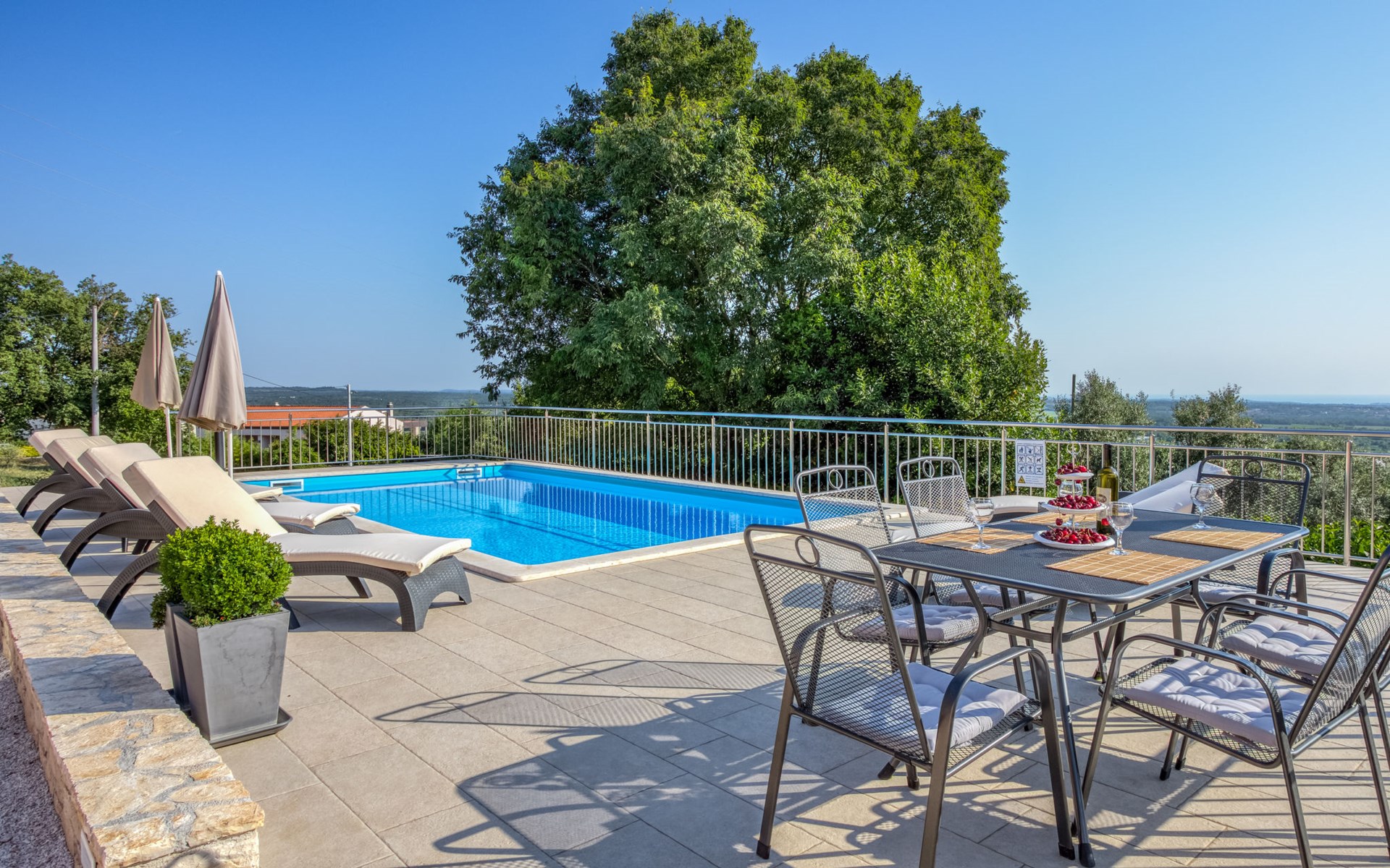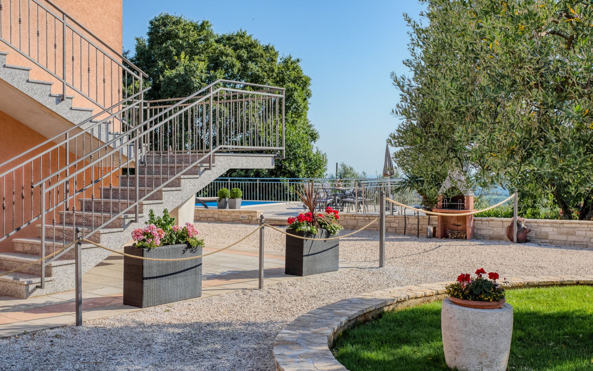 Kaštelir 11 km from Poreč: Single-family house "Legović". 1 km from the centre of Kaštelir, in a quiet, sunny position, 8 km from the sea. Private: property 2'000 m2 (fenced), garden with lawn and wildlife garden, swimming pool angular (8 x 4 m, depth 140 cm, seasonal availability: 01.May. - 05.Oct.) with internal staircase. Outdoor shower, terrace (20 m2), garden furniture, barbecue. In the house: internet access, washing machine. Parking (for 4 cars) at the house on the premises. Shop 200 m, supermarket 11 km, restaurant 200 m, bus stop 5.6 km, pebble beach 8 km, rocky beach 8 km. Riding stable 5 km, walking paths from the house 500 m, cycle lane 550 m. Nearby attractions: aquapark 15 km. Youth groups are not allowed. Ground floor is closed and not occupied.