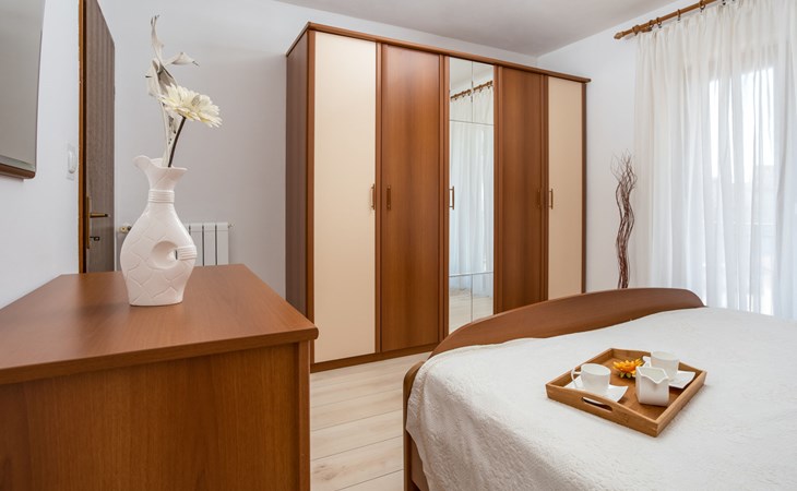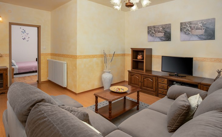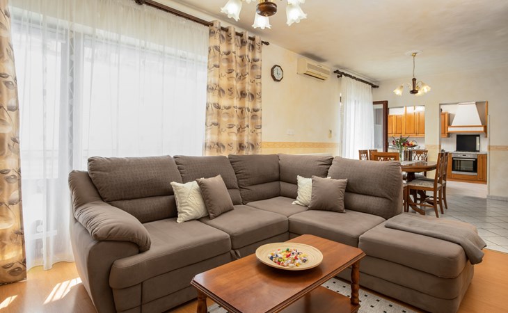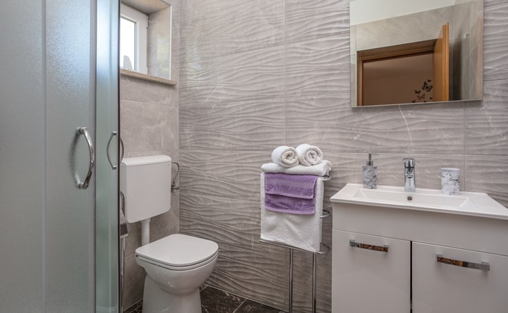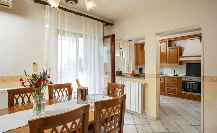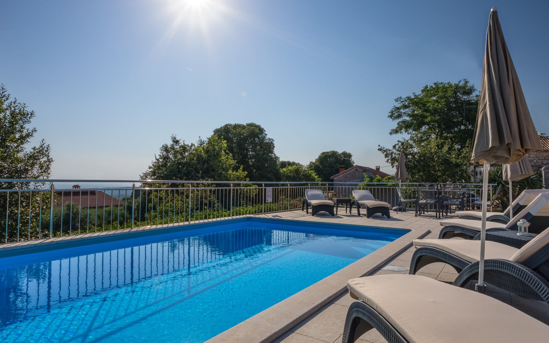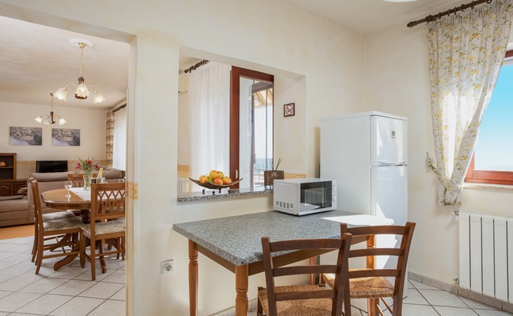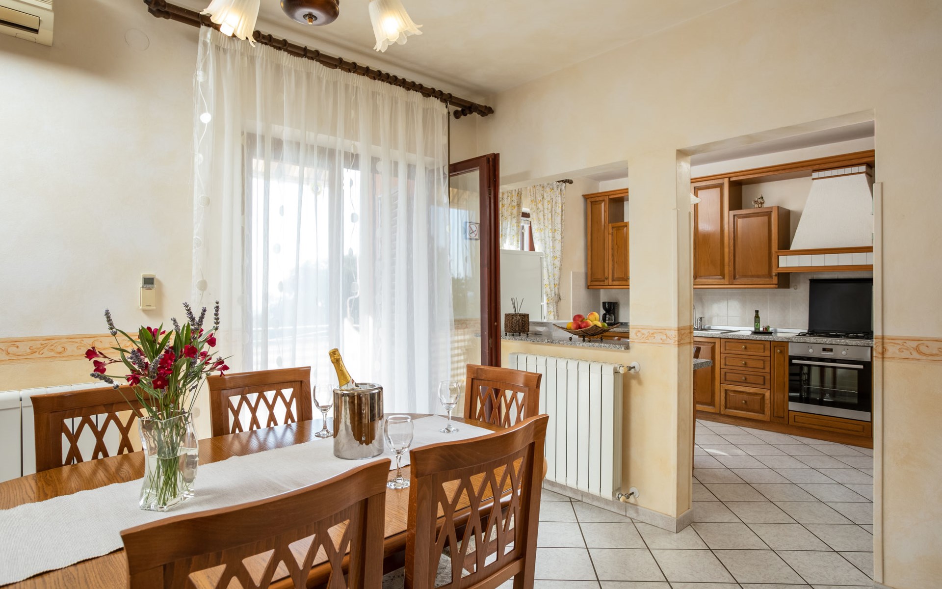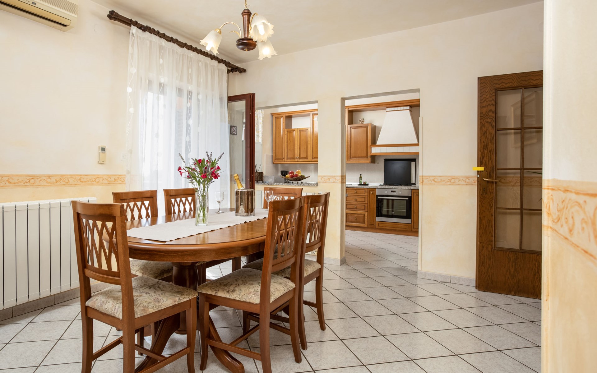 Kaštelir 11 km from Poreč: Single-family house "Legović". 1 km from the centre of Kaštelir, in a quiet, sunny position, 8 km from the sea. Private: property 2'000 m2 (fenced), garden with lawn and wildlife garden, swimming pool angular (8 x 4 m, depth 140 cm, seasonal availability: 01.May. - 05.Oct.) with internal staircase. Outdoor shower, terrace (20 m2), garden furniture, barbecue. In the house: internet access, washing machine. Parking (for 4 cars) at the house on the premises. Shop 200 m, supermarket 11 km, restaurant 200 m, bus stop 5.6 km, pebble beach 8 km, rocky beach 8 km. Riding stable 5 km, walking paths from the house 500 m, cycle lane 550 m. Nearby attractions: aquapark 15 km. Youth groups are not allowed. Ground floor is closed and not occupied.