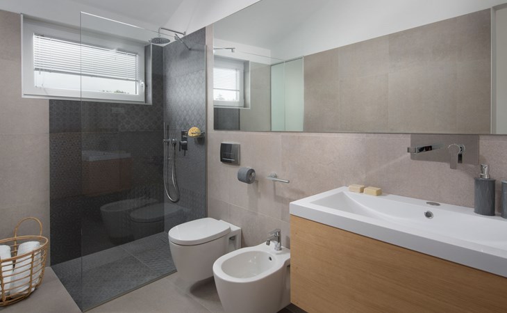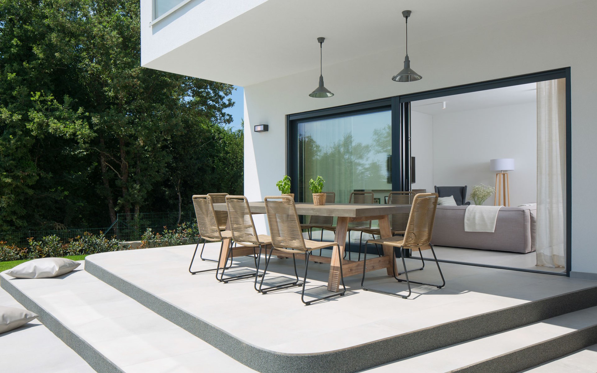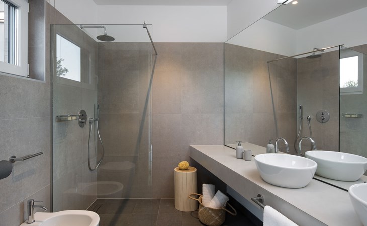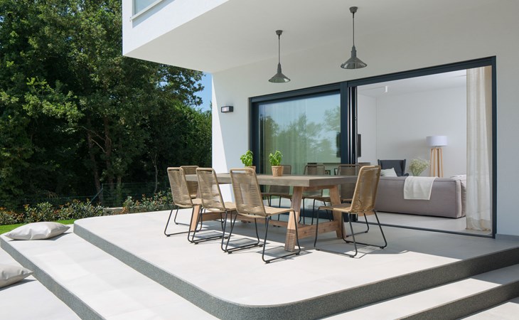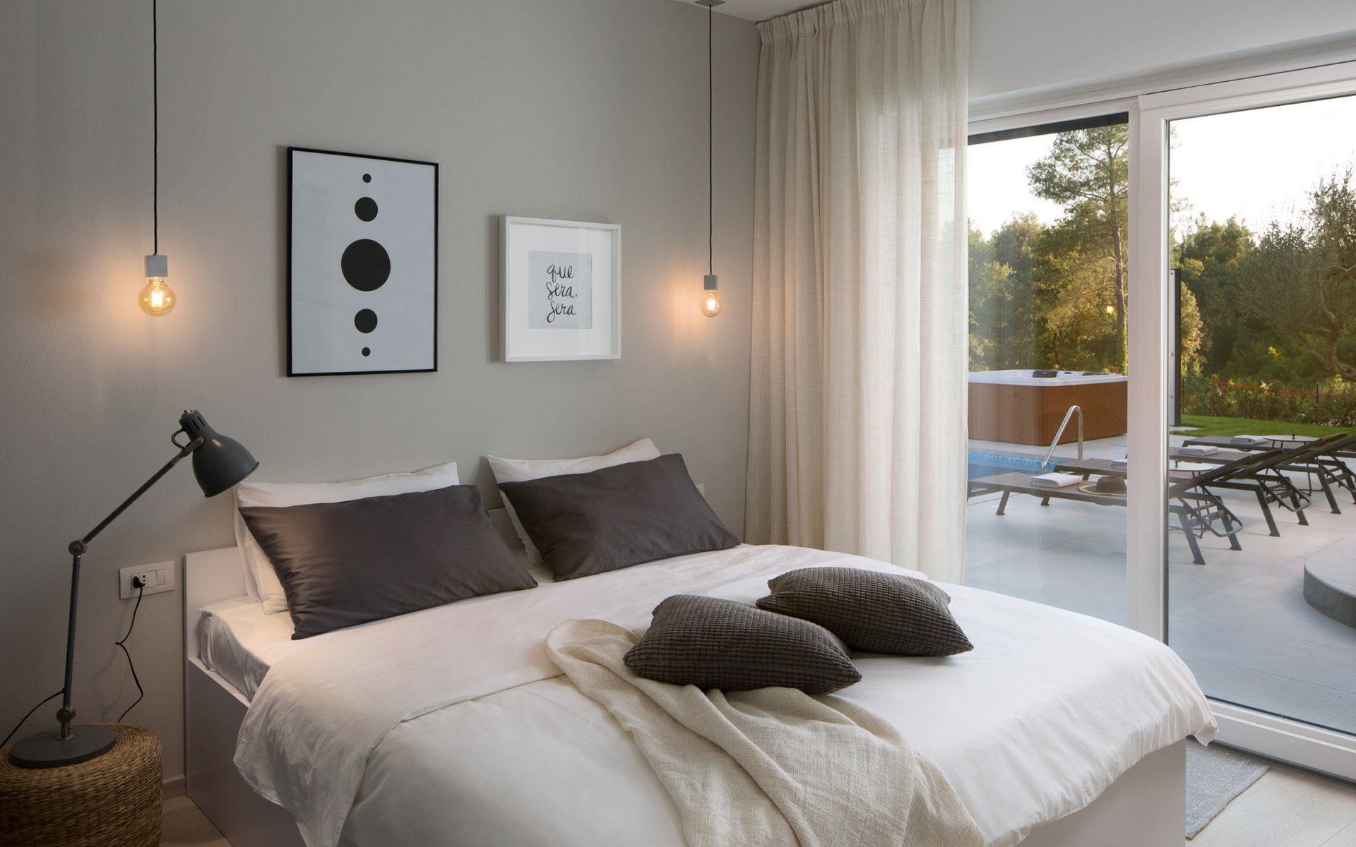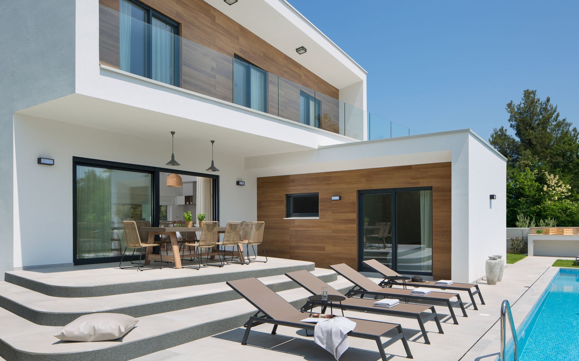Tar 7 km from Poreč: Modern villa "Santa Marina", 2 storeys. In the hamlet Vabriga 1 km from the centre of Tar, in a sunny position, 2 km from the sea, 2 km from the beach. Private: property 650 m2 (fenced), beautiful garden with lawn, swimming pool angular (14 x 3 m, depth 140 cm, seasonal availability: 01.Apr. - 30.Oct.) with internal staircase. Outdoor shower, hot tub, barbecue. In the house: internet access, washing machine. Motor access to the house (300 m via unmade road). Parking (for 2 cars) at the house on the premises. Shop 500 m, restaurant 200 m, bus stop 8 km, railway station 38 km, pebble beach 2 km, rocky beach 2 km. Walking paths from the house 100 m, cycle lane 150 m. The owner does not accept any youth groups.
