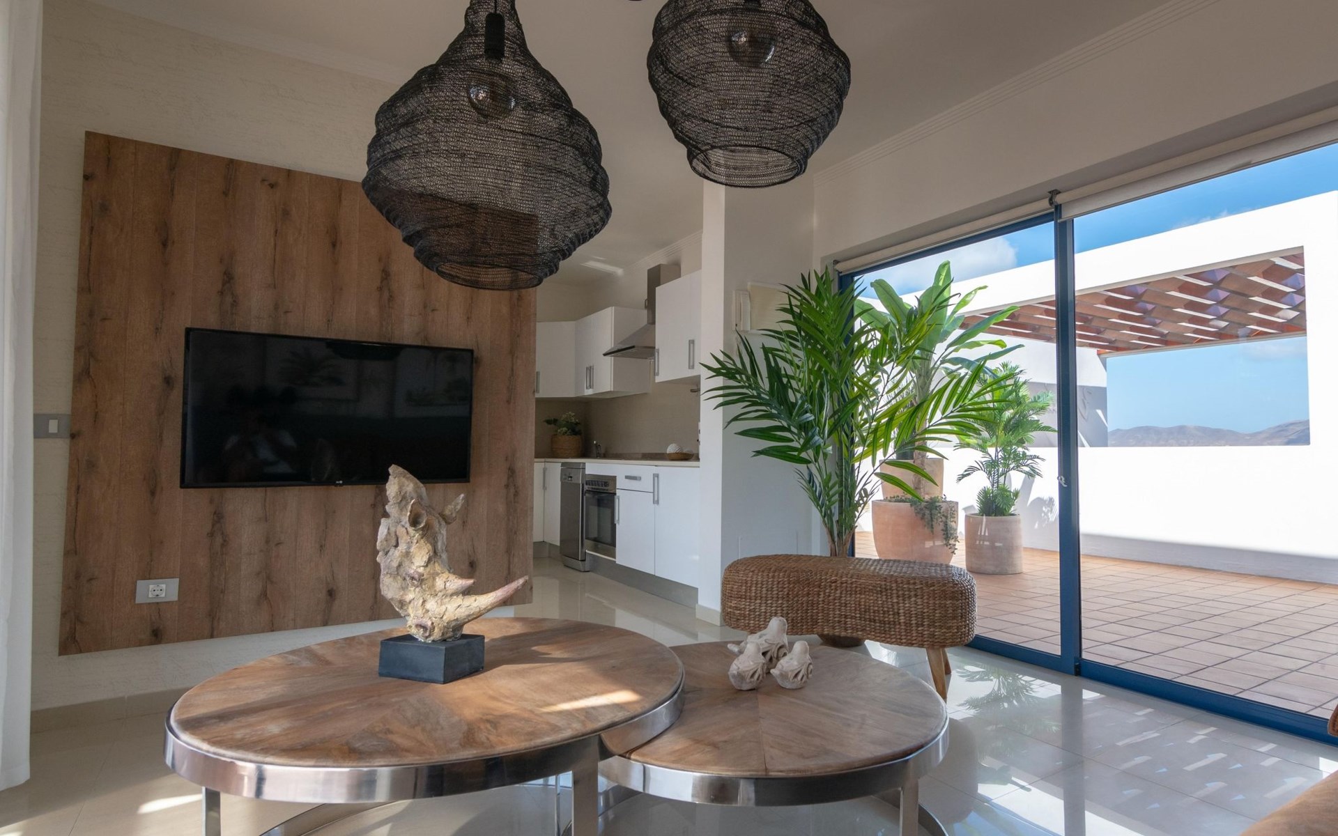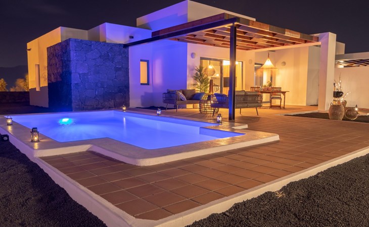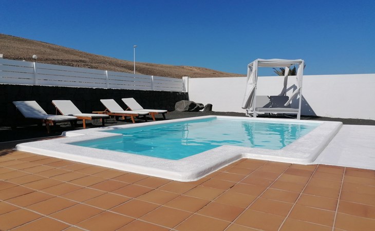 Bellavista 3 km from Playa Blanca: Beautiful terraced house "Bellavista". 2.5 km from the sea. Private: property 500 m2, swimming pool angular, heated (6 x 4 m, seasonal availability: 01.Jan. - 31.Dec.) with internal staircase. Barbecue. Stepped path (14 steps) to the house. Supermarket 500 m, restaurant 1.5 km, bus stop "El Pueblito" 550 m, sandy beach "Flaamingo" 2.5 km. Golf course (18 hole) 32 km, riding stable 1.5 km. Nearby attractions: Paque acĂșatico Agualava 1.8 km. Please note: car recommended.