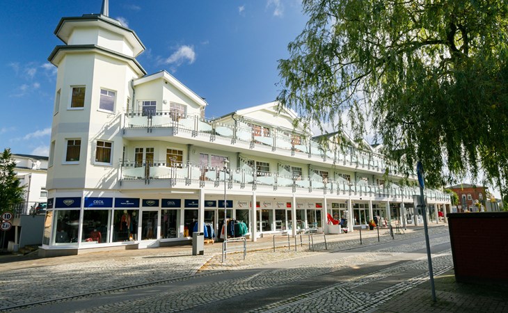 Apartment block "Luise von Preußen". In the resort Zinnowitz, 80 m from the sea, from the beach. In the house: storage room for bicycles, central heating system. Supermarket 300 m, restaurant 80 m, bakery 80 m, café, bus stop 100 m, railway station 1.1 km, thermal baths "Bernsteintherme" 550 m. Marina 2.3 km, golf course (18 hole) 25 km, surf school 550 m, tennis 400 m, minigolf. Shops on the ground floor of the building.