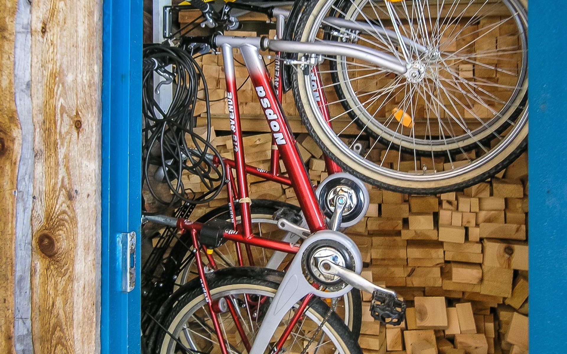 Lockable ski storage, two bicycles available.