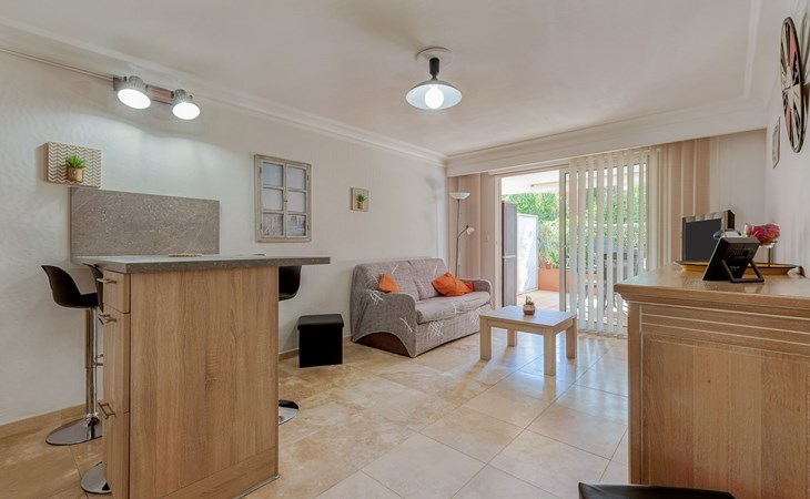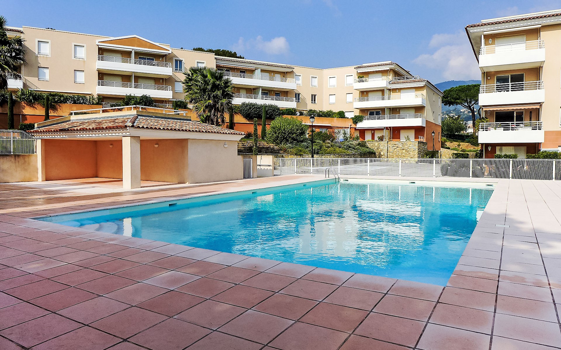 Opening date of the swimming pool from May 15th to September 30th (subject to good weather conditions). Residence "Le Domaine de la Baie", 4 storeys. In the resort 50 m from the centre of Cavalaire sur Mer, in a sunny position, 300 m from the sea, 300 m from the beach. For shared use: swimming pool angular fenced (18 x 8 m, depth 120 - 210 cm, seasonal availability: 15.May. - 30.Sep.). Poolhouse with shower. In the complex: lift. Shop, grocery 100 m, supermarket 150 m, shopping centre 10 km, restaurant, bar, bakery, café 100 m, bus stop "Halte routière" 400 m, sandy beach "Taramis" 300 m, park "Aqualand" 24 km, diving center 300 m. Marina 200 m, minigolf 12 km. Nearby attractions: Azur Park, Paint-ball 13 km, Bowling à Port-Grimaud 13 km, St-Tropez 17 km, Ste-Maxime 24 km. Hiking paths: Sentier du Dattier 6.8 km, Sentier du littoral 9400 km, Toulon 60 km. Residence with electric gates.