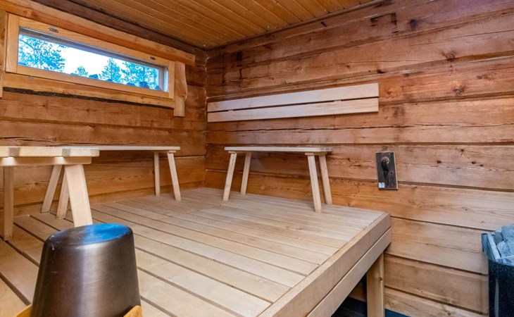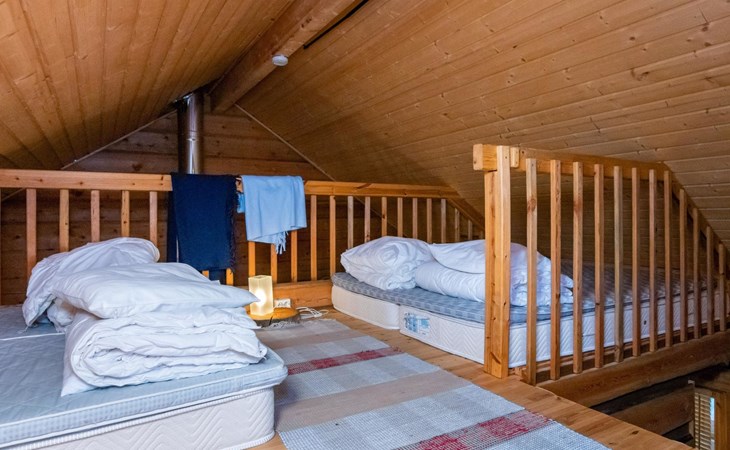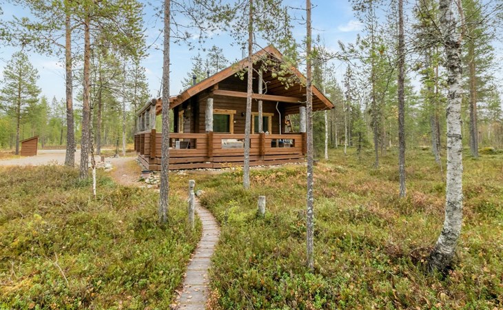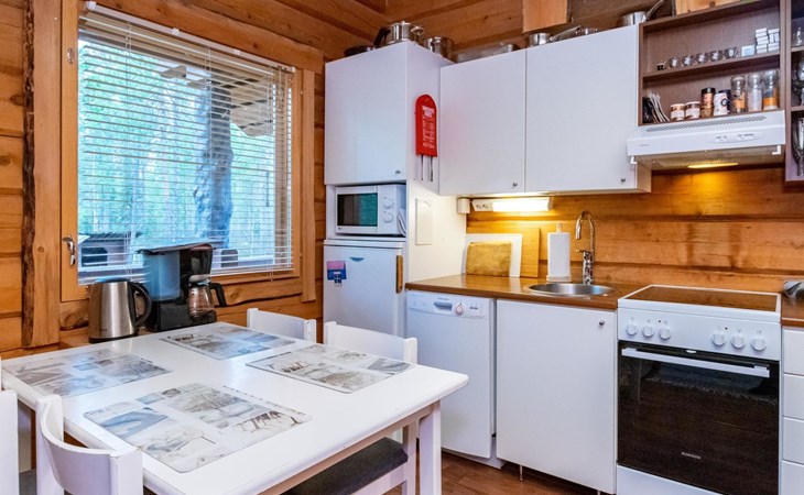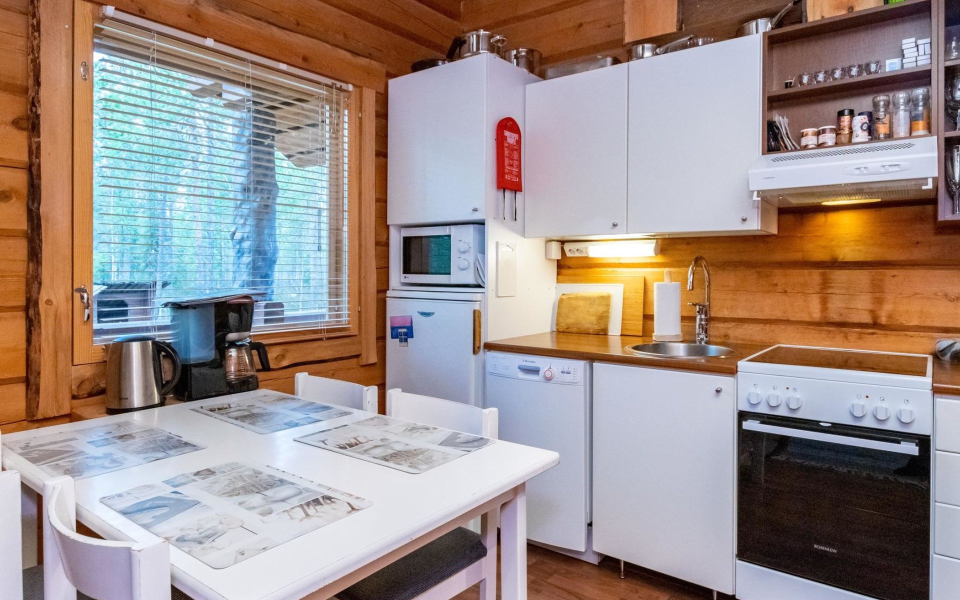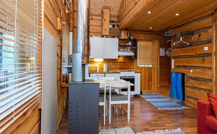 55 km north from Kemijärvi. Flatsided-log cabin built in 2008 with living room/kitchen, washroom (shower cabinet)/toilet, sauna (electric stove) and sleeping loft (steep stairs) with 4 spring mattresses.