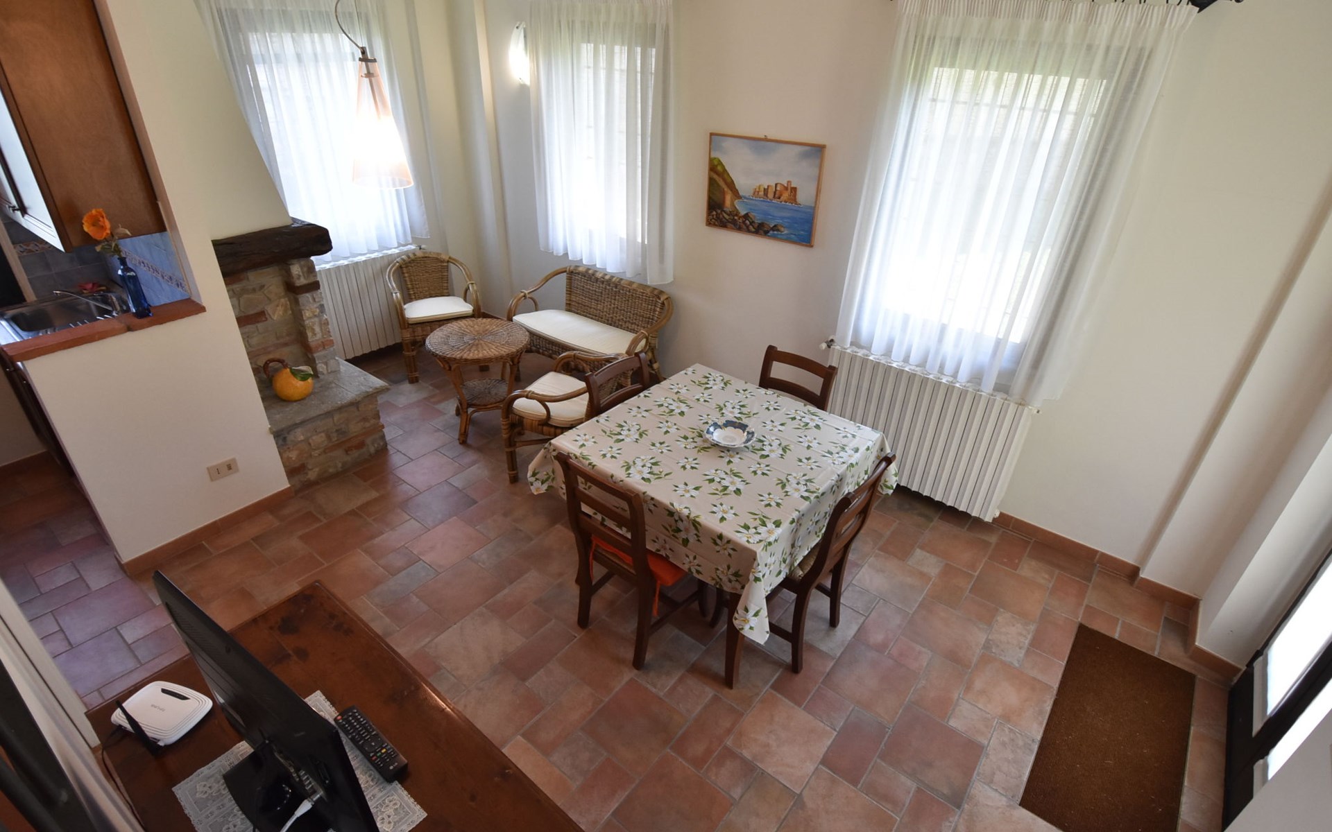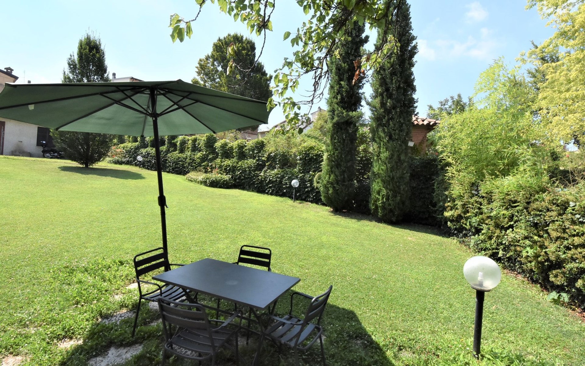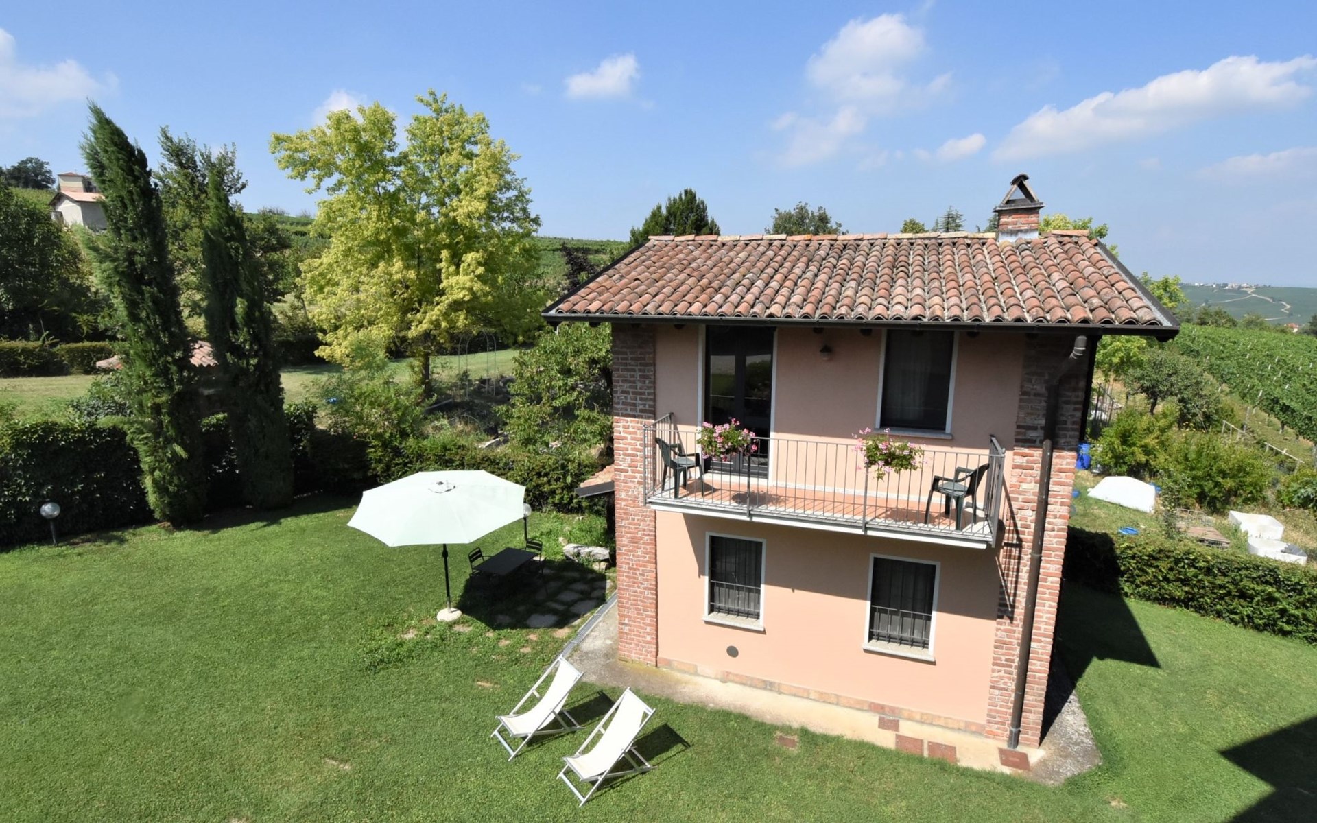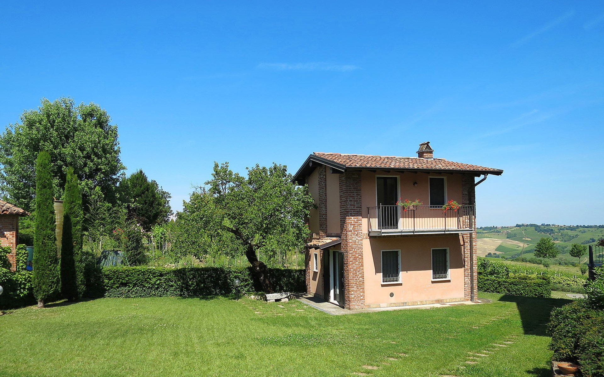Beautiful residence 300 m a.s.l., surrounded by fields and vineyards. 6 apartments in the residence. In the hamlet Cristina 2.2 km from the centre of Castana, on the outskirts, 28 km from the centre of Pavia, 84 km from the centre of Milano, on top of a hill. For shared use: property 2'300 m2 (fenced), terraced garden with lawn and trees, swimming pool (10 x 5 m, depth 130 cm, seasonal availability: 01.May. - 15.Oct.). Outdoor shower, terrace, garden furniture, barbecue, pool maintenance by the owner/gardener. In the complex: storage room for bicycles. Parking on the premises. Shop 1.5 km, supermarket 3 km. Golf course 30 km. Please note: the owner lives on the same property. Please note: possibility of e-bike rental. Half day or full day e-bike tour, with lunch in a characteristic restaurant (extra).