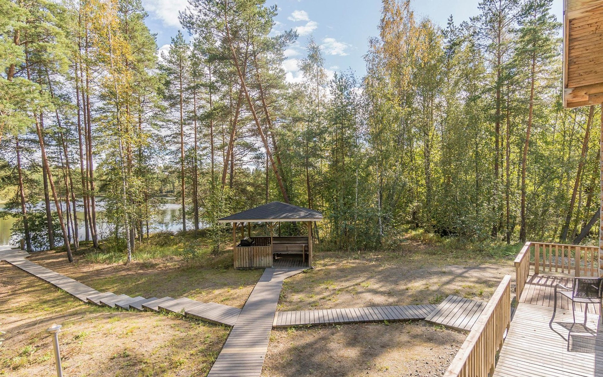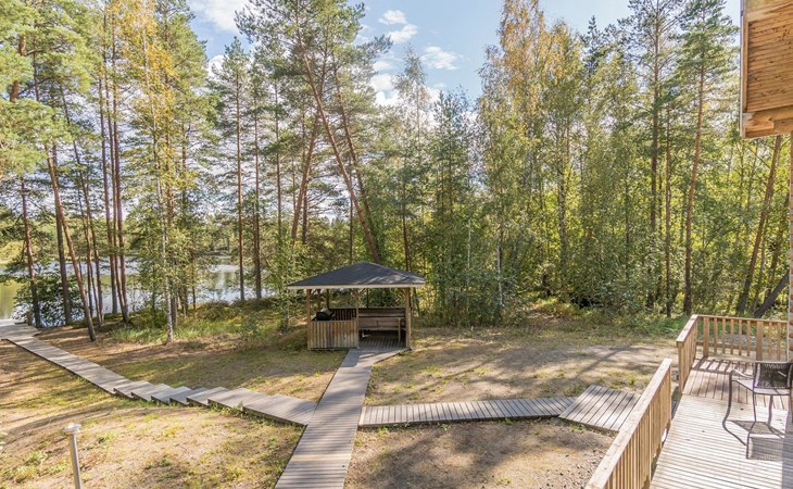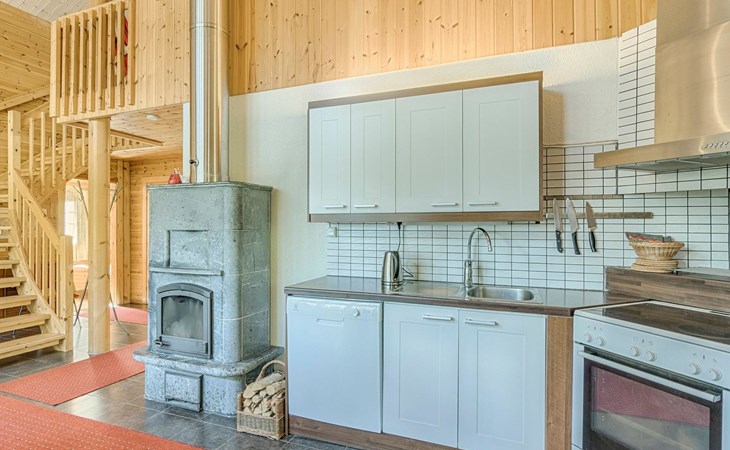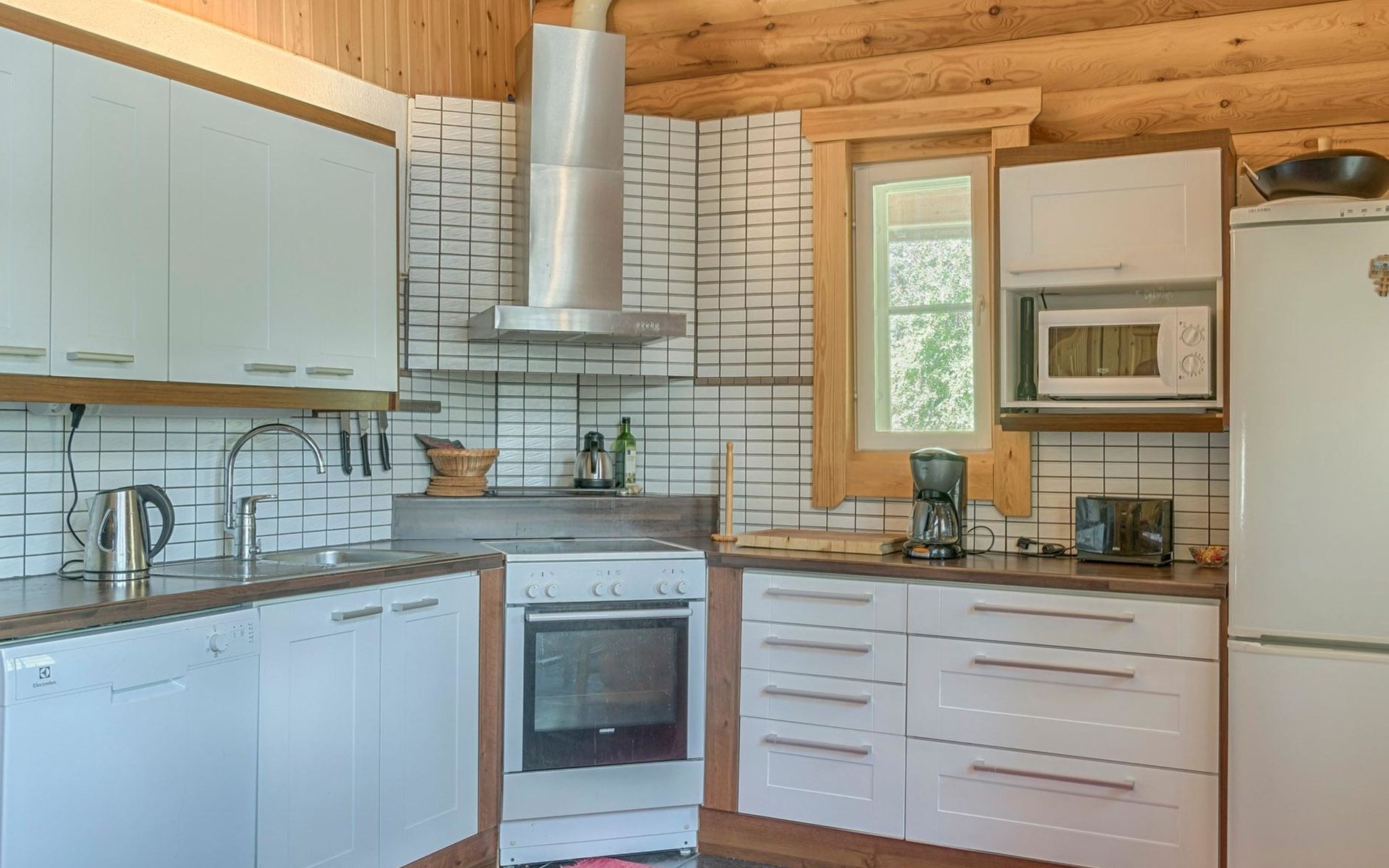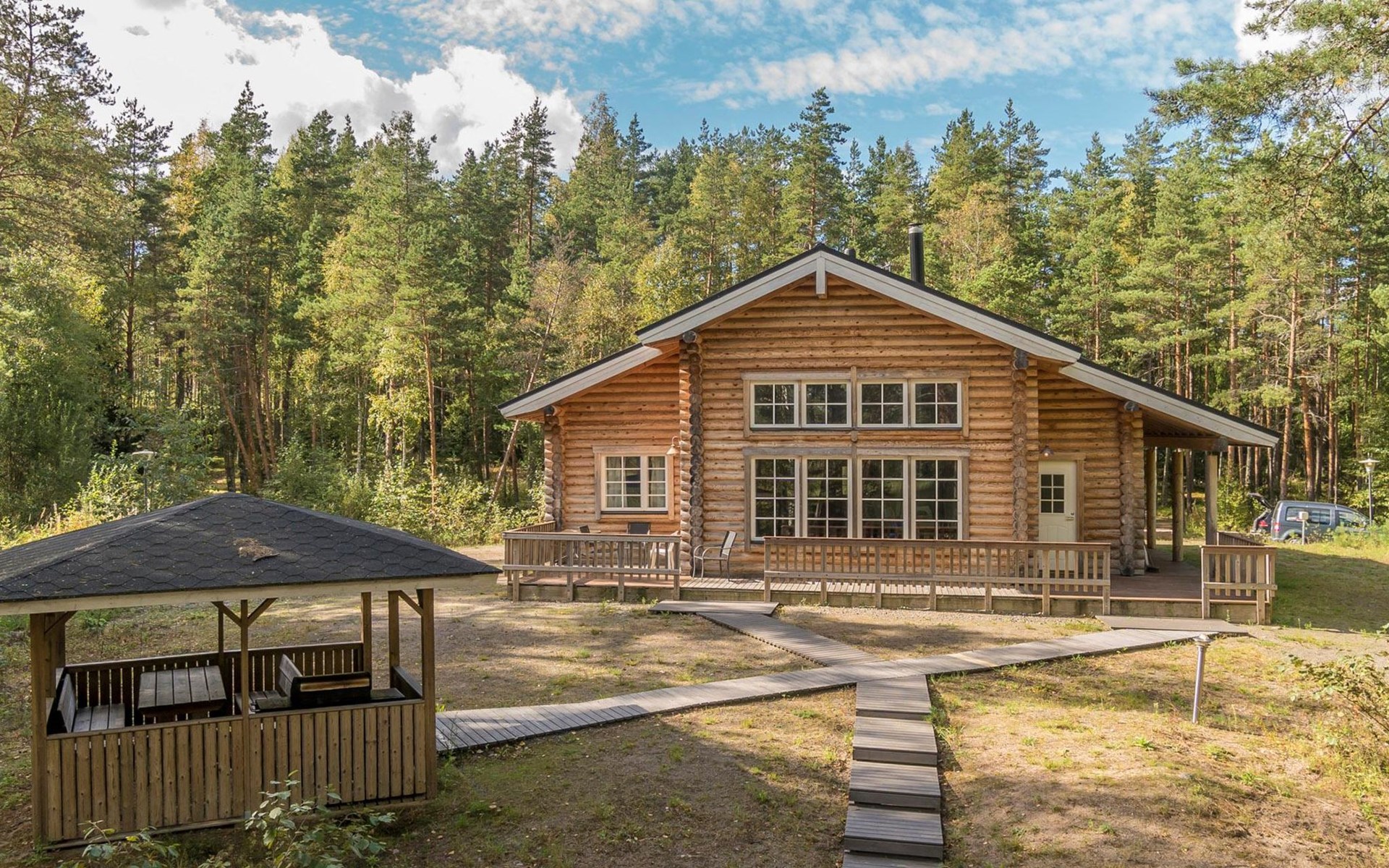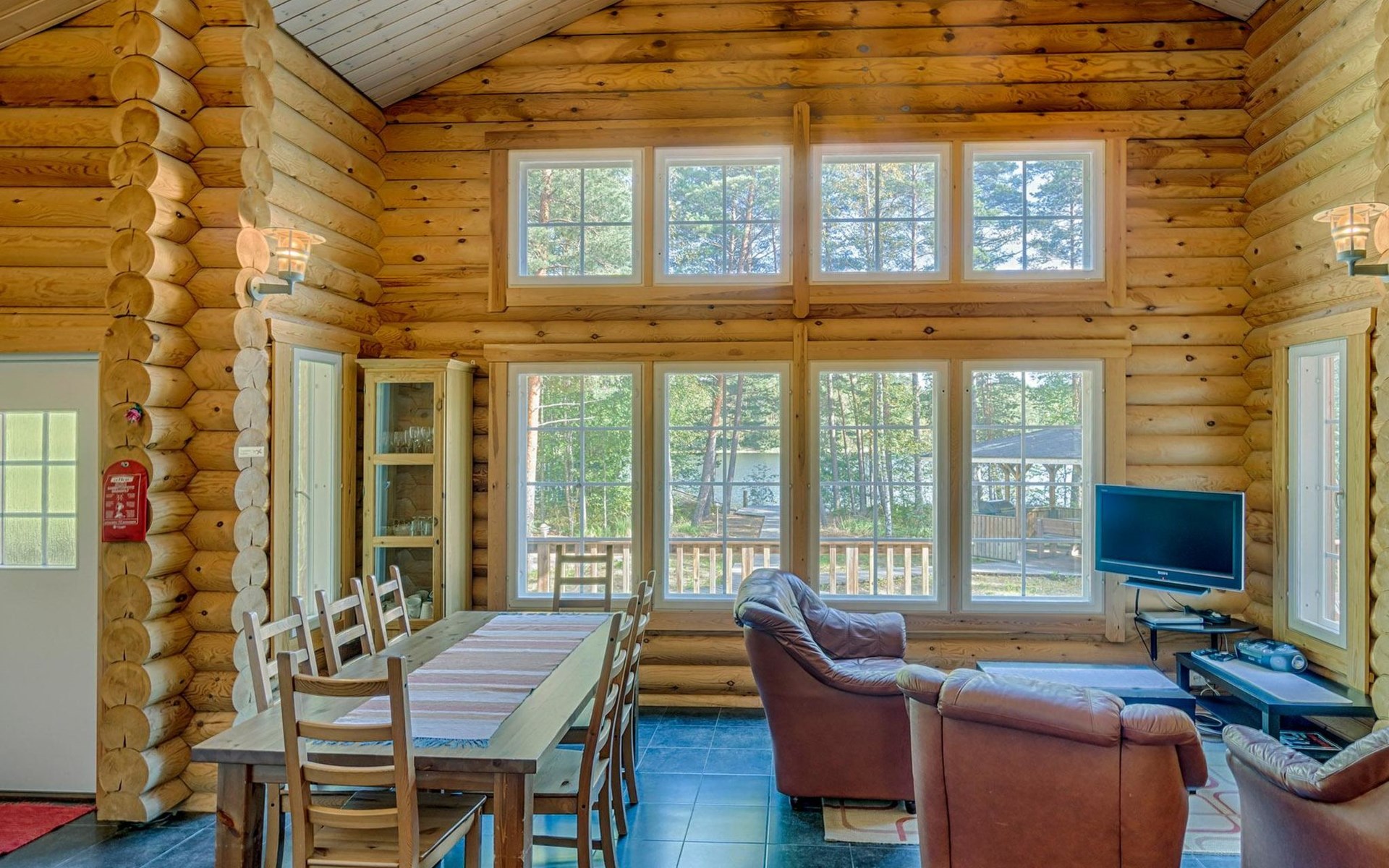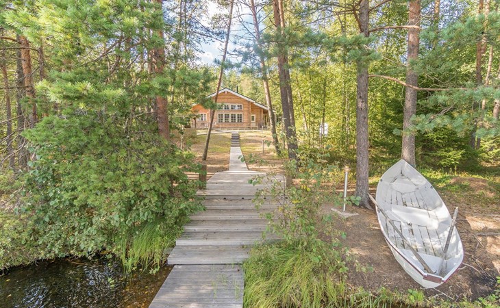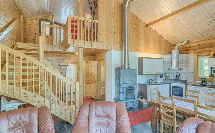 Round-log cottage 2008, living room/kitchen heat-storing fireplace. Downstairs: bedroom 2 beds, bedroom 2 beds. Upstairs: sleeping loft 2 beds, hall and open porch. Sauna in the same building, dressing room, washroom, sauna has underfloor heating and 2 showers. Toilet dowstairs and upstairs.