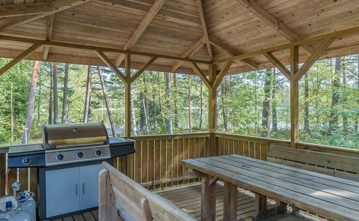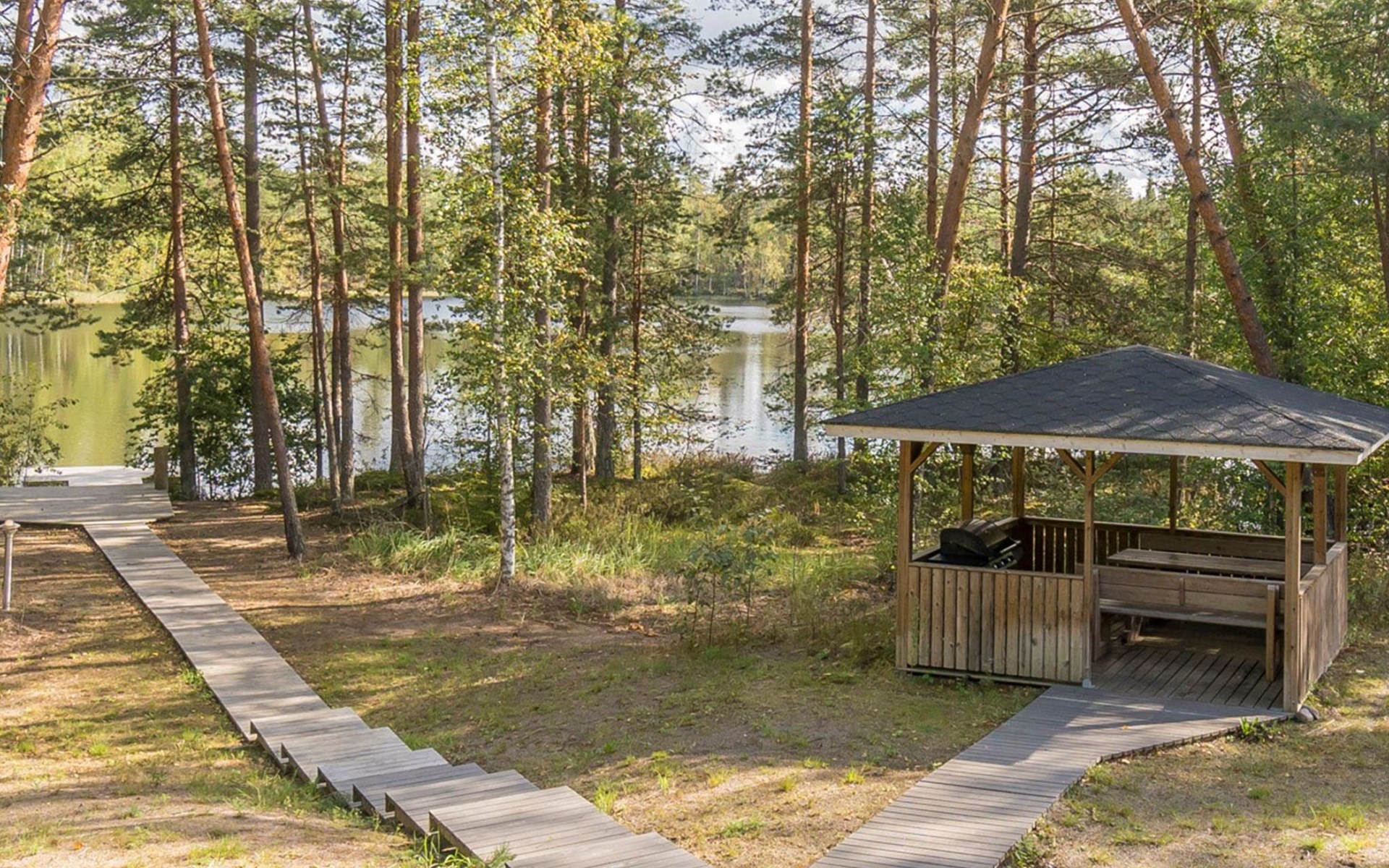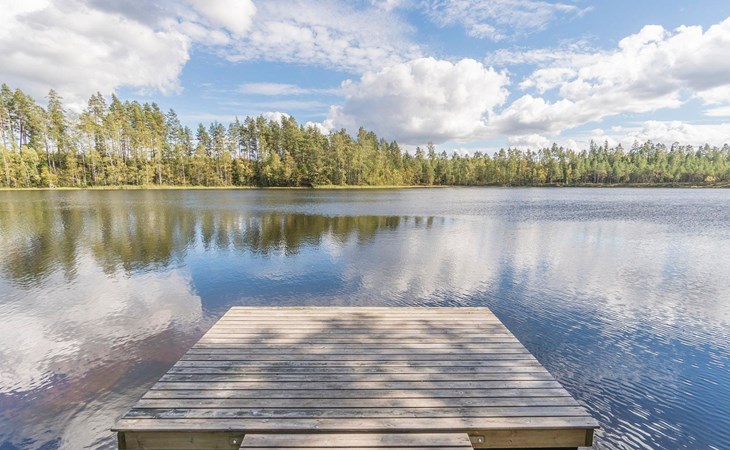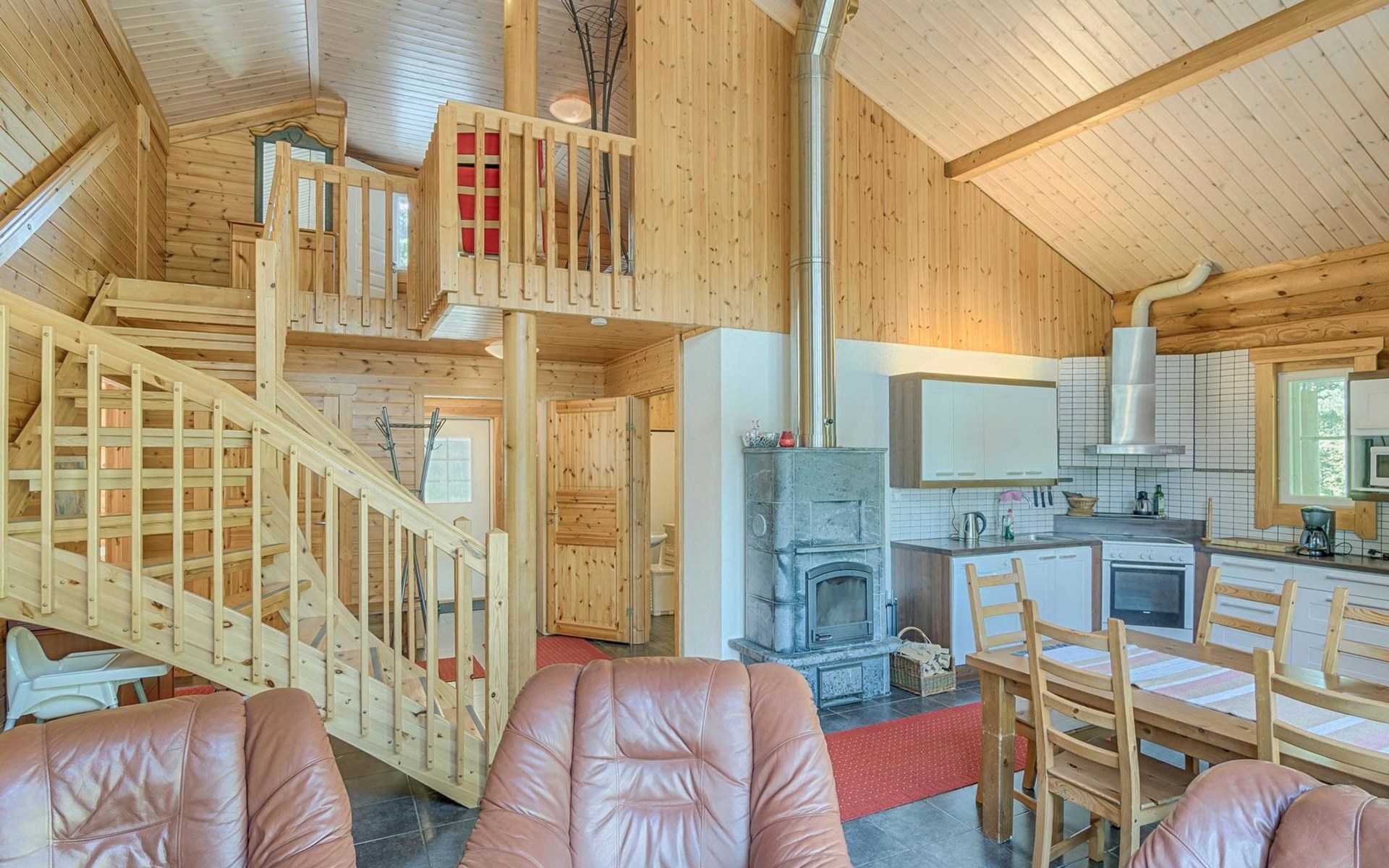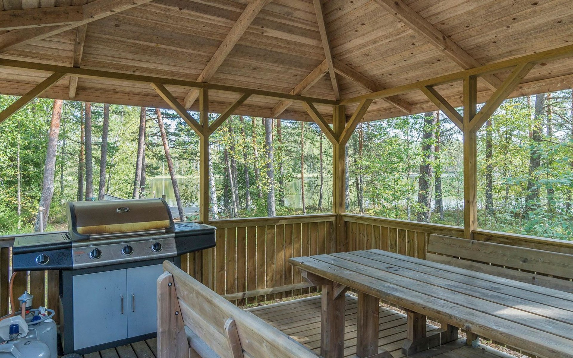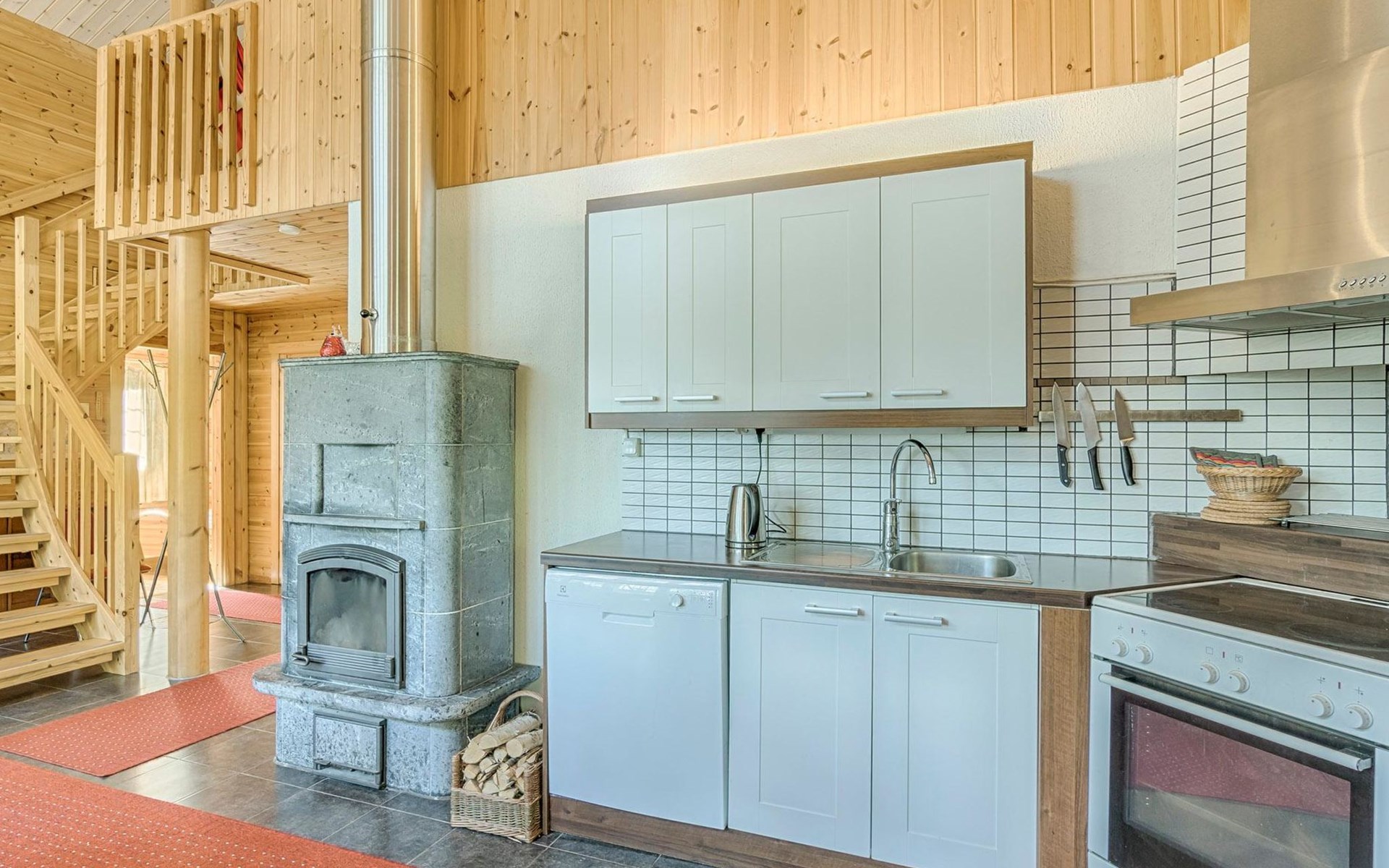 Round-log cottage 2008, living room/kitchen heat-storing fireplace. Downstairs: bedroom 2 beds, bedroom 2 beds. Upstairs: sleeping loft 2 beds, hall and open porch. Sauna in the same building, dressing room, washroom, sauna has underfloor heating and 2 showers. Toilet dowstairs and upstairs.