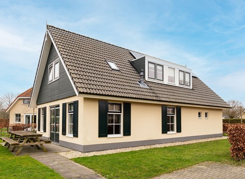 The detached bungalow Wellness 14 at Summio Vakantiepark Emslandermeer is suitable for up to 14 persons. This bungalow is located at the recreational lake and has seven bedrooms and two bathrooms, spread over two floors.