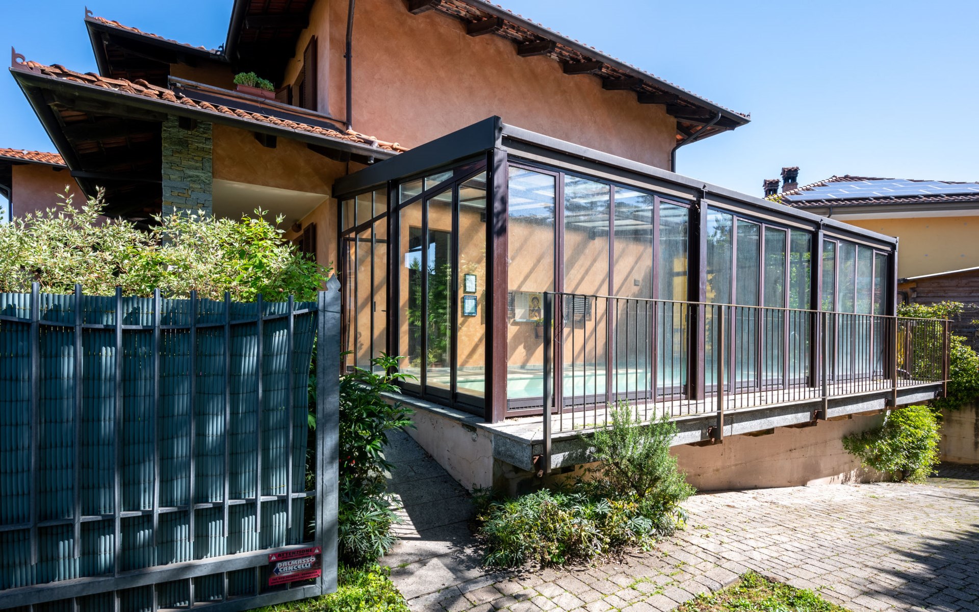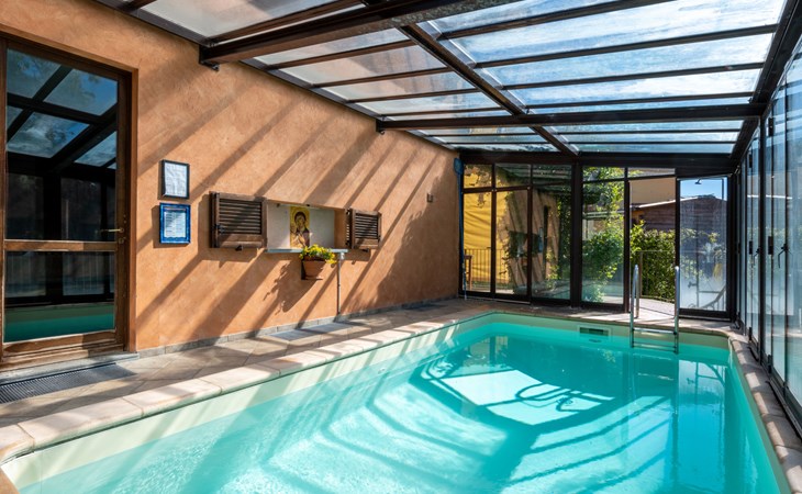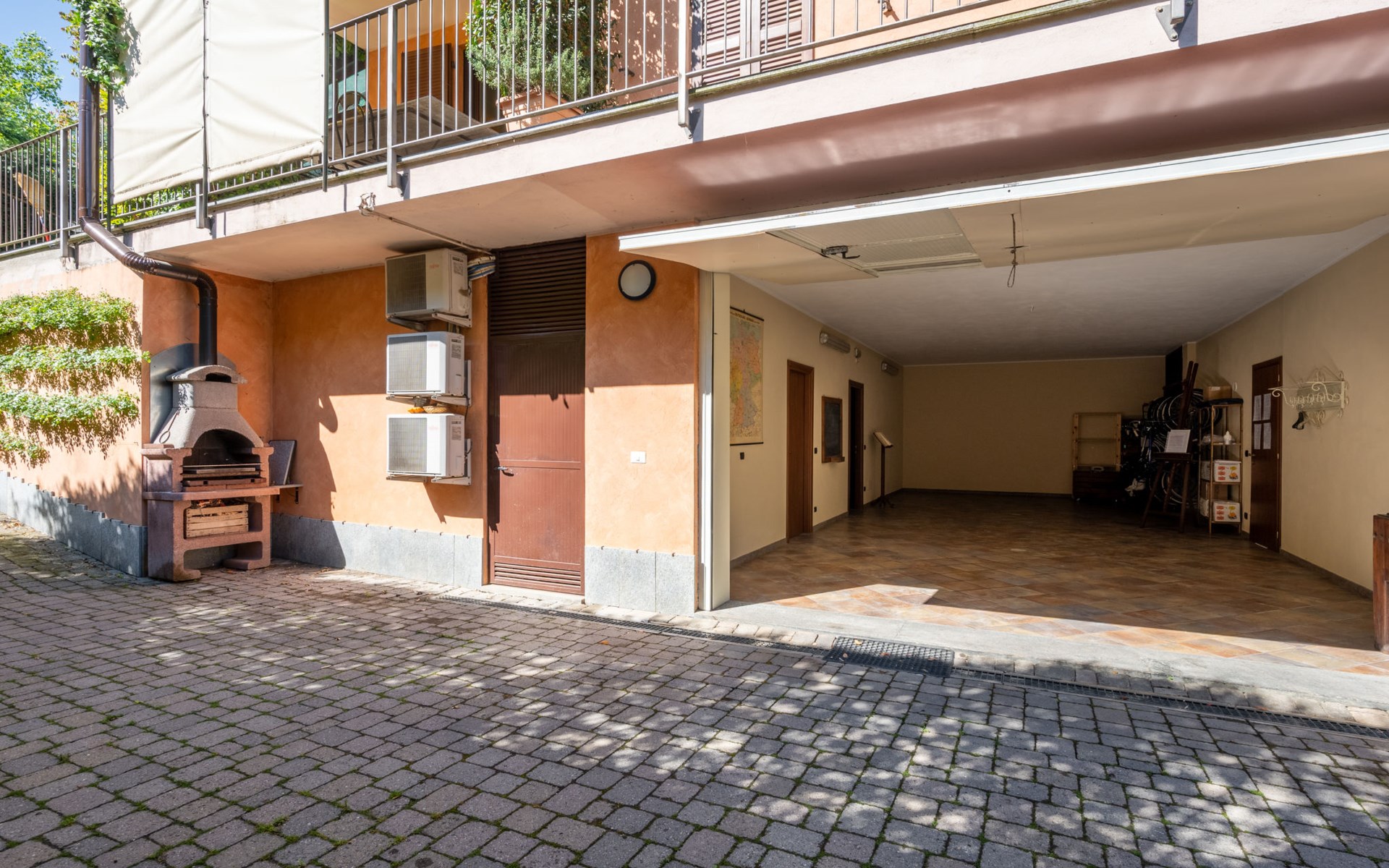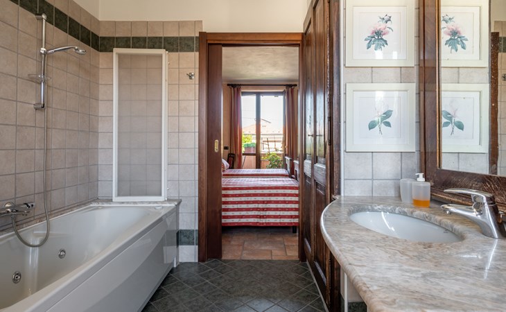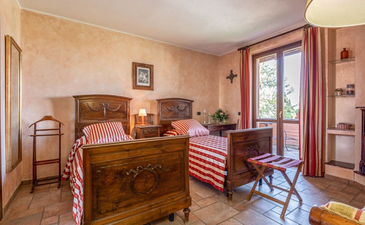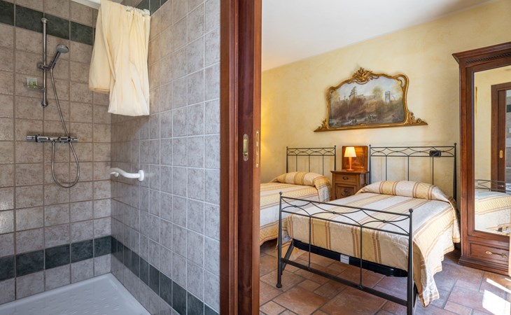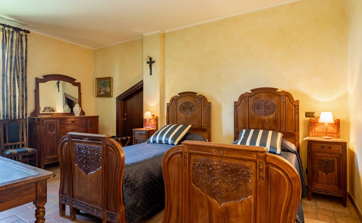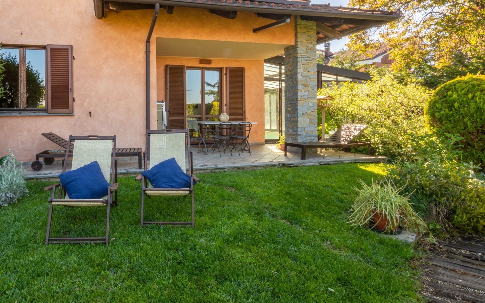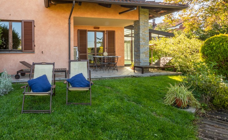 Cosy 2-family house on a vinyard "I Briganti". 600 m from the centre of Narzole, on the outskirts, 6 km from the centre of Cherasco, 30 km from the centre of Alba, 80 km from the sea. For shared use: property 1'000 m2 (fenced), well-kept garden. Private: property 200 m2 (fenced), well-kept garden with lawn, courtyard, swimming pool (6 x 3 m, depth 110 - 180 cm, seasonal availability: 22.Mar. - 05.Nov.). Outdoor shower, pool maintenance by the owner/gardener. Roofed, parking (for 3 cars). Shop 600 m, supermarket 6 km, restaurant 600 m, 10 minute walk to the centre, bus stop 300 m, railway station "Bra" 12 km. Golf course (18 hole) 8 km. Owner lives in separate semi-detached house.