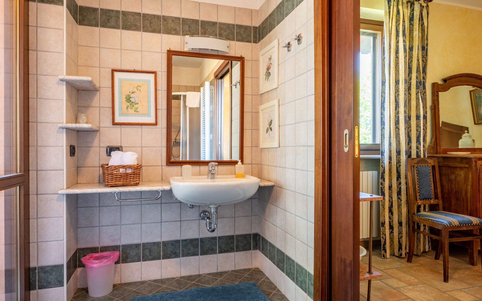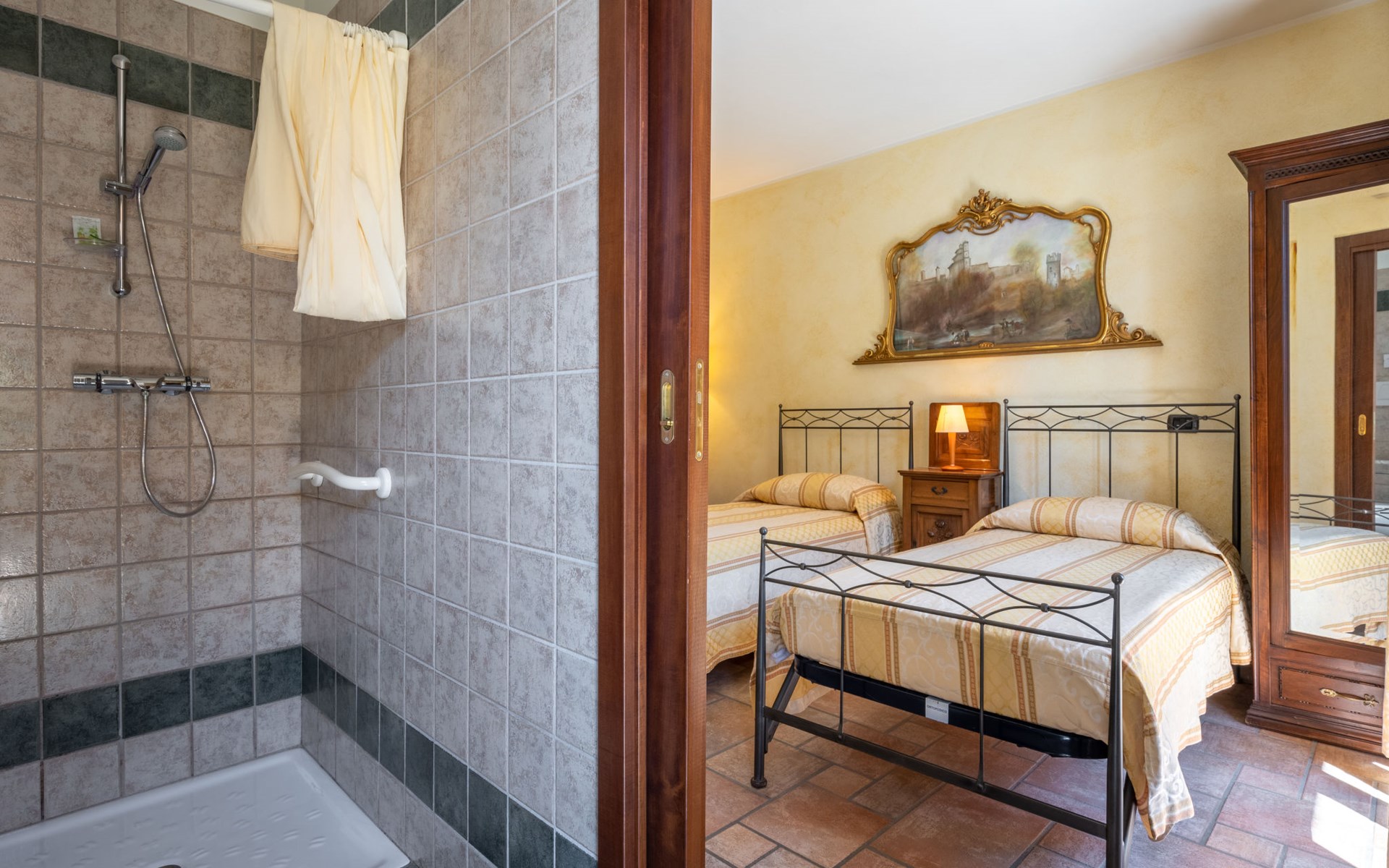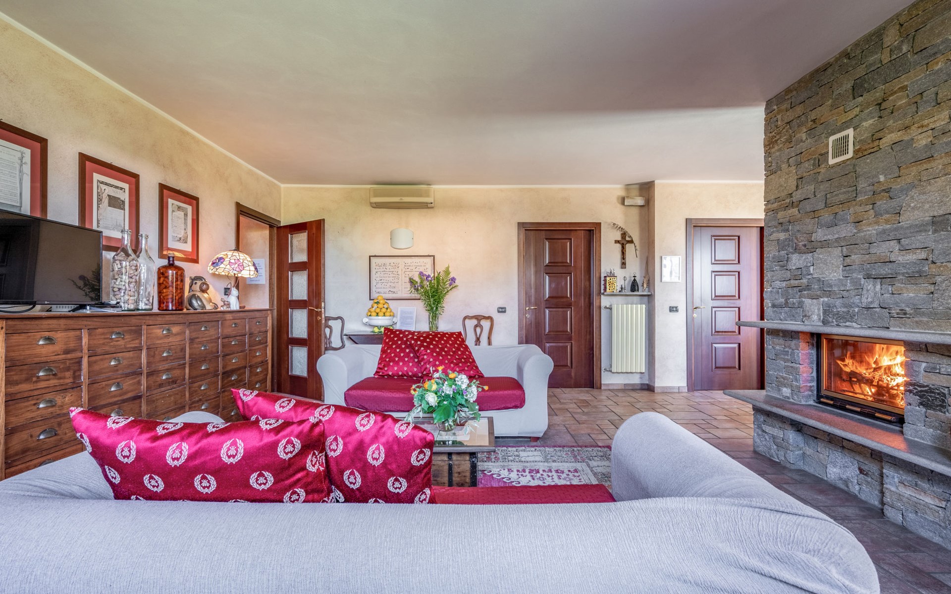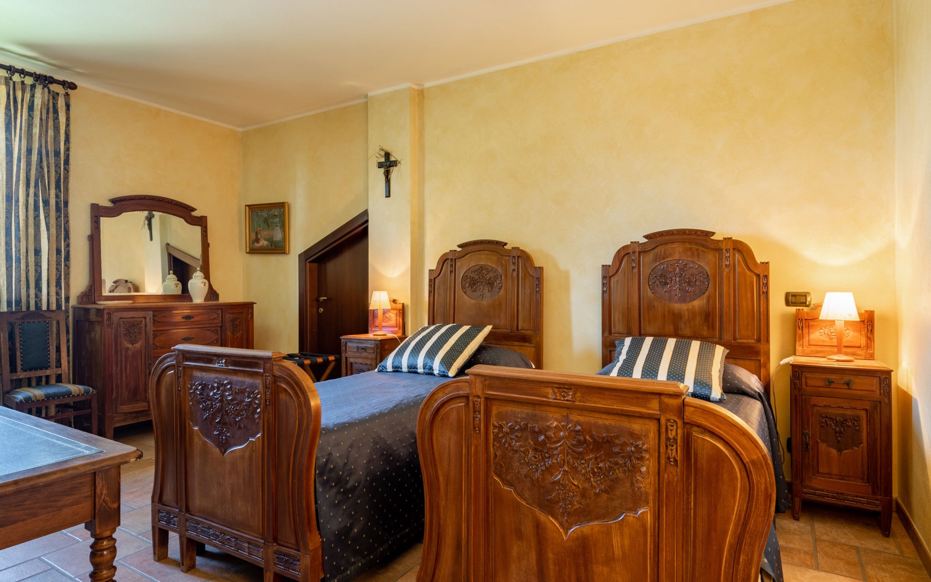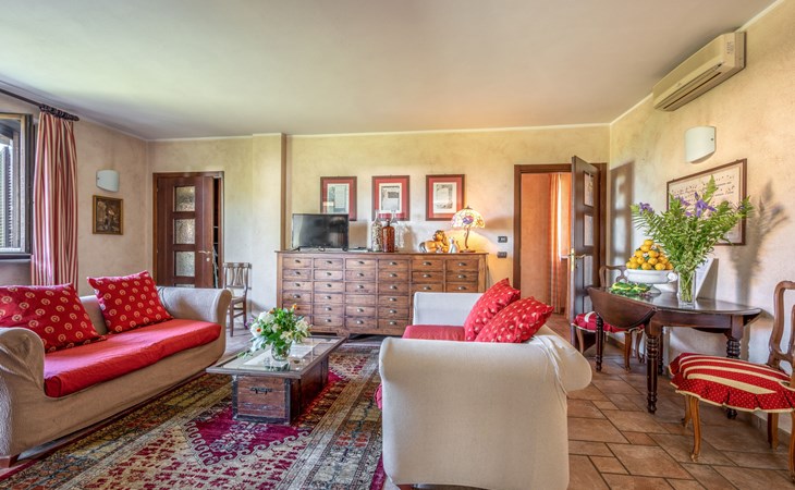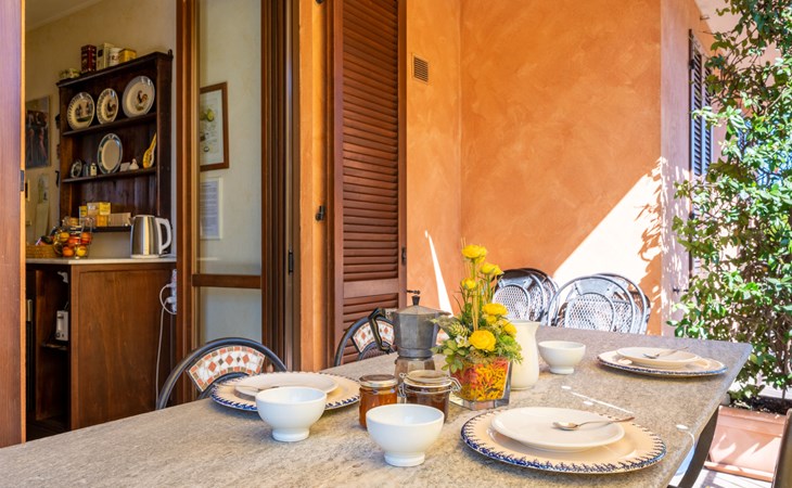 Cosy 2-family house on a vinyard "I Briganti". 600 m from the centre of Narzole, on the outskirts, 6 km from the centre of Cherasco, 30 km from the centre of Alba, 80 km from the sea. For shared use: property 1'000 m2 (fenced), well-kept garden. Private: property 200 m2 (fenced), well-kept garden with lawn, courtyard, swimming pool (6 x 3 m, depth 110 - 180 cm, seasonal availability: 22.Mar. - 05.Nov.). Outdoor shower, pool maintenance by the owner/gardener. Roofed, parking (for 3 cars). Shop 600 m, supermarket 6 km, restaurant 600 m, 10 minute walk to the centre, bus stop 300 m, railway station "Bra" 12 km. Golf course (18 hole) 8 km. Owner lives in separate semi-detached house.