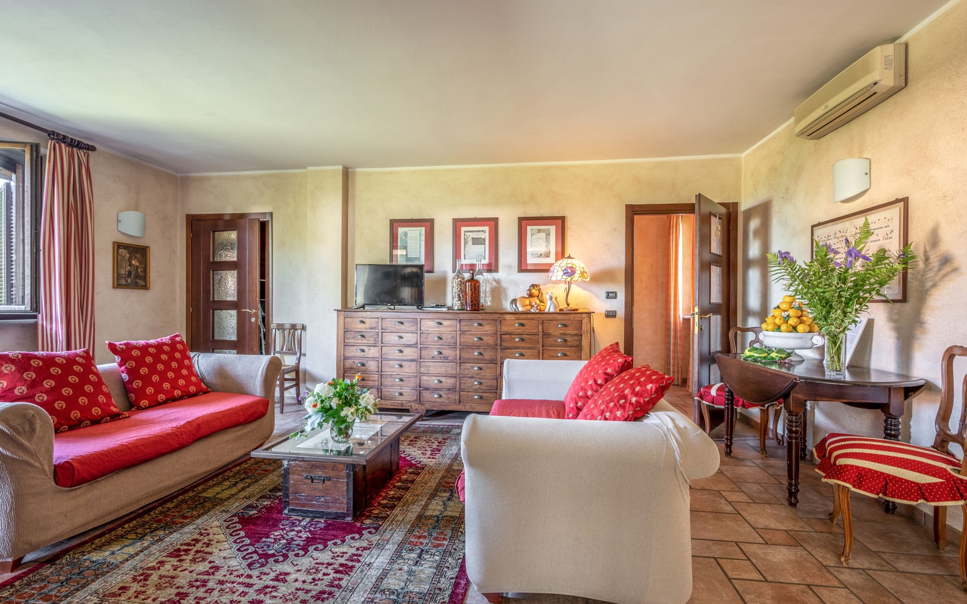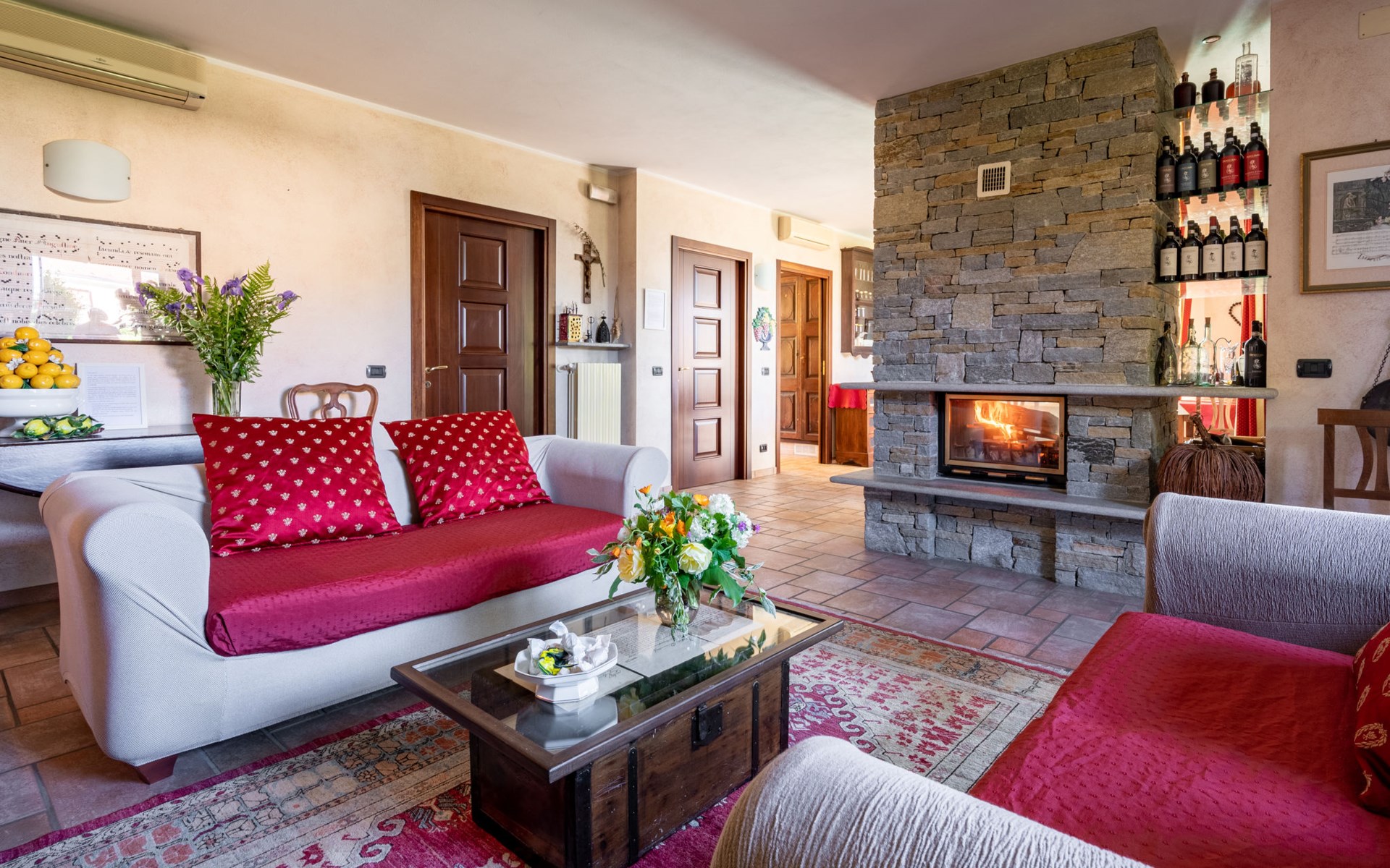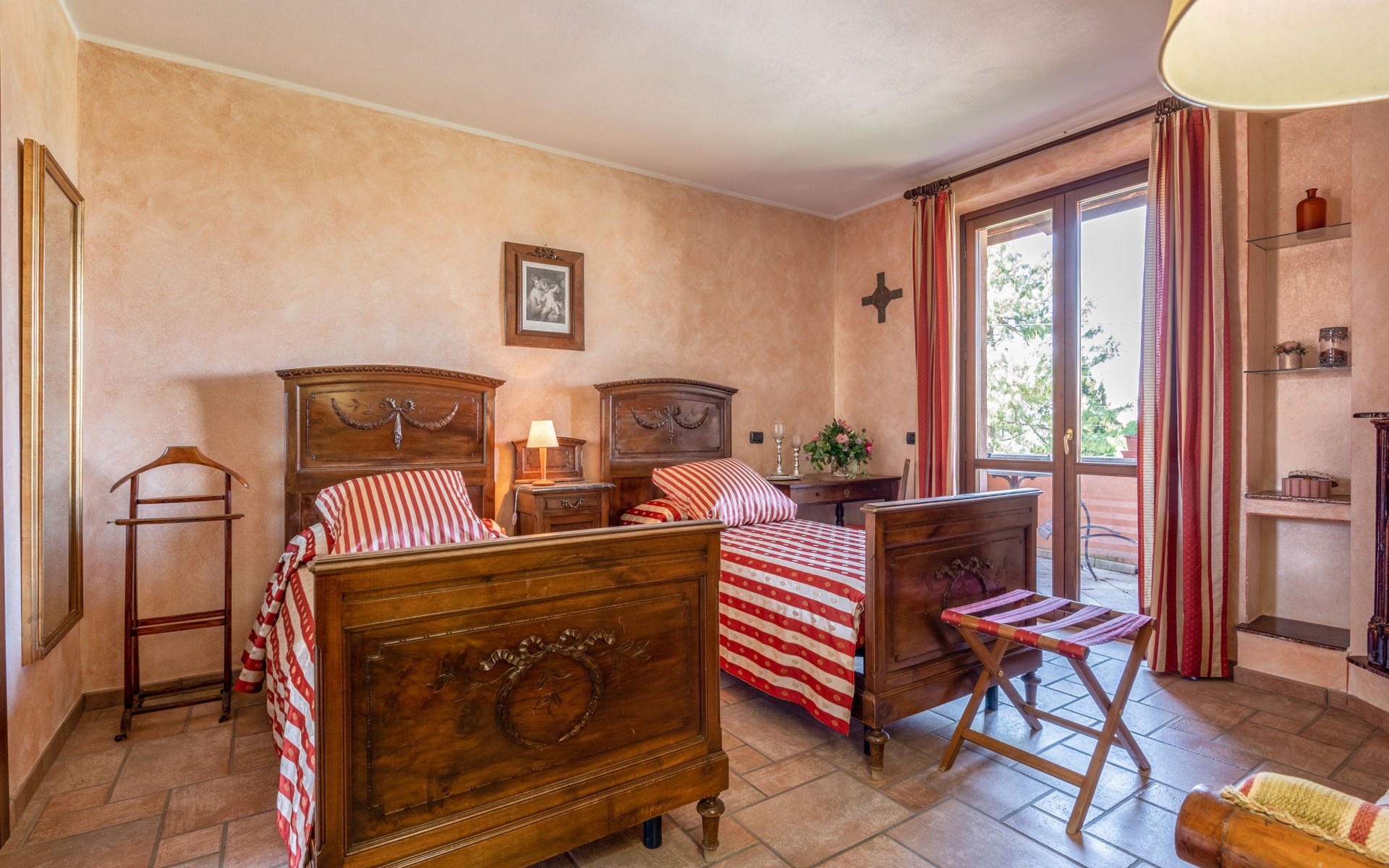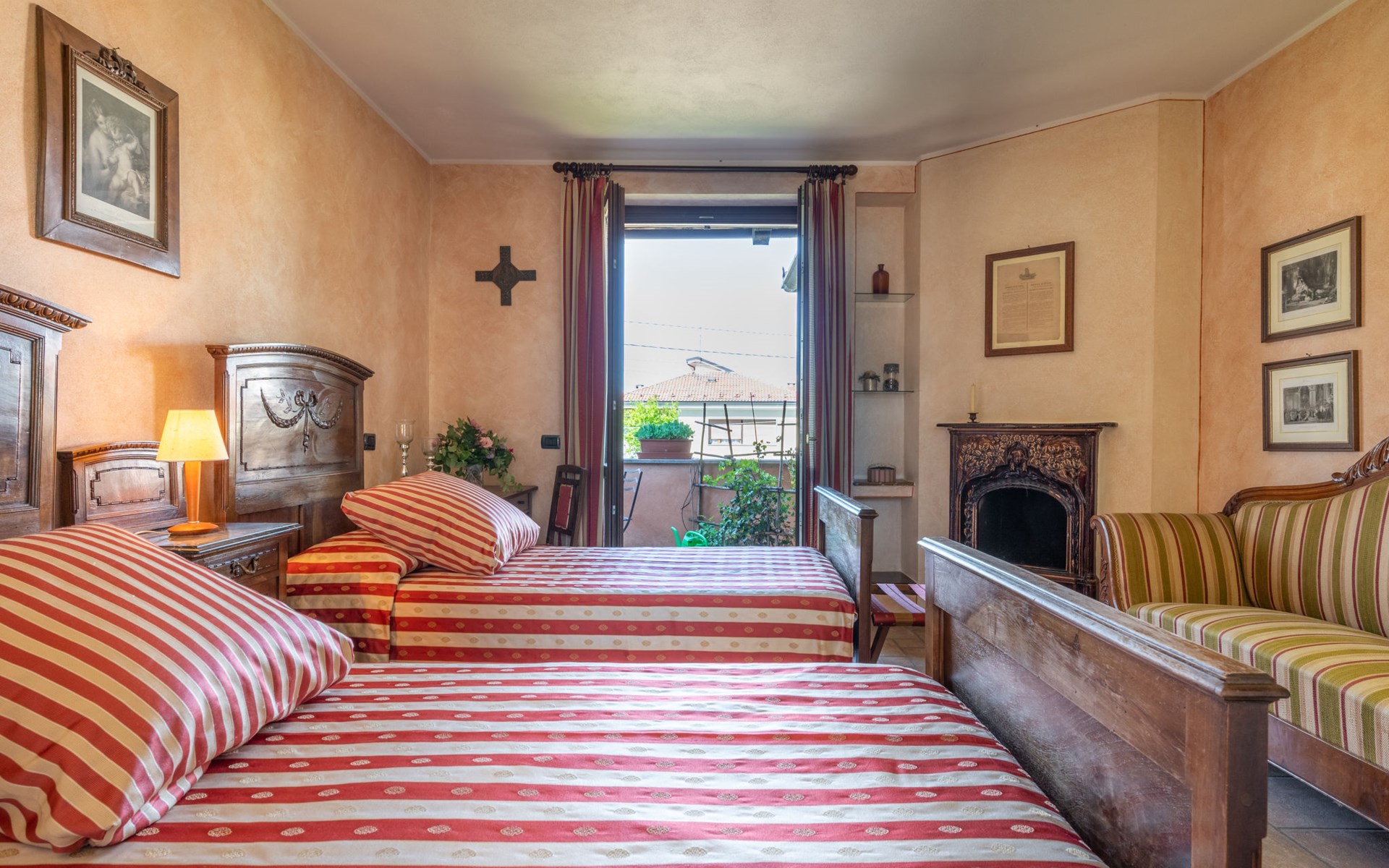 Cosy 2-family house on a vinyard "I Briganti". 600 m from the centre of Narzole, on the outskirts, 6 km from the centre of Cherasco, 30 km from the centre of Alba, 80 km from the sea. For shared use: property 1'000 m2 (fenced), well-kept garden. Private: property 200 m2 (fenced), well-kept garden with lawn, courtyard, swimming pool (6 x 3 m, depth 110 - 180 cm, seasonal availability: 22.Mar. - 05.Nov.). Outdoor shower, pool maintenance by the owner/gardener. Roofed, parking (for 3 cars). Shop 600 m, supermarket 6 km, restaurant 600 m, 10 minute walk to the centre, bus stop 300 m, railway station "Bra" 12 km. Golf course (18 hole) 8 km. Owner lives in separate semi-detached house.