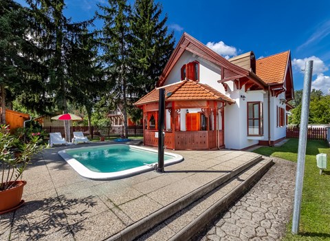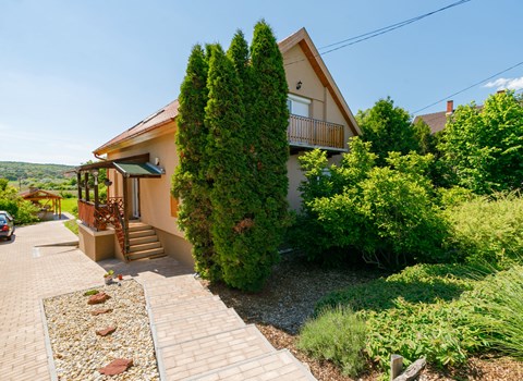 Balatonalmádi 16 km from Balatonfüred: Single-family house "Antal". 1.2 km from the centre of Balatonalmadi, 7 km from the centre of Balatonfüzfö, 17 km from the centre of Balatonfüred, on a slope, in the residential district, 2 km from the lake, 3.2 km from the beach, in a cul-de-sac. Private: property 1'400 m2 (fenced) with trees, meadow, swimming pool (4 x 3 m, depth 90 cm, seasonal availability: 15.May. - 30.Sep.). Children's playground (swing). Storeroom available. Parking (for 3 cars) on the premises. Grocery 300 m, supermarket 2.4 km, restaurant 300 m, grass beach 2 km, thermal baths "Hévíz" 88 km. Tennis 2.5 km, riding stable 650 m, sports centre 1.2 km, cycle lane 2.5 km, children's playground 1 km. Nearby attractions: Veszprém Zoo 19 km, Balatonibob Leisure Park 4 km, Balatonfüred Annagora Aquapark 18 km, Tihany 24 km, Balaton Golf Club 28 km, Folly Arboretum 53 km.