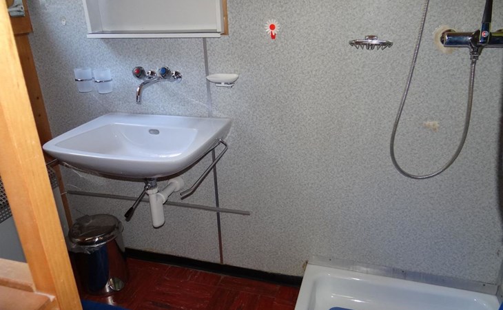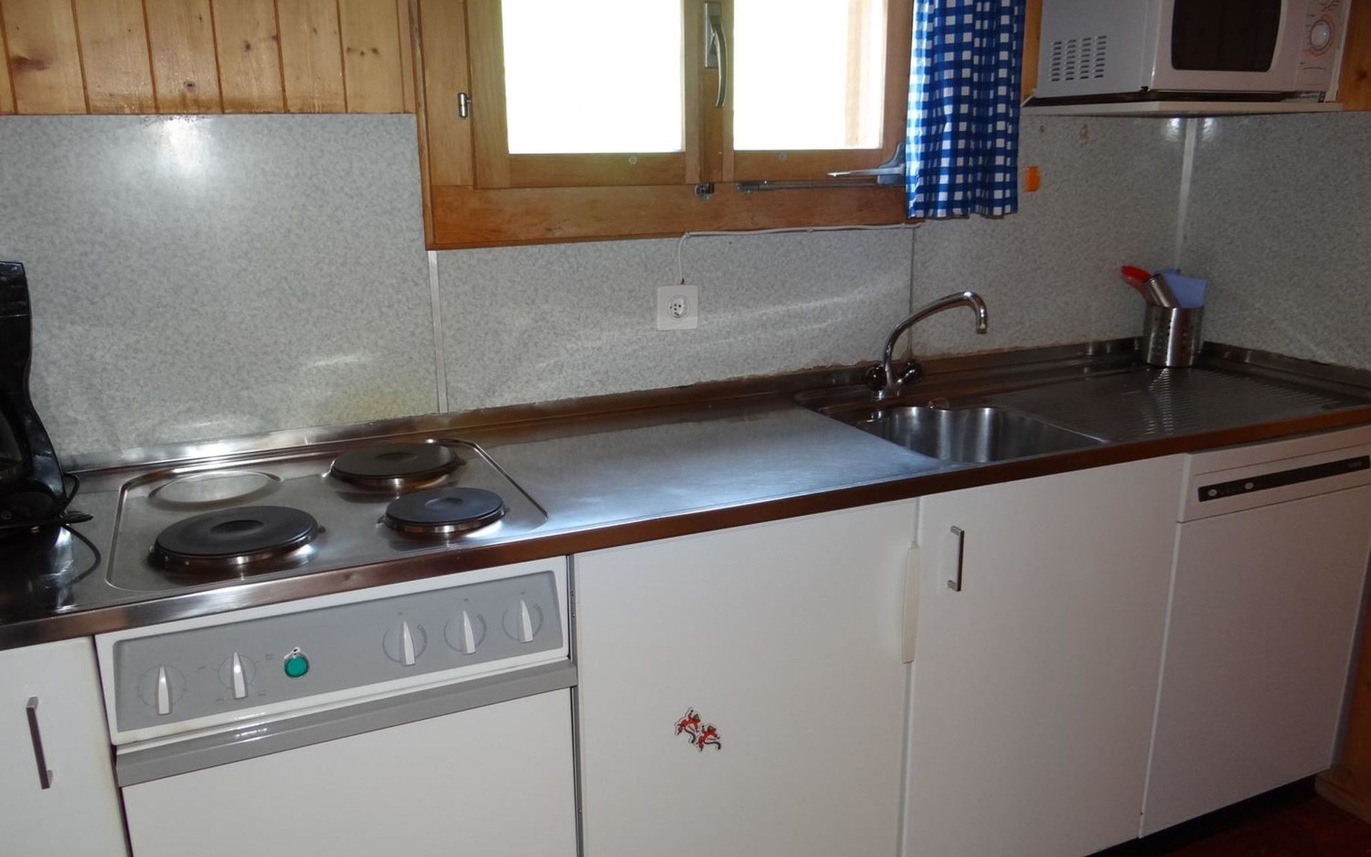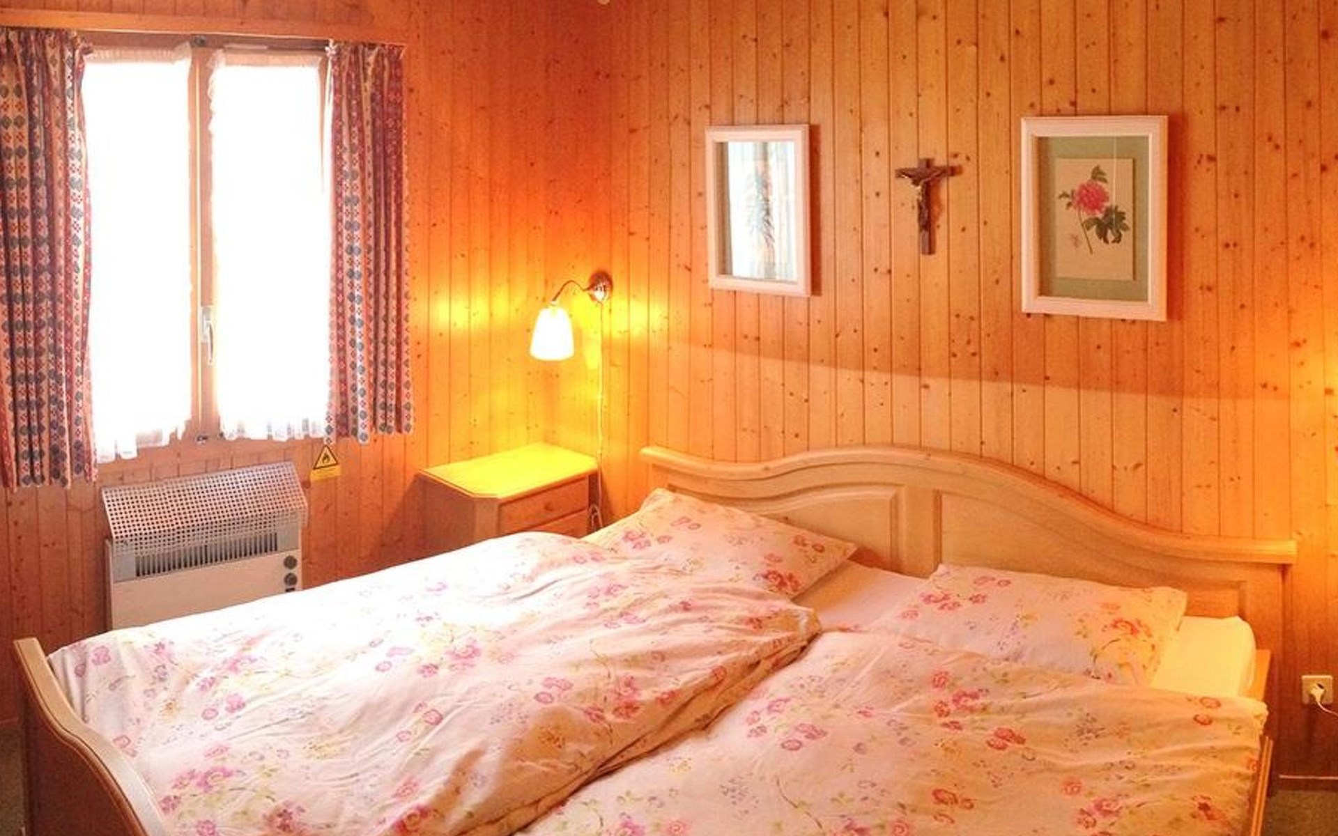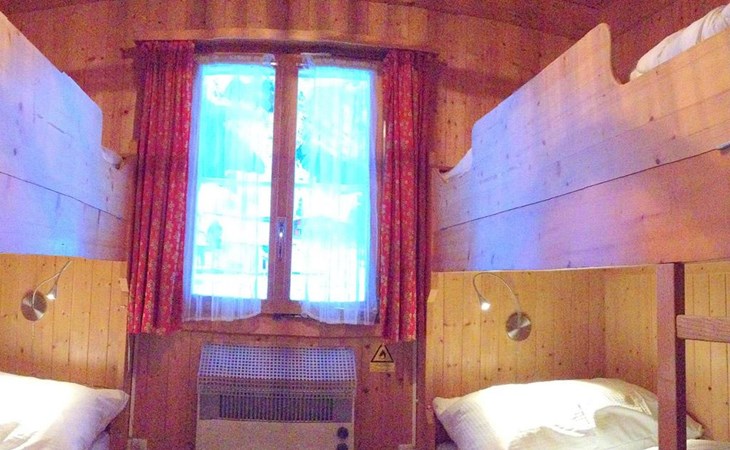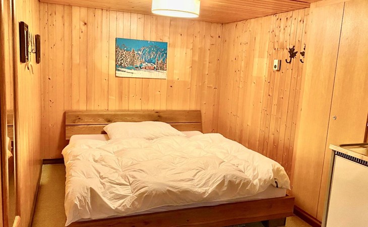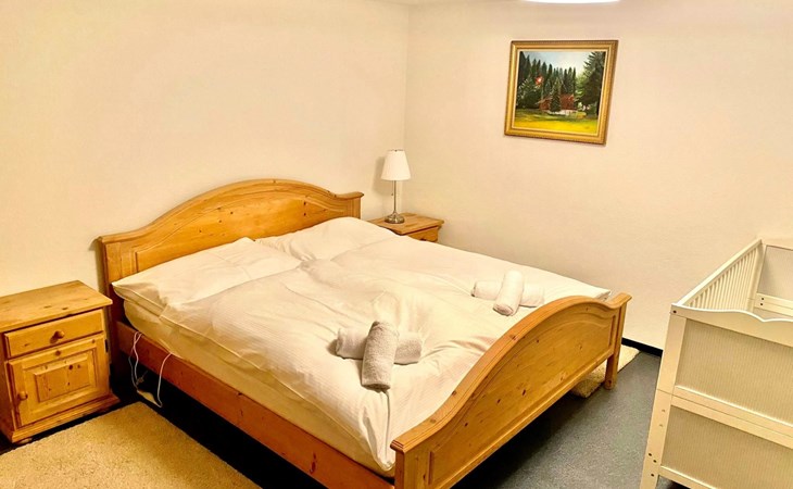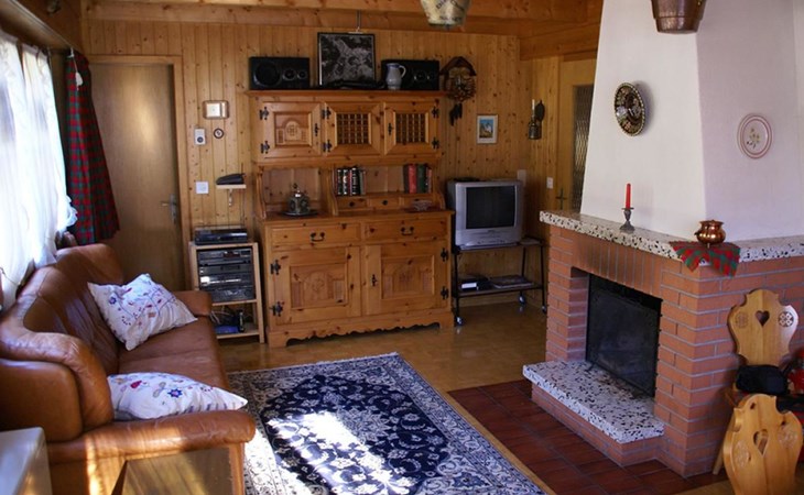 5-room-chalet with 2 seperate entrances: double bedroom (length of bed 1.90m), a sleeping room with 2 x 2 bunk beds (length of beds 1.90m), double bedroom, living room with extendable sofa.