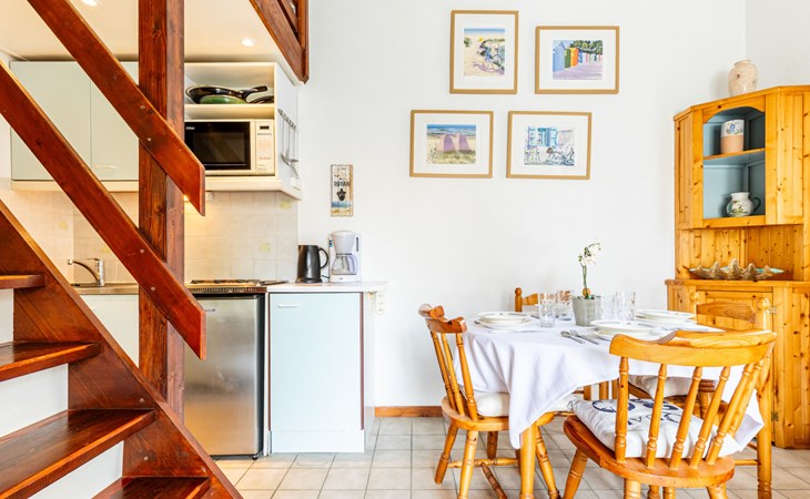 La Palmyre 15 km from Royan: Large residence "Hameau de Talaris". 120 houses in the residence. 150 apartments in the residence. On the outskirts, 650 m from the centre of La Palmyre, 1.3 km from the sea, 1.3 km from the beach. For shared use: swimming pool (15 x 7 m, depth 110 - 180 cm, seasonal availability: 15.Jun. - 15.Sep.). Parking. Shop 650 m, grocery, restaurant 800 m, bakery 650 m, café, railway station "Royan" 19 km, sandy beach "La Palmyre" 1.3 km, park "Luna Park (Juillet - Août)" 5 km, indoor swimming pool 19 km, thermal baths "Thalassothérapie Thalazur Royan" 19 km. Sports harbour 1.5 km, golf course (9 hole) 3 km, surf school 1 km, sailing school 2 km, minigolf 1.6 km, cycle lane 100 m. Nearby attractions: Zoo de La Palmyre 1.5 km, Hippodrome - La Palmyre 900 m, Fort Boyard - Fouras 60 km, Centre aquatique Iléo - Ile d'Oleron 36 km, Aéroport La Rochelle - Ilde de Ré 82 km, Aéroport Bordeaux - Merignac 127 km. Please note: the keys‘ handover takes place by the agency Interhome in La Palmyre, 1 km. Additional accommodations can be booked.