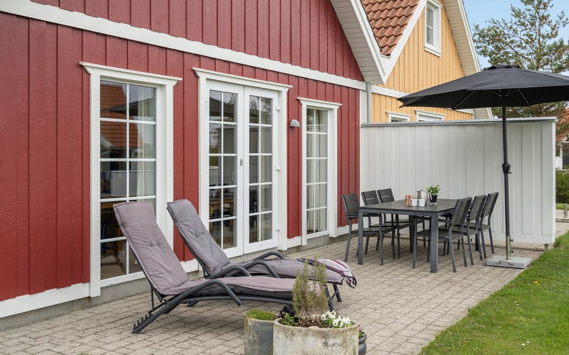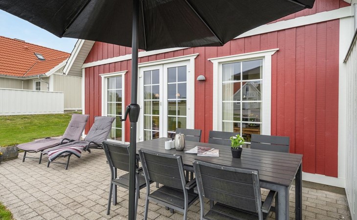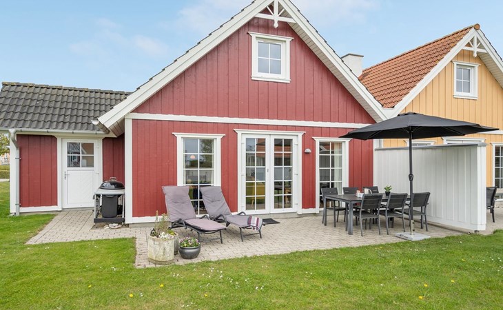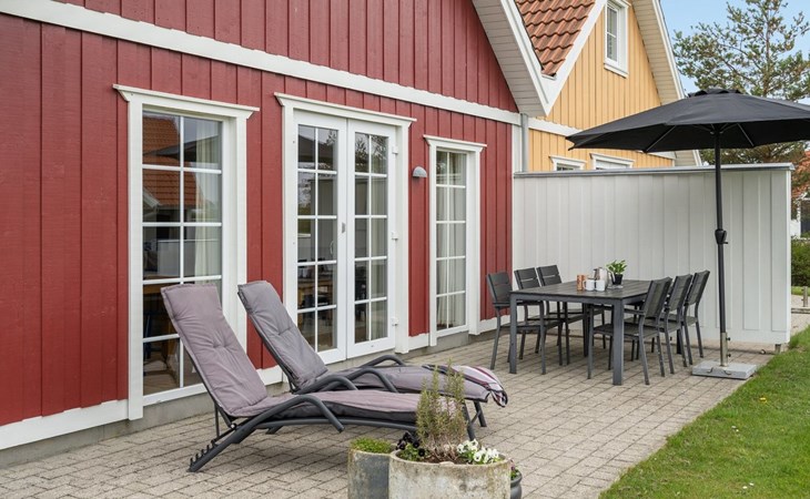 Holiday village, built in 2004. 200 m from the sea. Private: natural state property 120 m2. Terrace (75 m2), barbecue. In the house: sauna, washing machine, tumble dryer. Parking at the house. Grocery 2 km. The owner does not accept any youth groups.