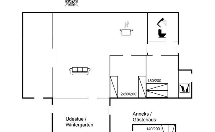 Single-family house, built in 1978. Private: natural state property 1'200 m2. Outdoor shower, terrace (45 m2), barbecue, parking at the house. Grocery 4 km. Golf course 15 km. The owner does not accept any youth groups.