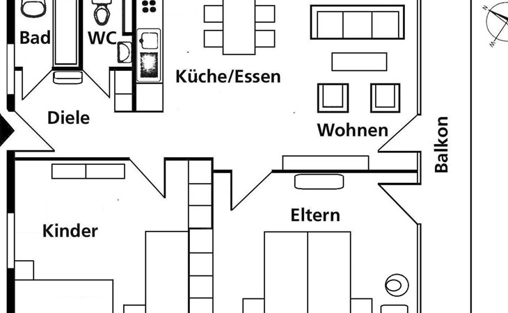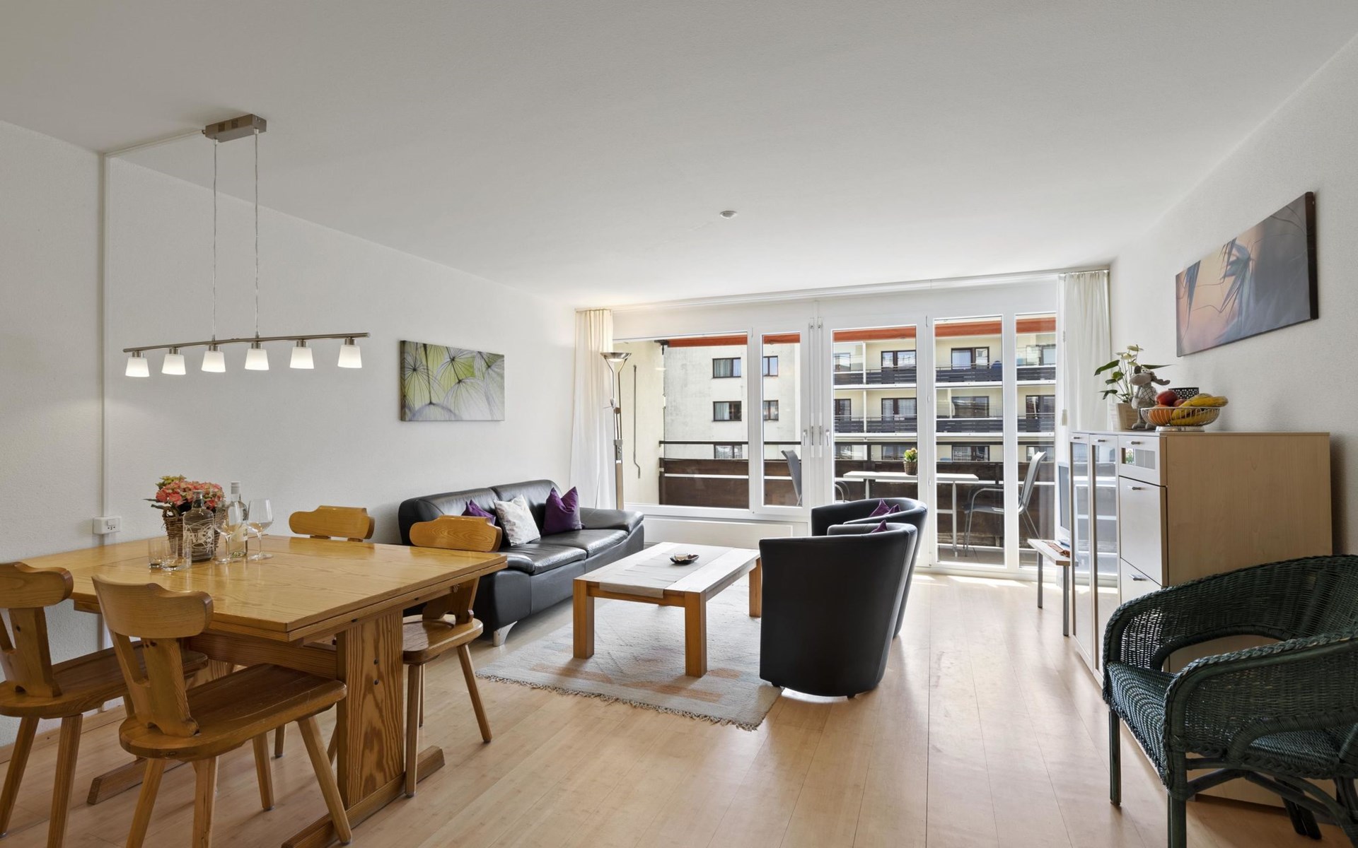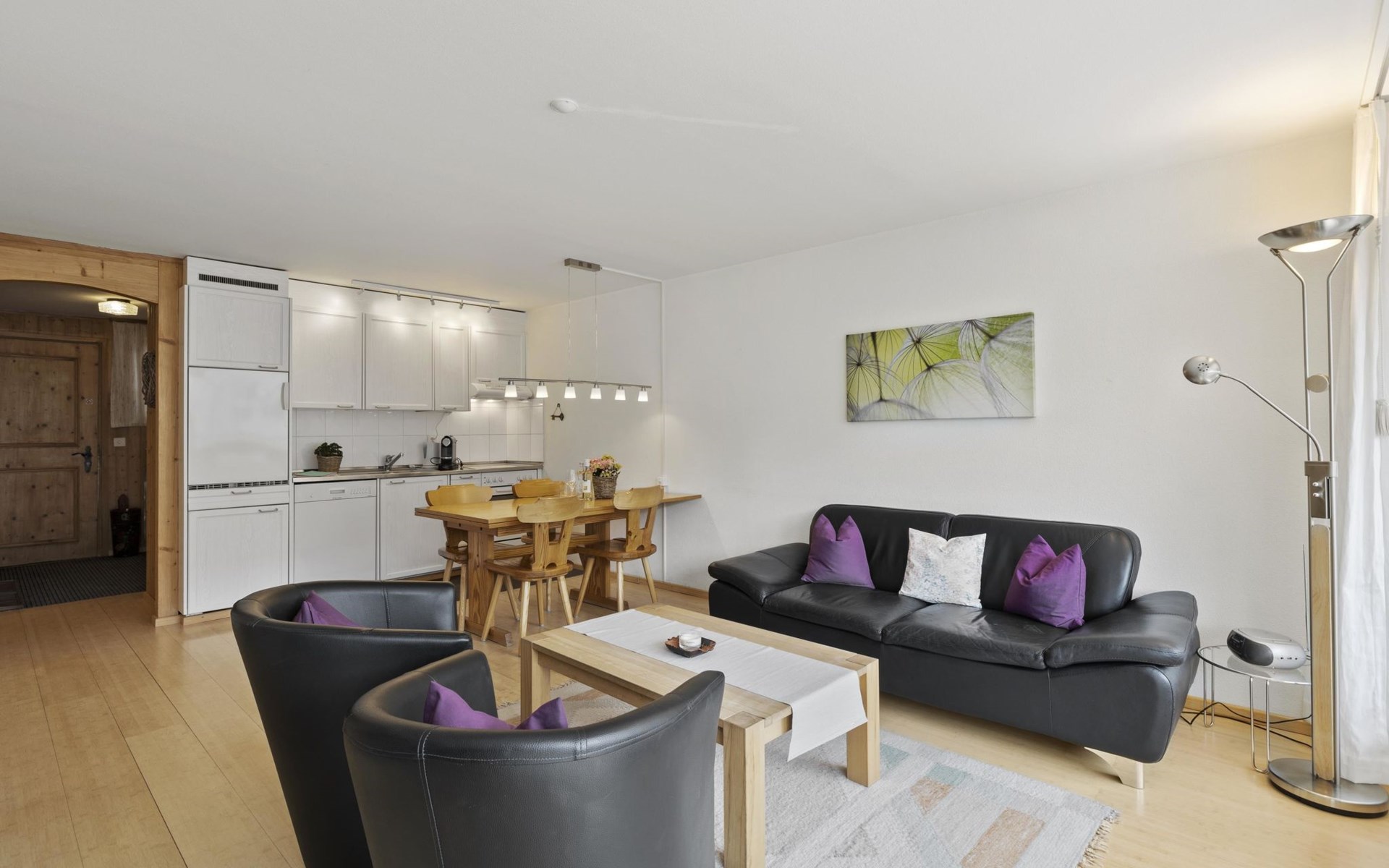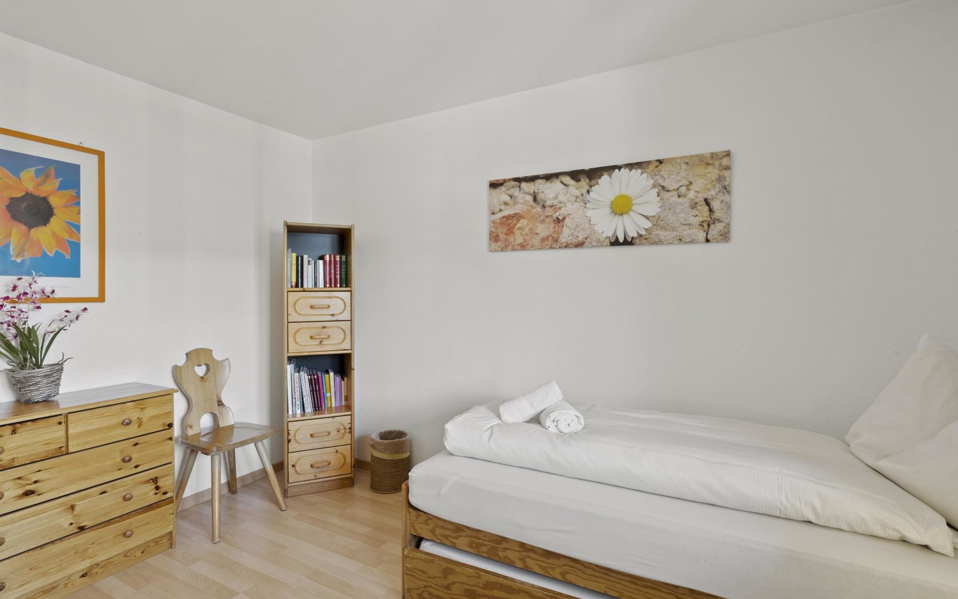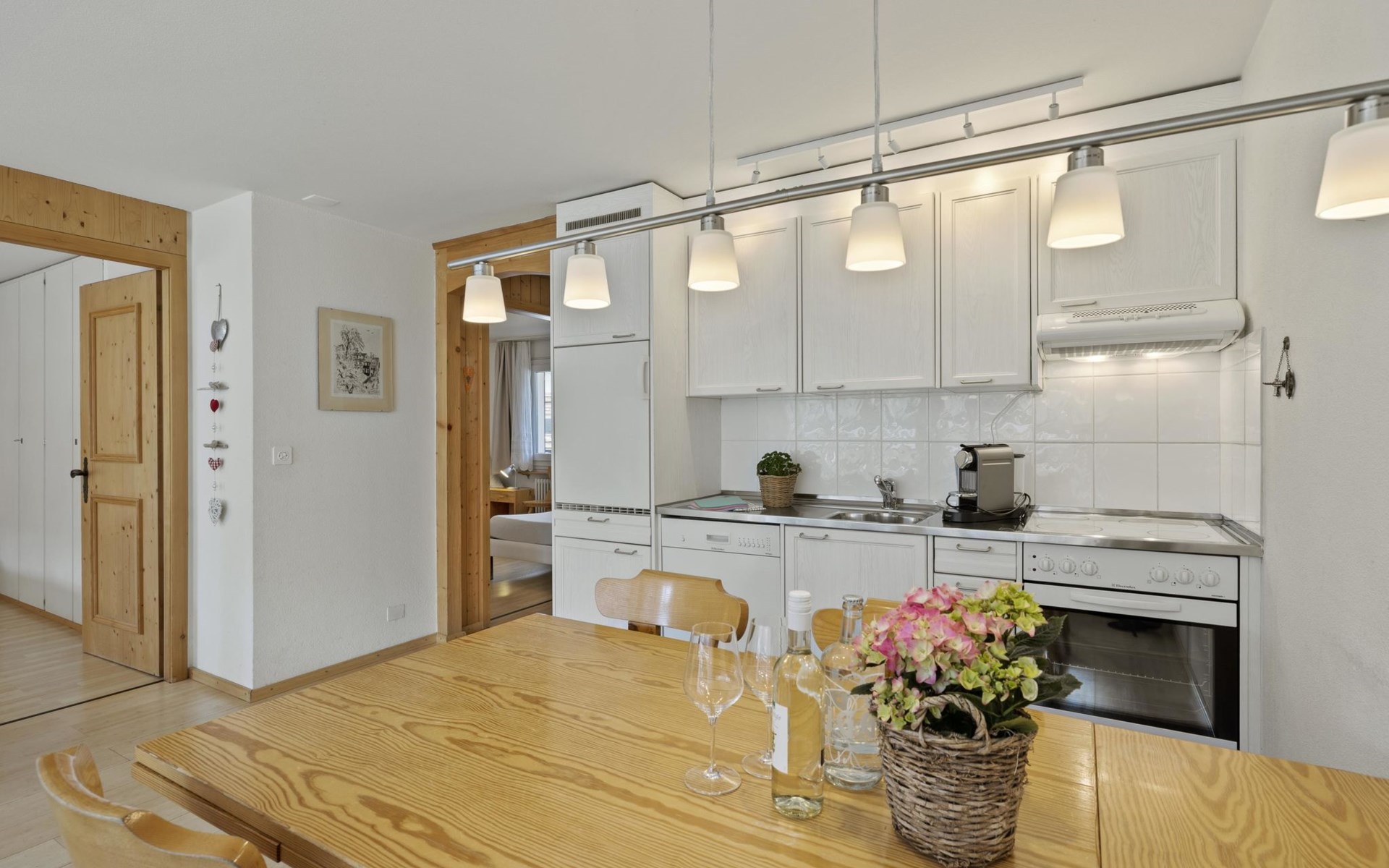House Ladina/ 3rd floor - right / Lift / Wlan yes / 1 room with double bed / 1 room two single beds / 1 bathroom with WC and bathtub / 1 separate WC All Seestrassen flats, numbers 4-6, are located in the centre of Lenzerheide and have a south-facing balcony. They are also right next to the ski slope/cross-country ski run and in the immediate vicinity of the free sports bus and various shopping facilities. A good starting point for all winter/summer activities for the whole family. (In the same house Ladina are the holiday flats no.58, no.62 and no.78).