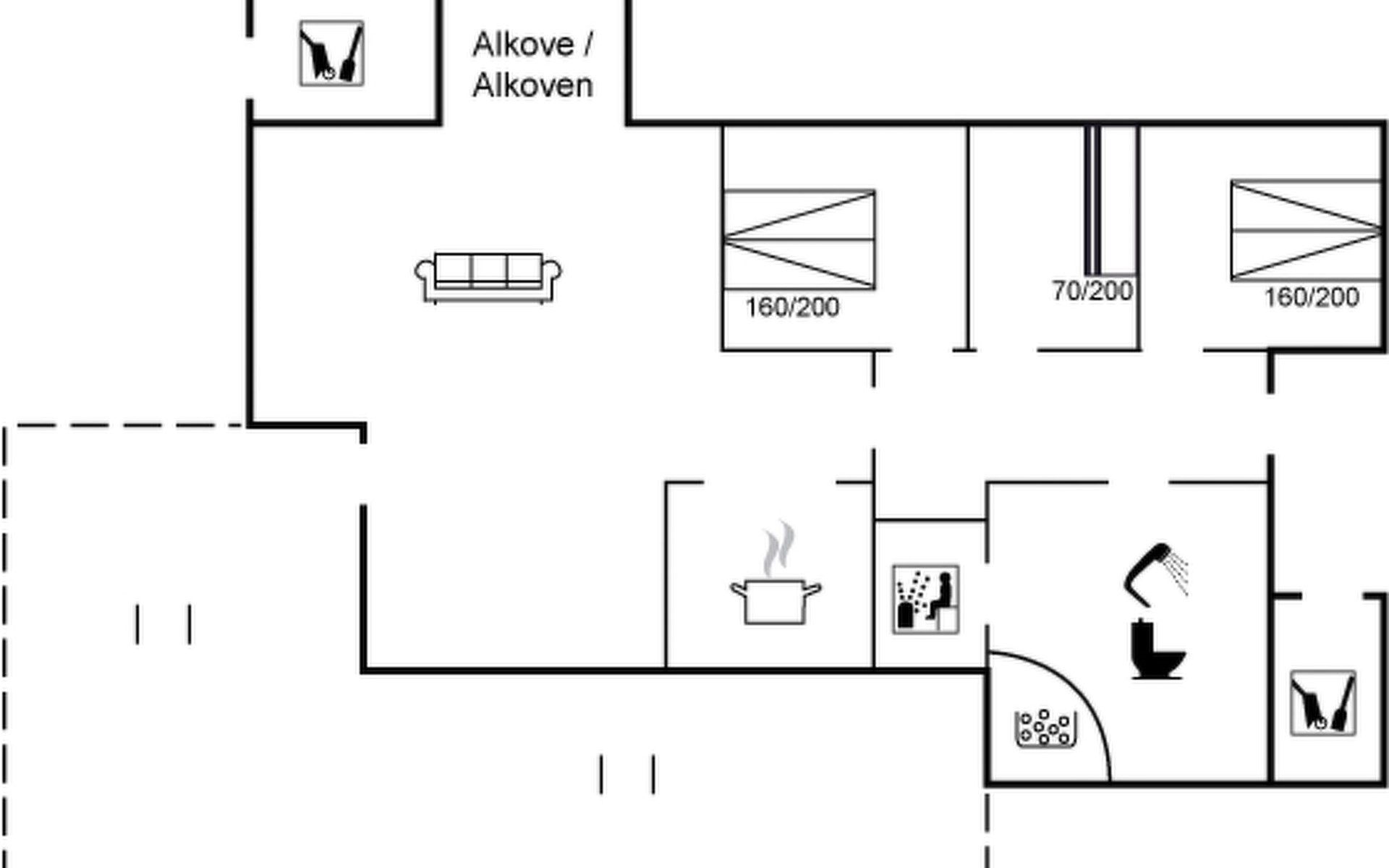 Single-family house, built in 1994. 500 m from the sea. Private: property 1'745 m2. Terrace (45 m2), barbecue. In the house: sauna, washing machine. Parking at the house. Grocery 800 m. The owner does not accept any youth groups.