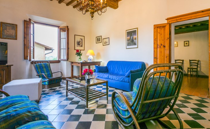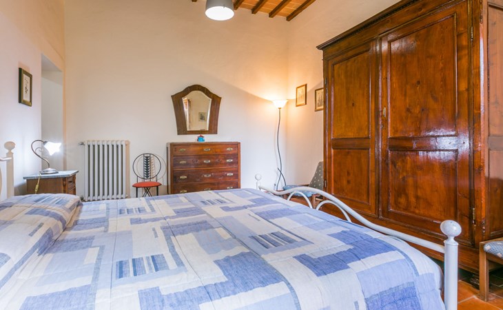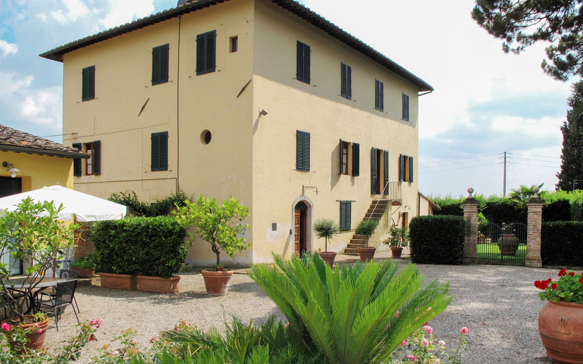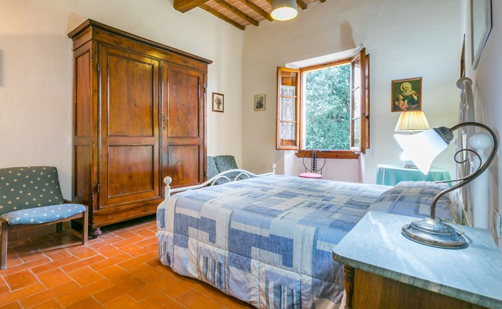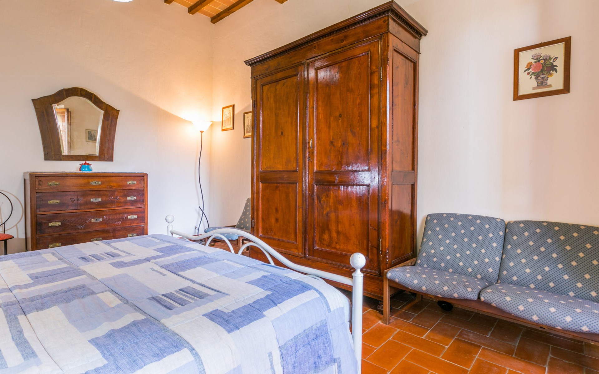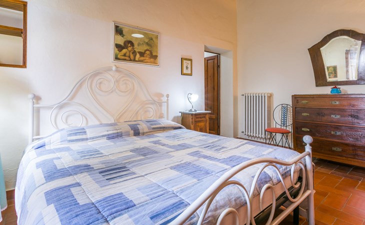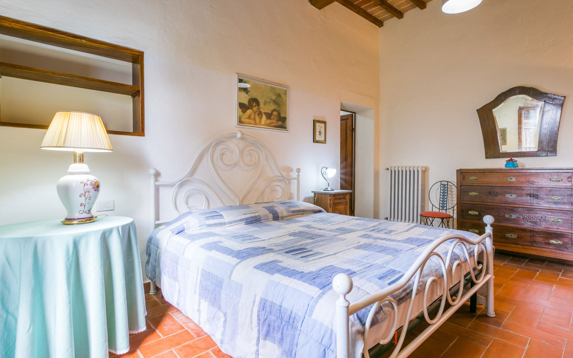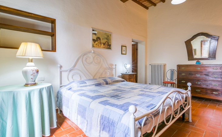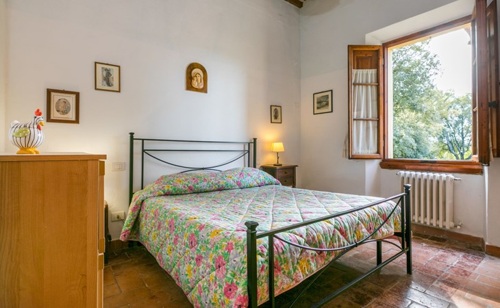 Cosy country house "Giuggiolo", surrounded by trees and vineyards. 3 houses in the residence. 4 apartments in the residence. In the hamlet Casaglia 4 km from the centre of Poggibonsi, 11 km from the centre of San Gimignano, 30 km from the centre of Siena, in a sunny position, in the countryside. For shared use: large, beautiful garden 5'000 m2 (fenced) with plants and trees, meadow, swimming pool (14 x 7 m, depth 120 - 160 cm, seasonal availability: 02.May. - 03.Oct.). Terrace, pool maintenance by the owner/gardener. Heating to be paid on the spot (01.Nov. - 31.Mar.). 800 m long motor access to the grounds (via unmade road). Parking on the premises. Supermarket 2 km, railway station "Poggibonsi" 4 km. Please note: residence with electric gates. The owner lives in the same residence. Wine tasting in a wine cellar near San Gimignano 17 km away 1x per stay included (on request).