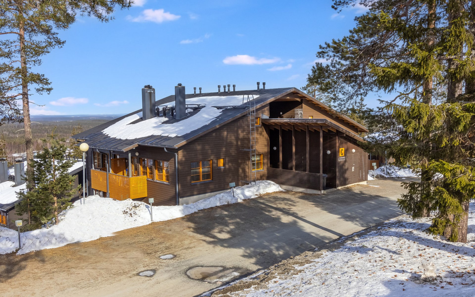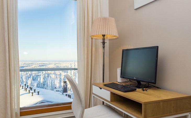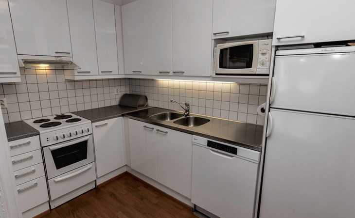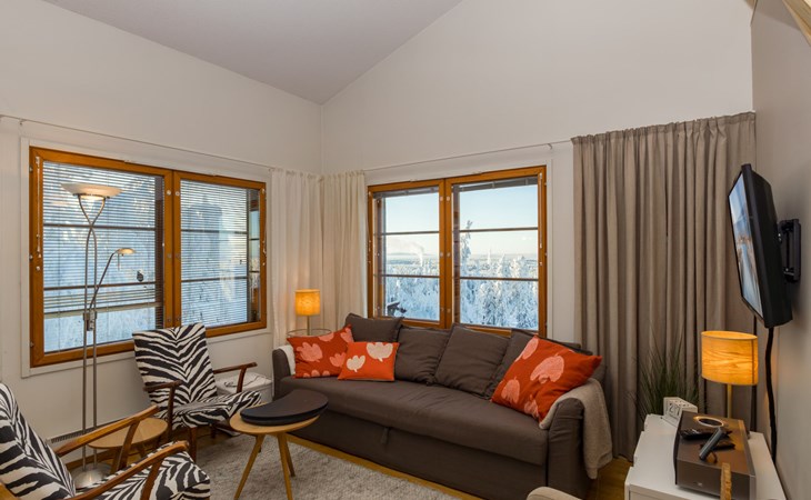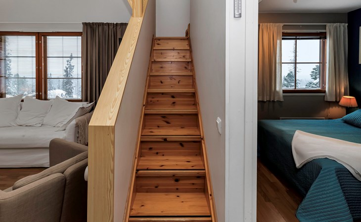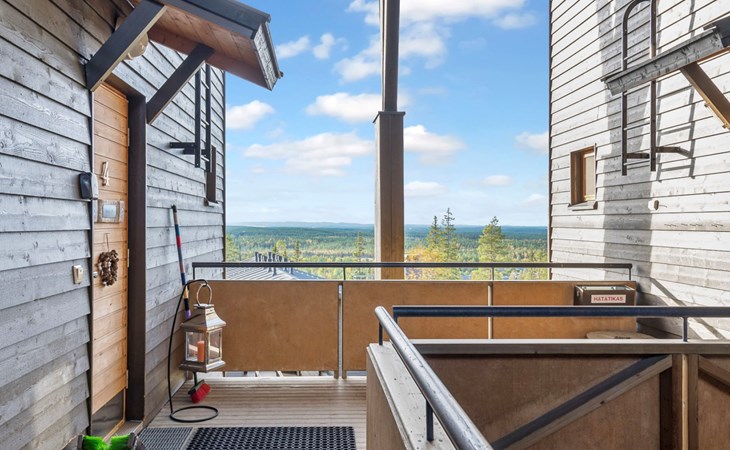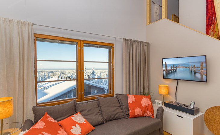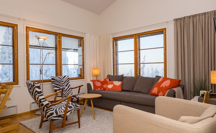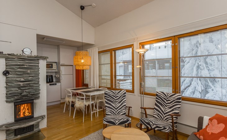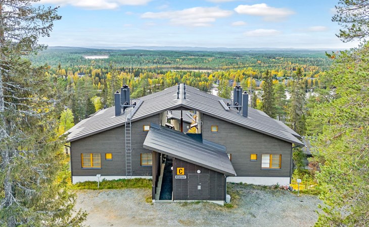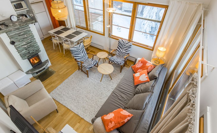 This enchanting apartment with scenic views is the perfect choice for both families and groups. Its spaciousness and coziness ensure a comfortable and relaxing stay in Ruka. The location is unparalleled, just a few steps away from all of Ruka's services and slopes. From the entrance of the apartment, it's only 20 meters to the slopes, where you can ski down to the lift. At the end of the day, you can ski back along the same slope.